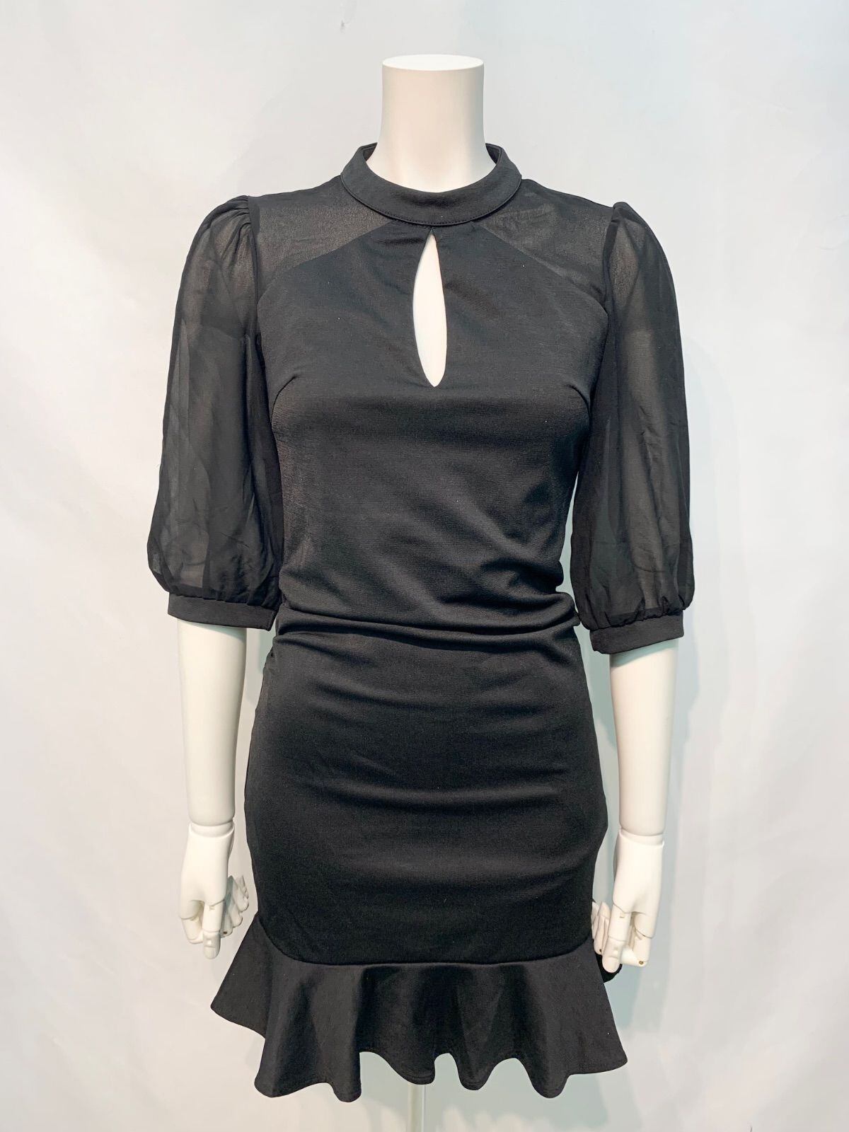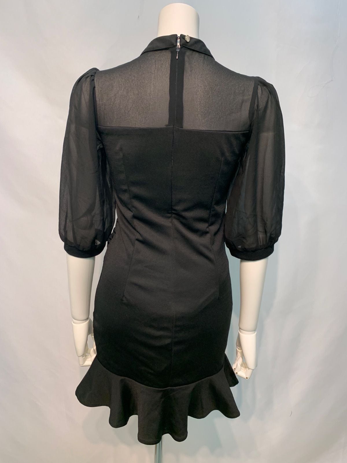 2253 SNACC キャバクラ ドレス マーメイド 伸縮性 タイト ミニ シースルー フロントカット キャバドレス S