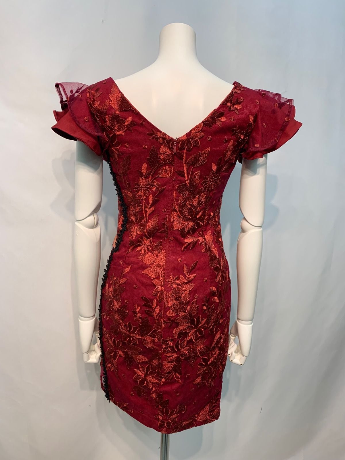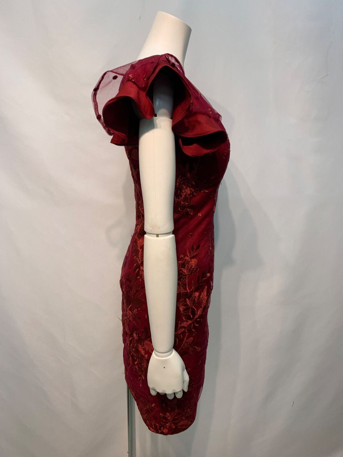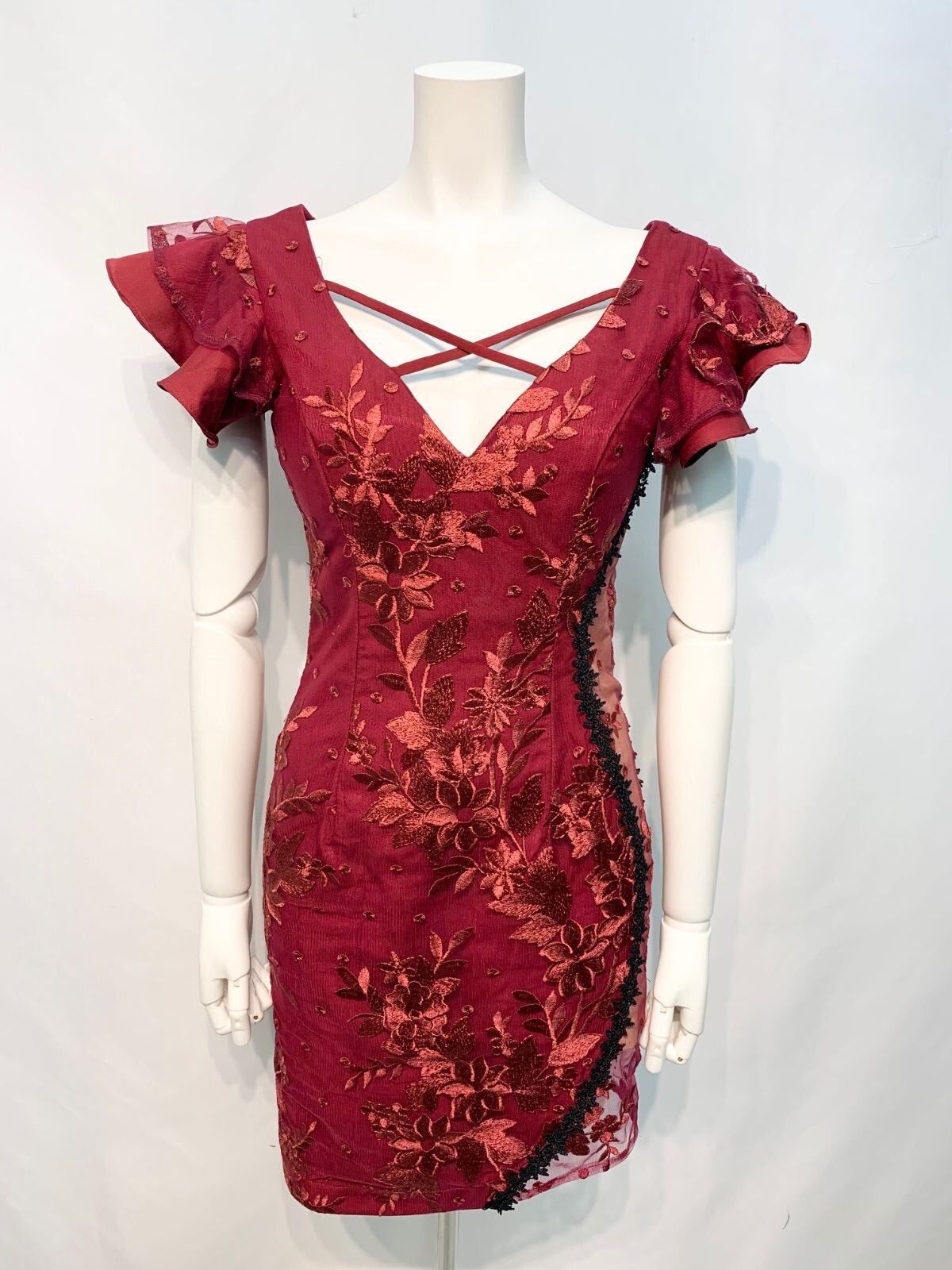2244 JEWELS ジュエルズ キャバクラ ドレス 総レース フラワー フリル フロントクロス タイト ミニ キャバドレス M