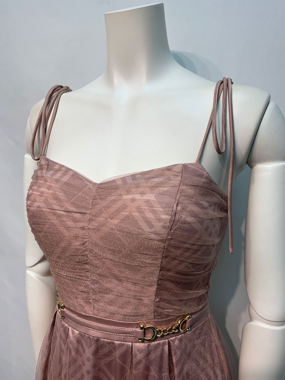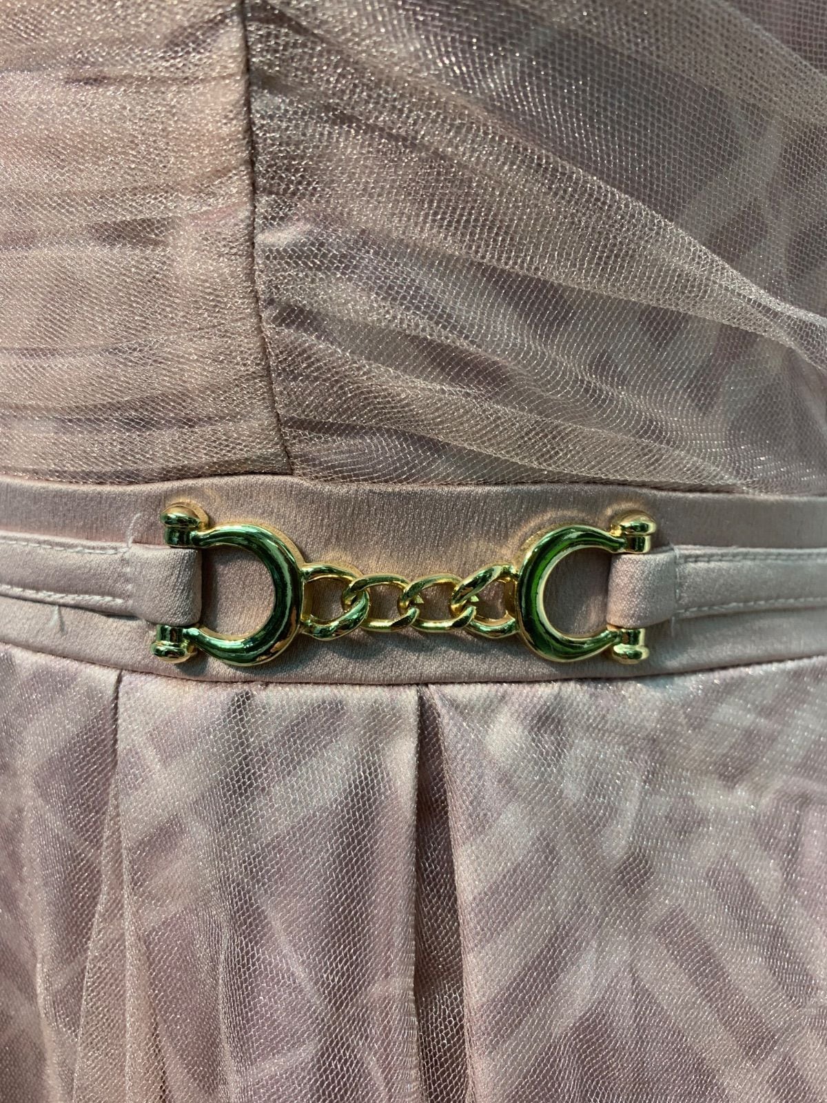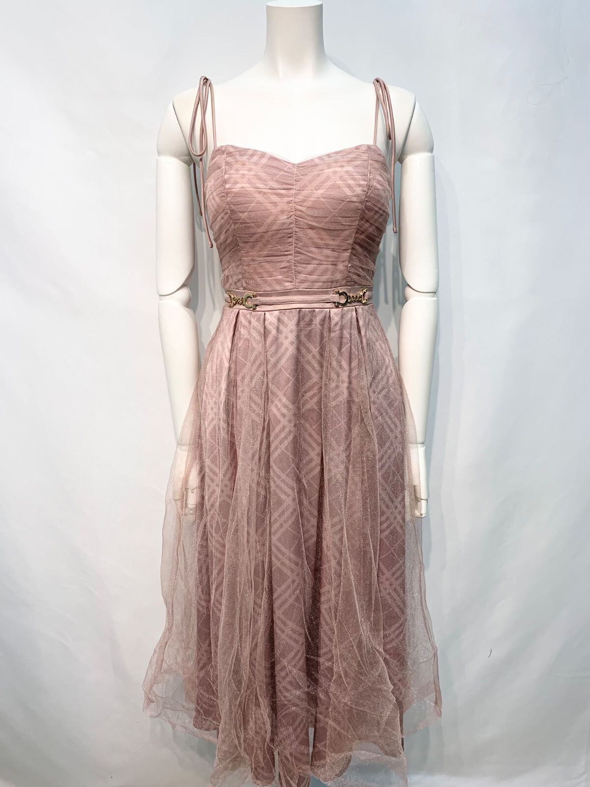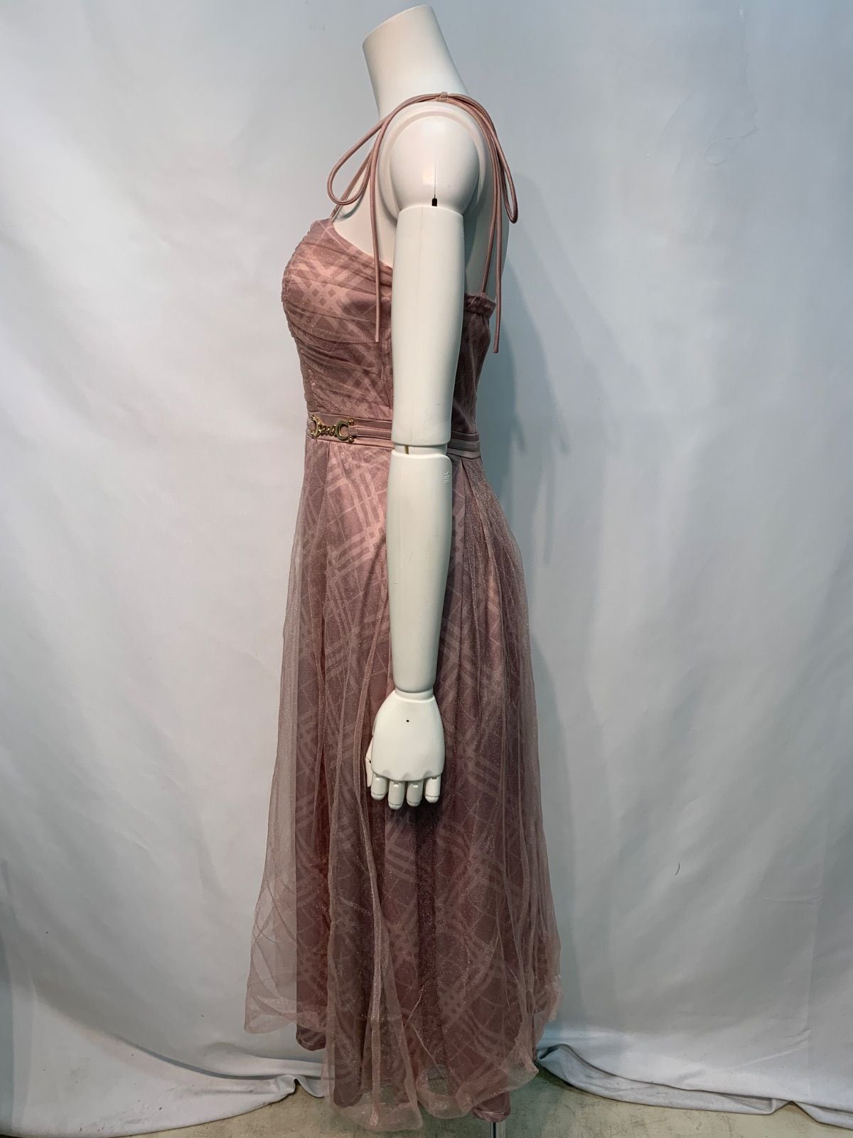 2239 DEA by ROBE de FLEURS ディアバイローブドフルール キャバクラ ドレス チュール チェック キャミストラップ ロング ゴールド金具 キャバドレス S