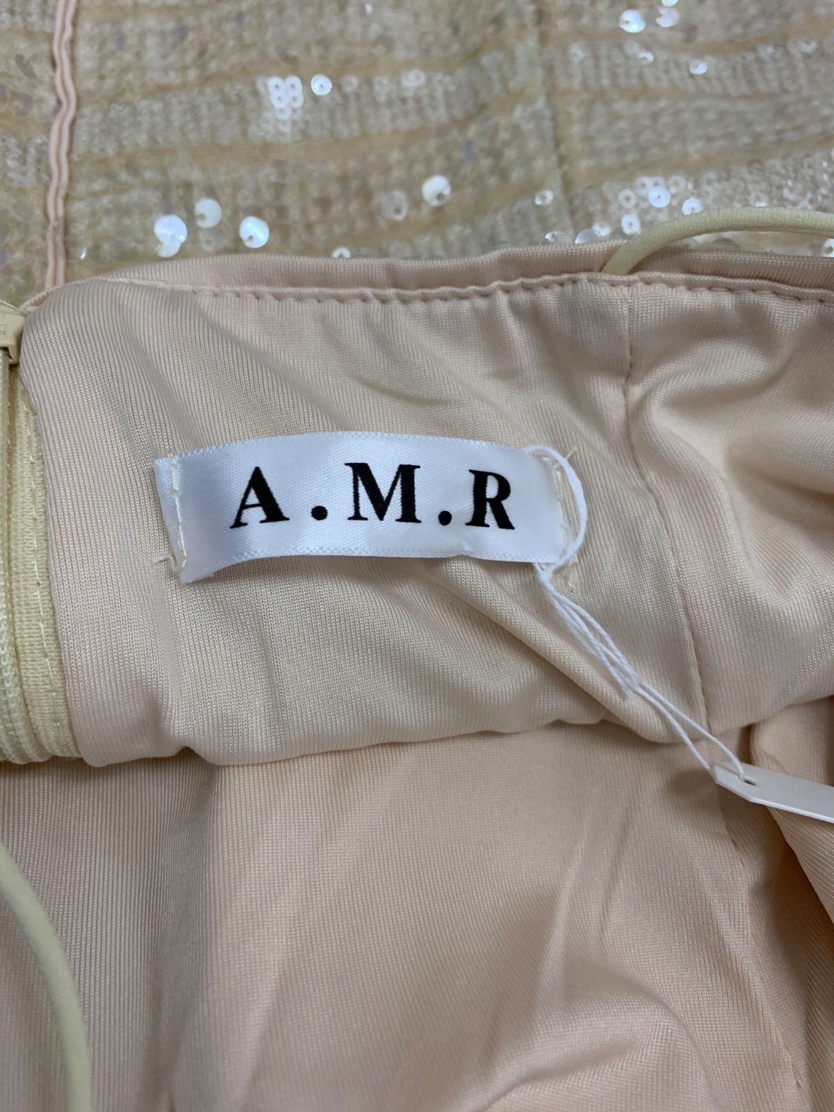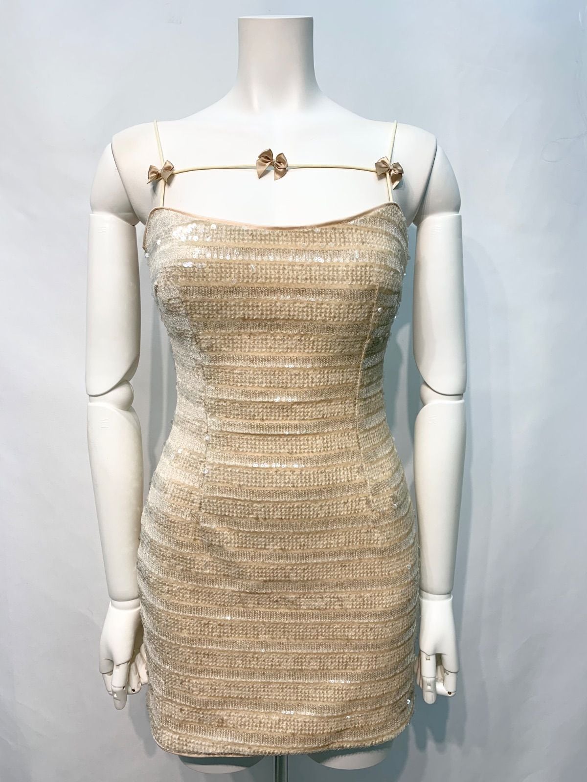 2236 A.M.R キャバクラ ドレス スパンコール タイト ミニ リボンキャミ 伸縮性 キャバドレス