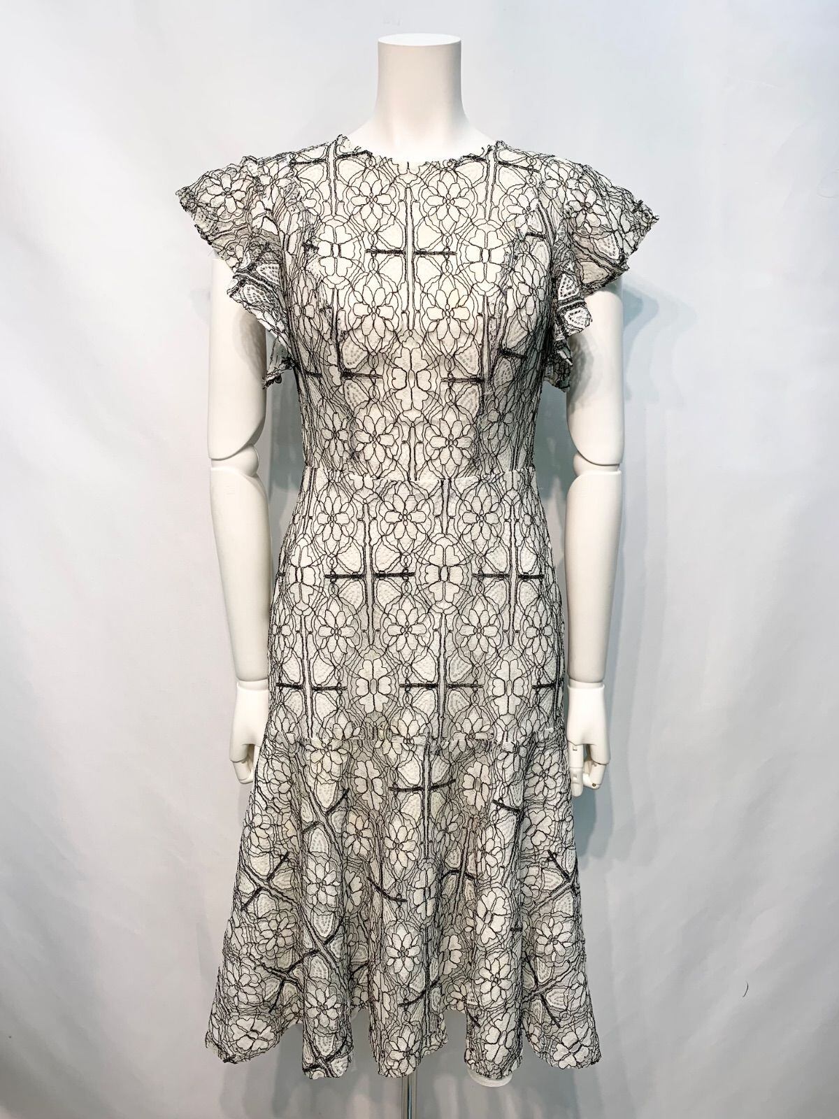 2231 キャバクラ ドレス 総レース フラワー フリル フレア ミディ キャバドレス