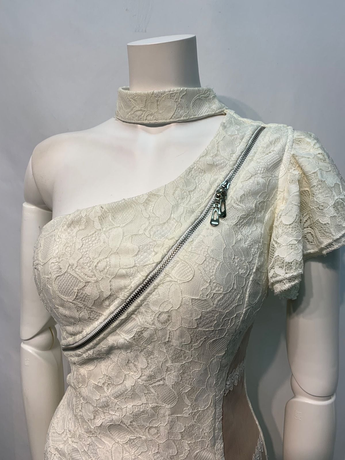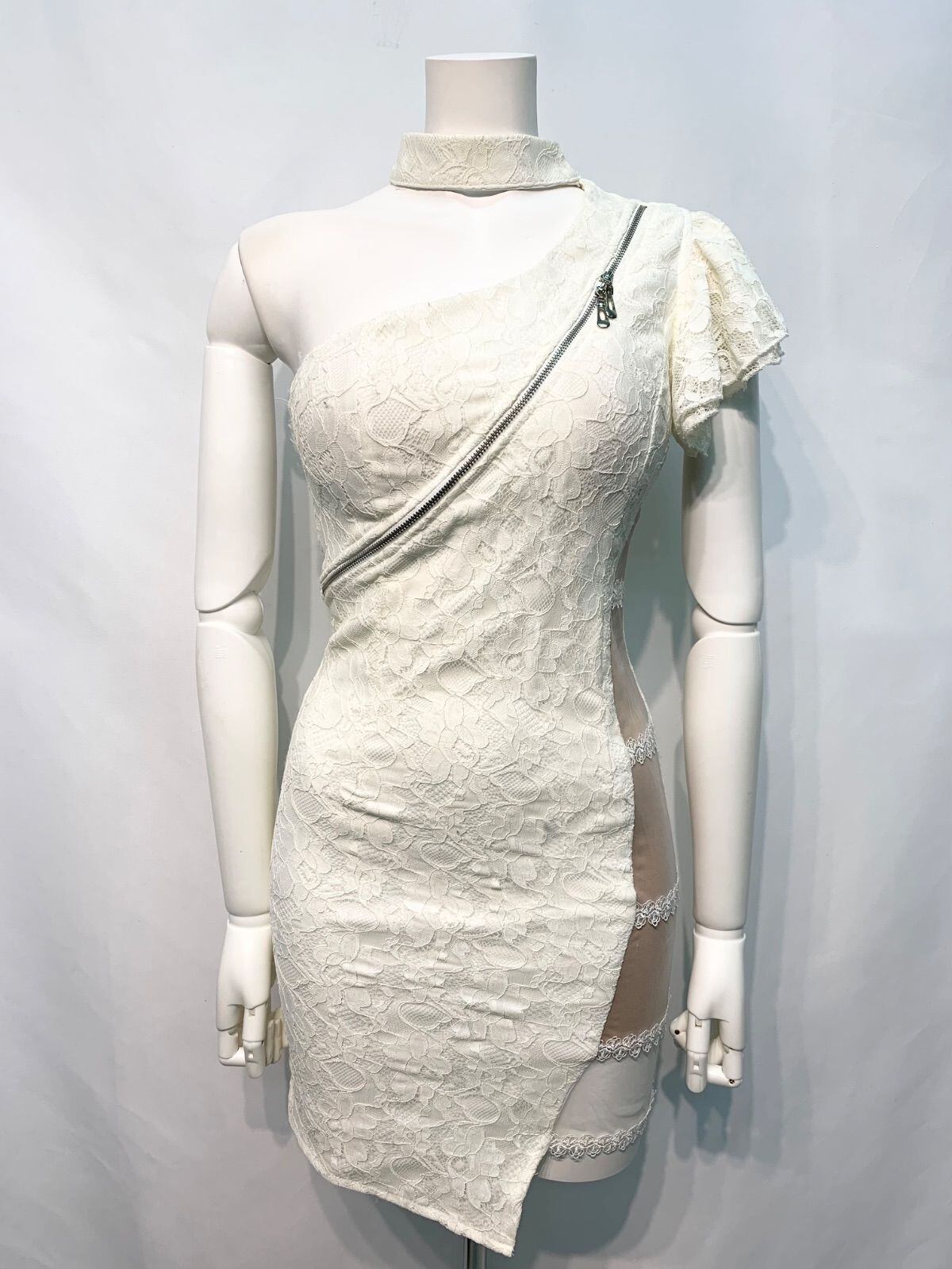2226 Tika ティカ キャバクラ ドレス 総レース タイト 伸縮性 ワンショルダー ジップ ミニ キャバドレス S