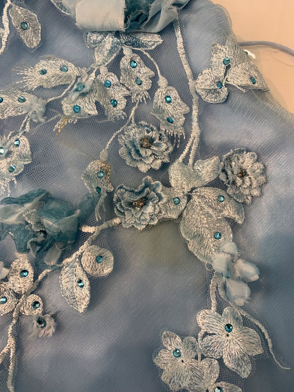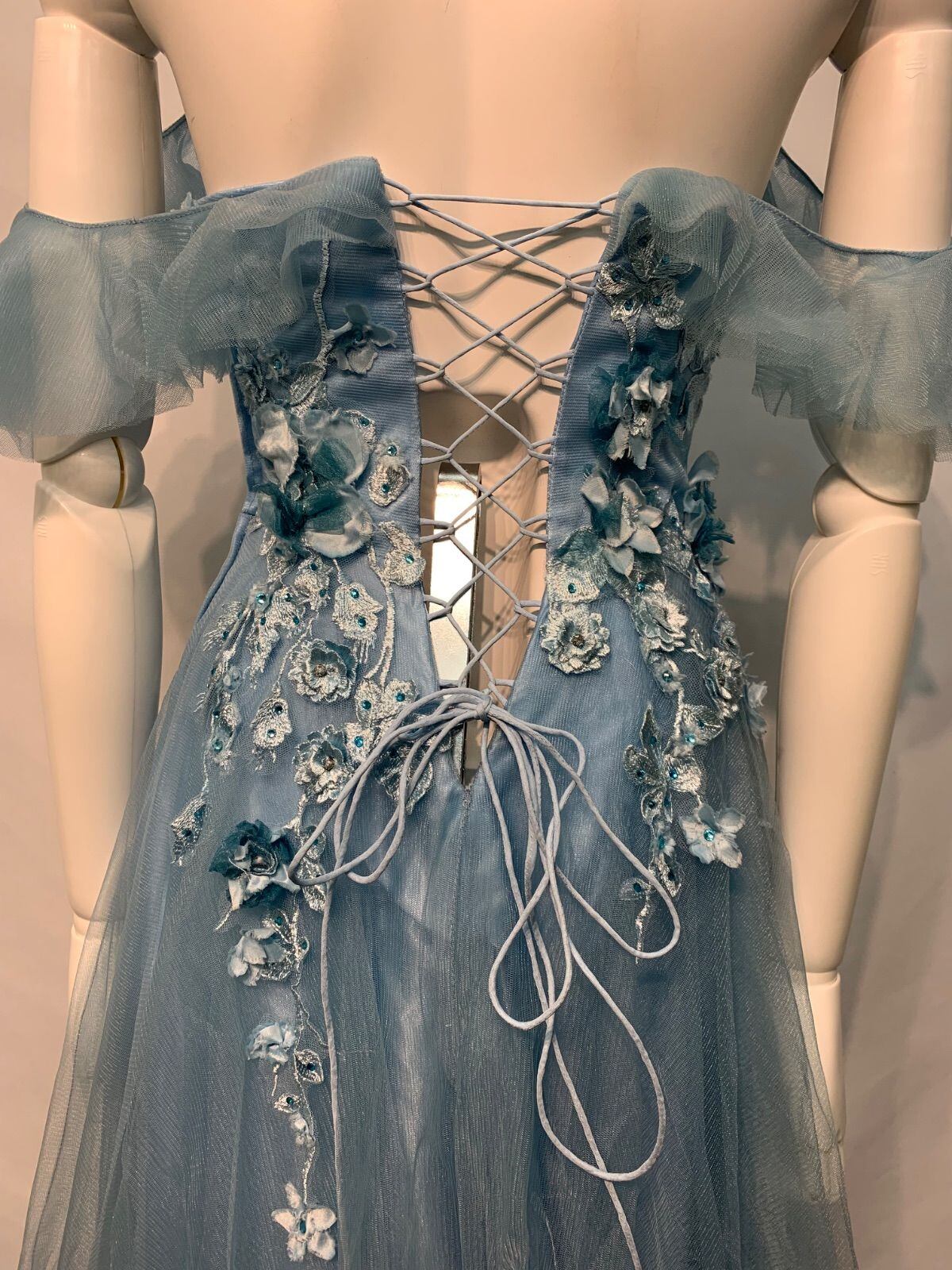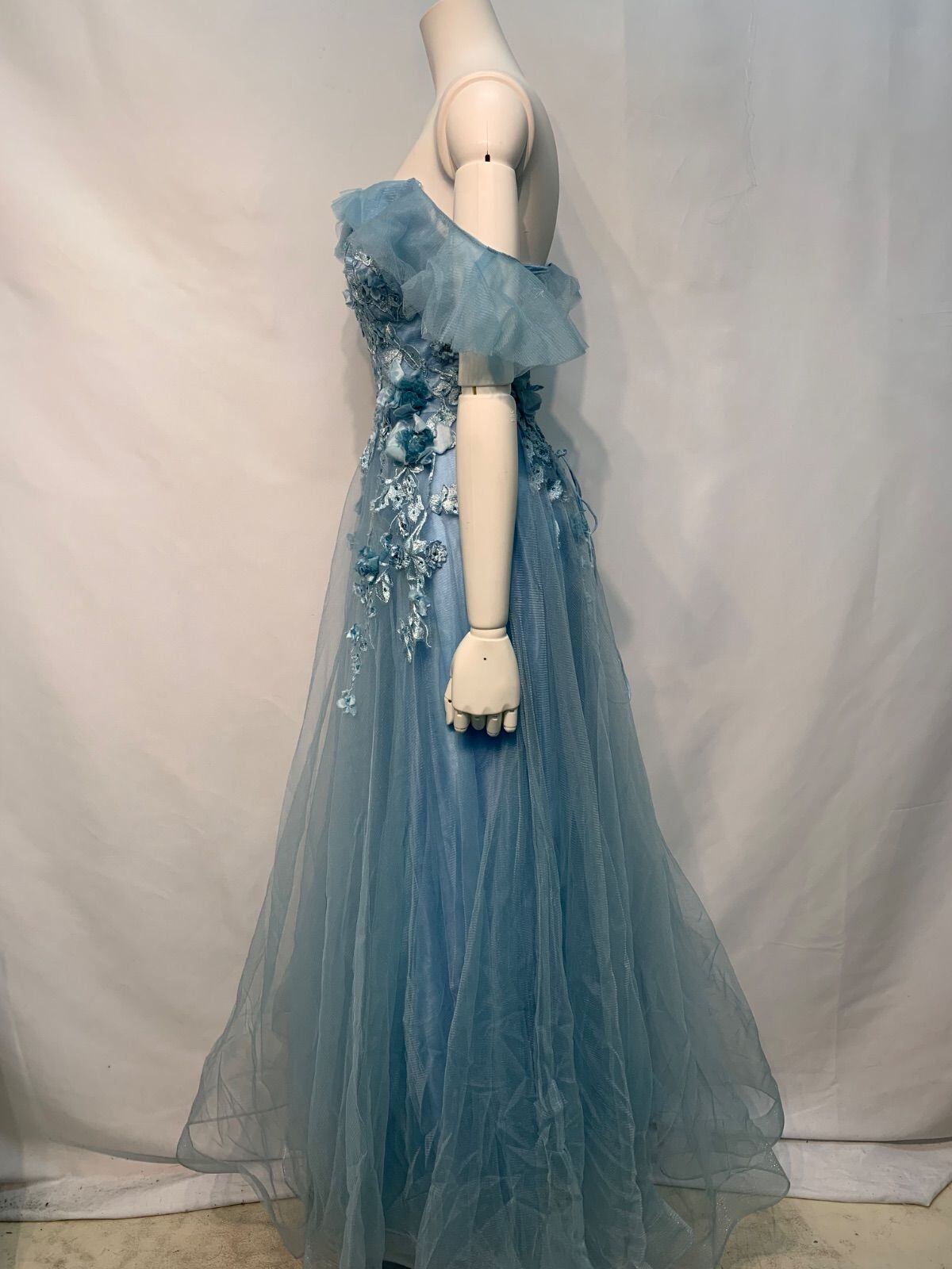 2346 JEANMACLEAN ジャンマクレーン キャバクラ ドレス ロングドレス シフォン オフショル バースデー イベント レースアップ ストーン キラキラ 刺繍 プリンセス お花 キャバドレス M