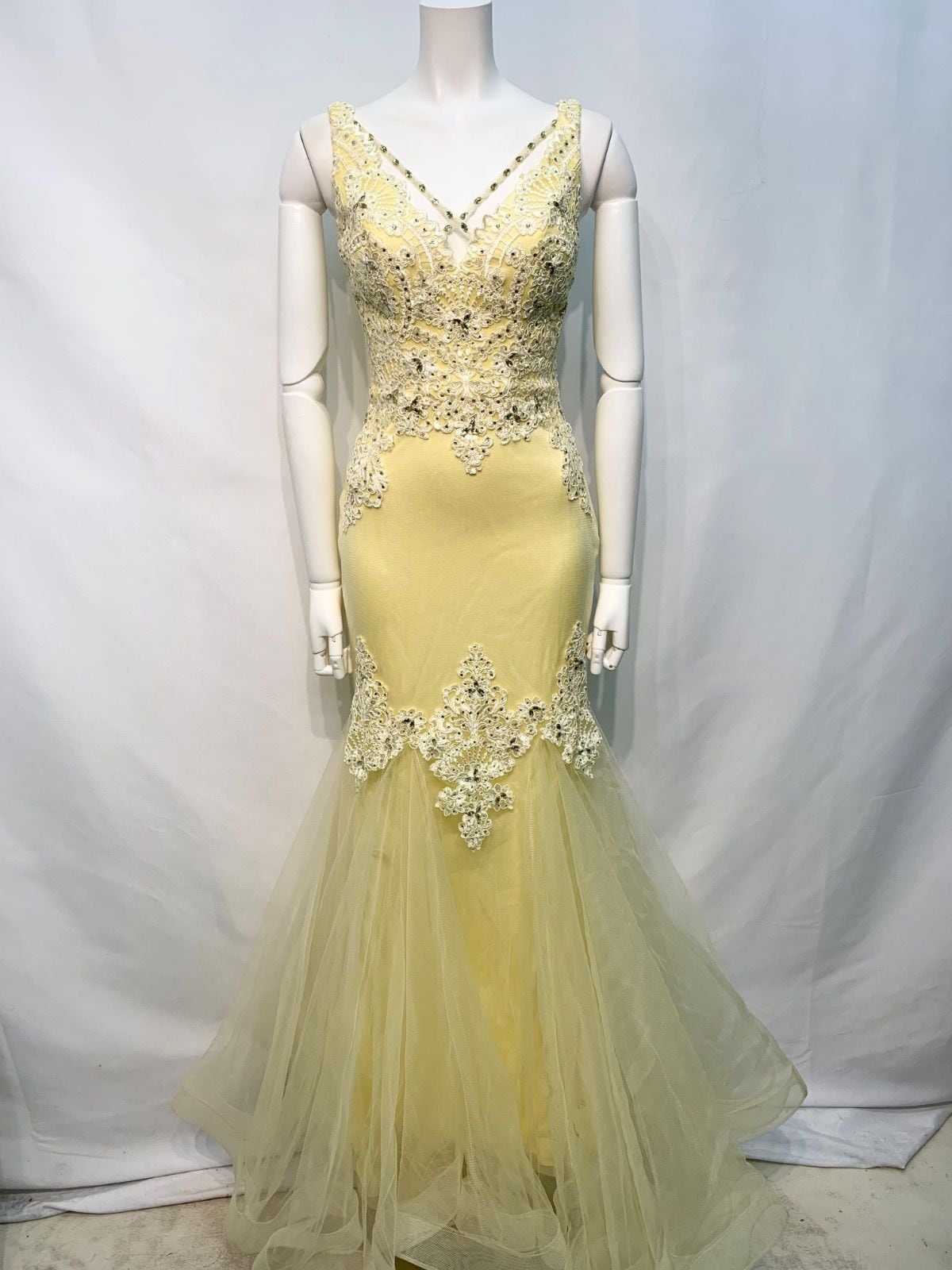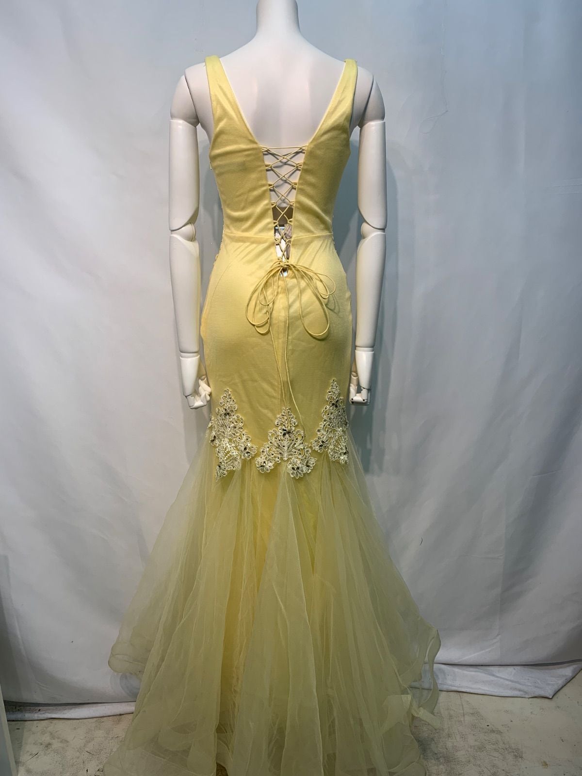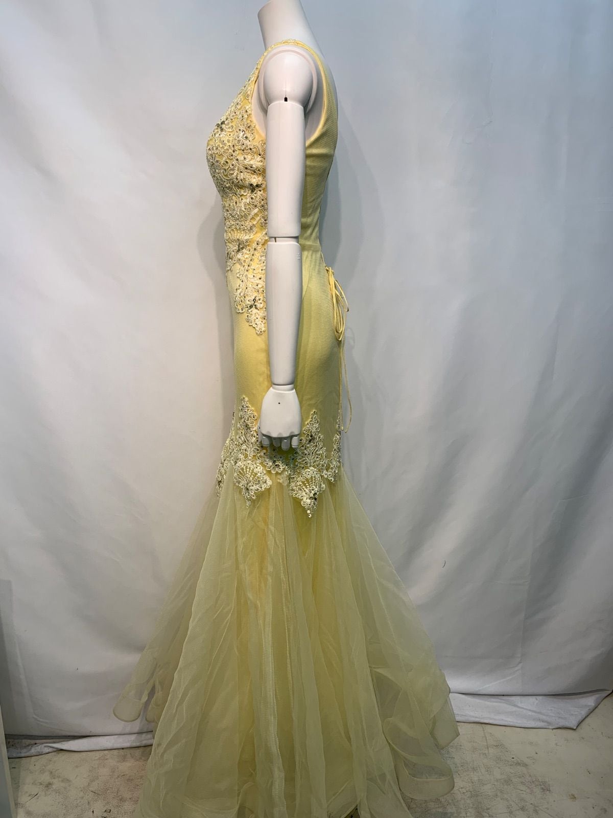2345 JEANMACLEAN ジャンマクレーン キャバクラ ドレス ロングドレス マーメイド バースデー イベント シフォン キラキラ ストーン 刺繍 レースアップ キャバドレス M
