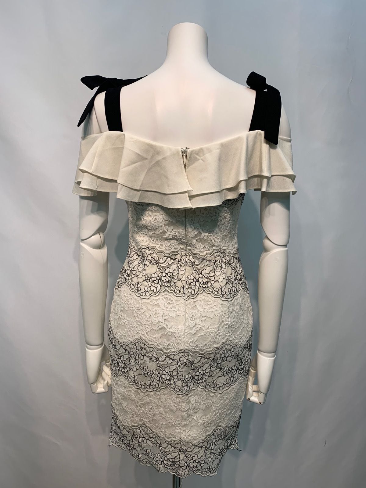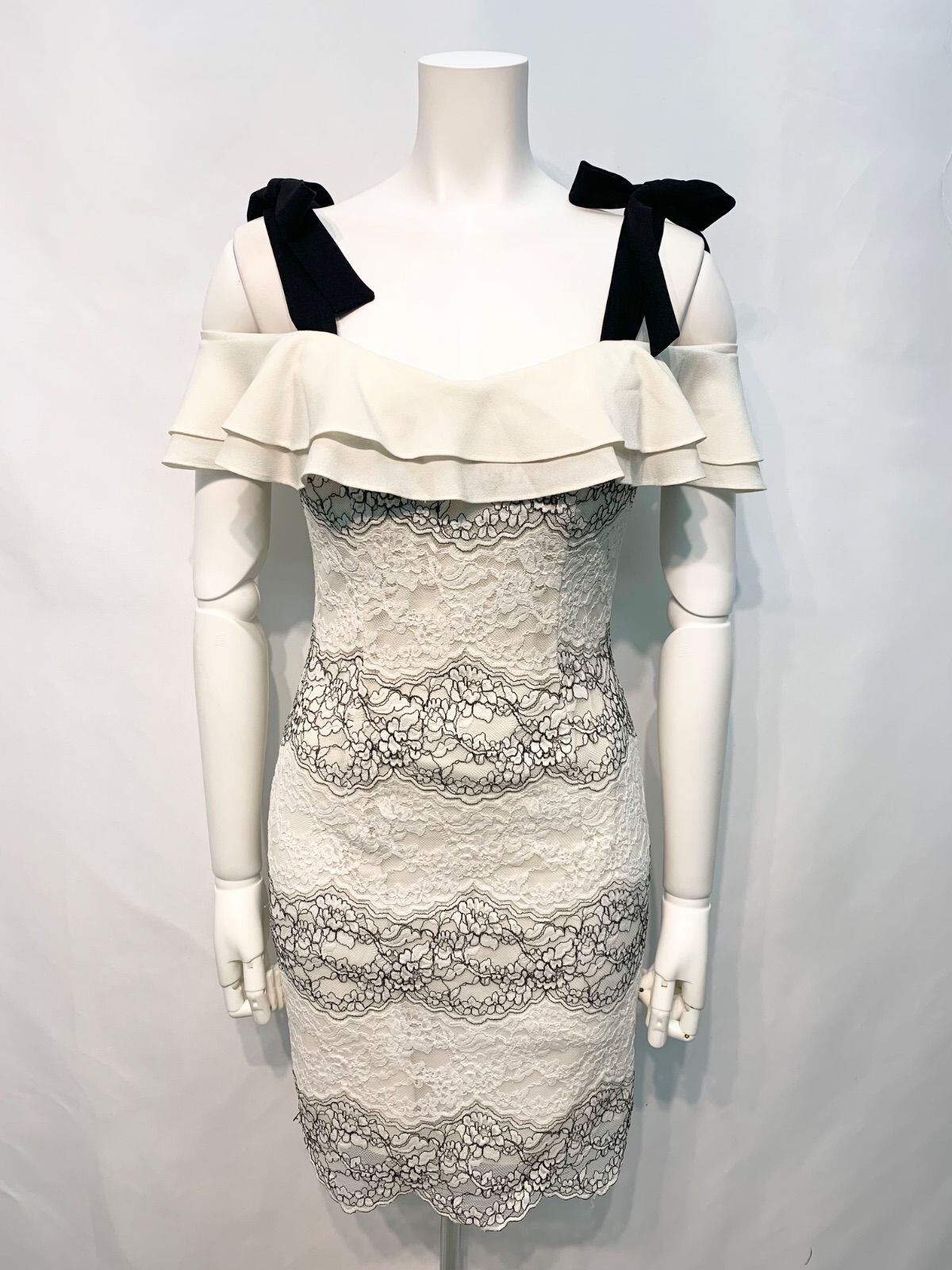 2224 Andy アンディ キャバクラ ドレス 総レース ストラップリボン タイト ミニ フリル キャバドレス M