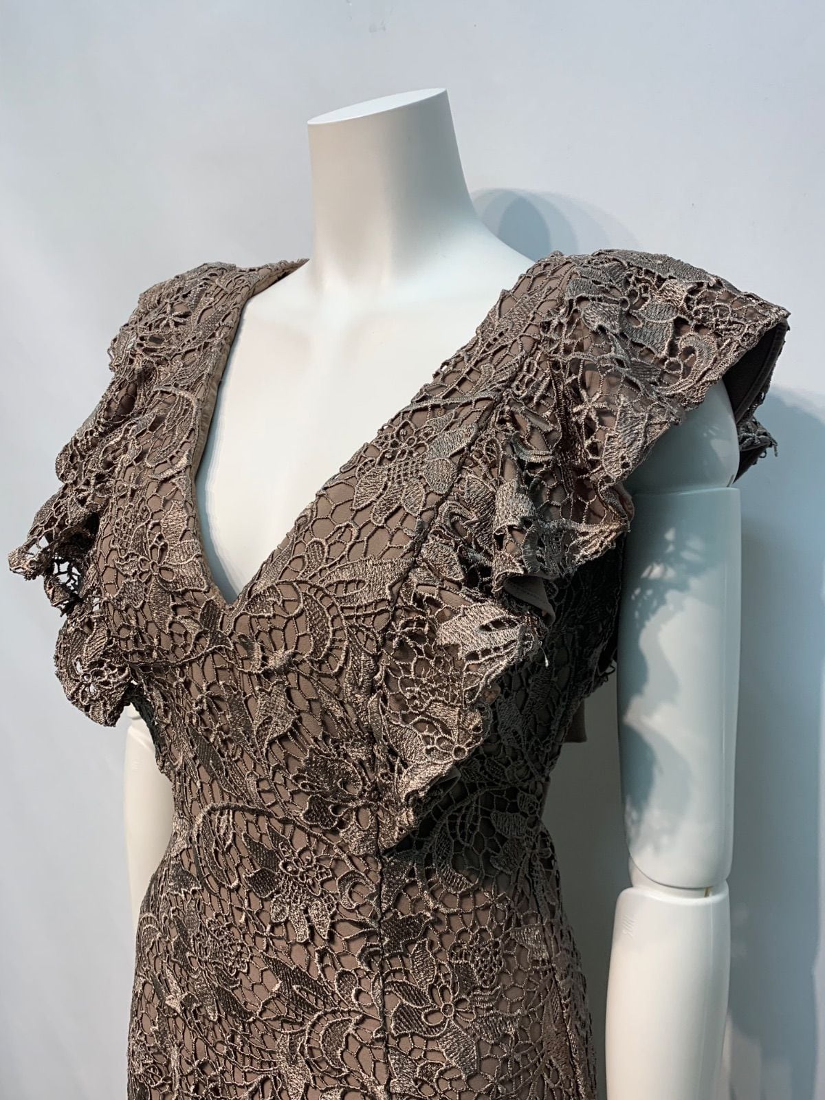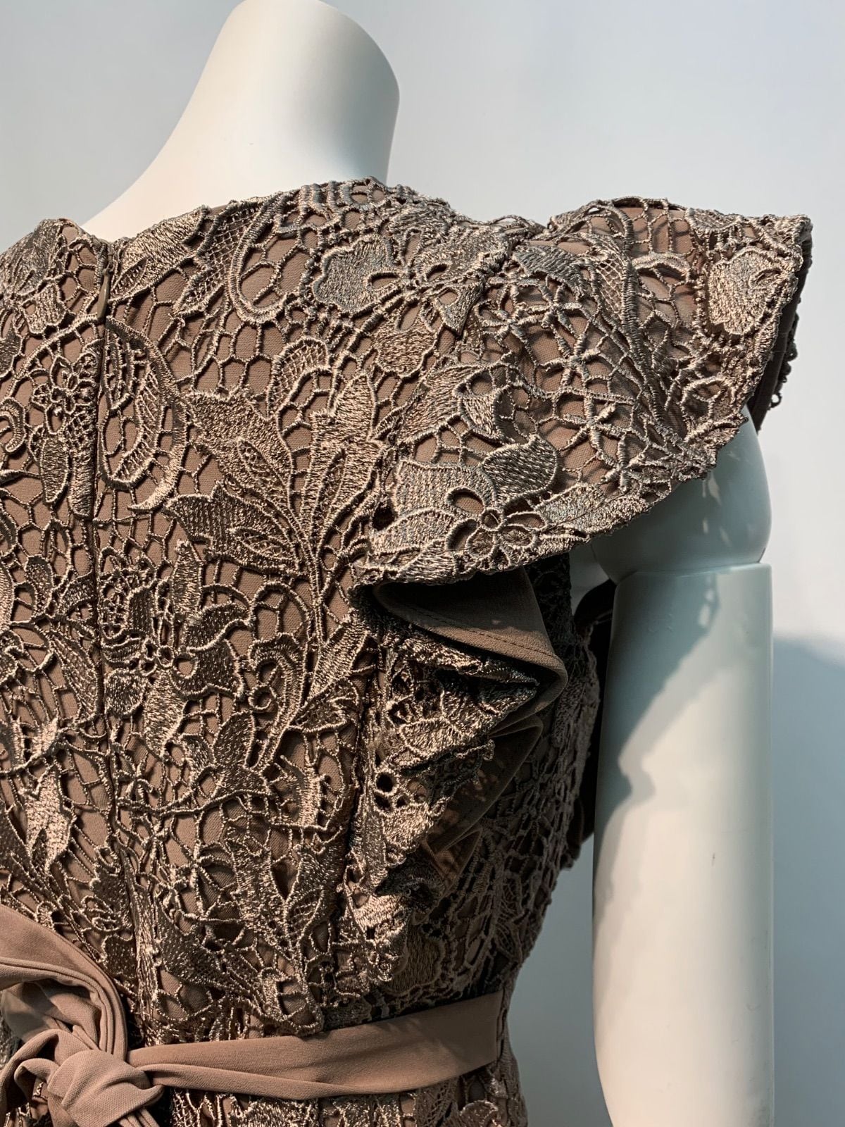 2219 DEA by ROBE de FLEURS ディアバイローブドフルール キャバクラ ドレス 総レース タイト フリル ノースリーブ ミディ バックリボン キャバドレス M