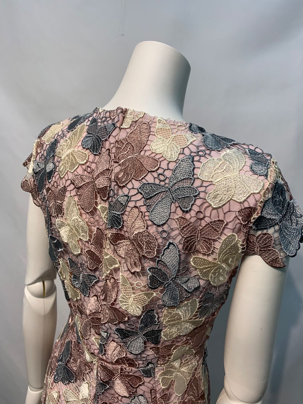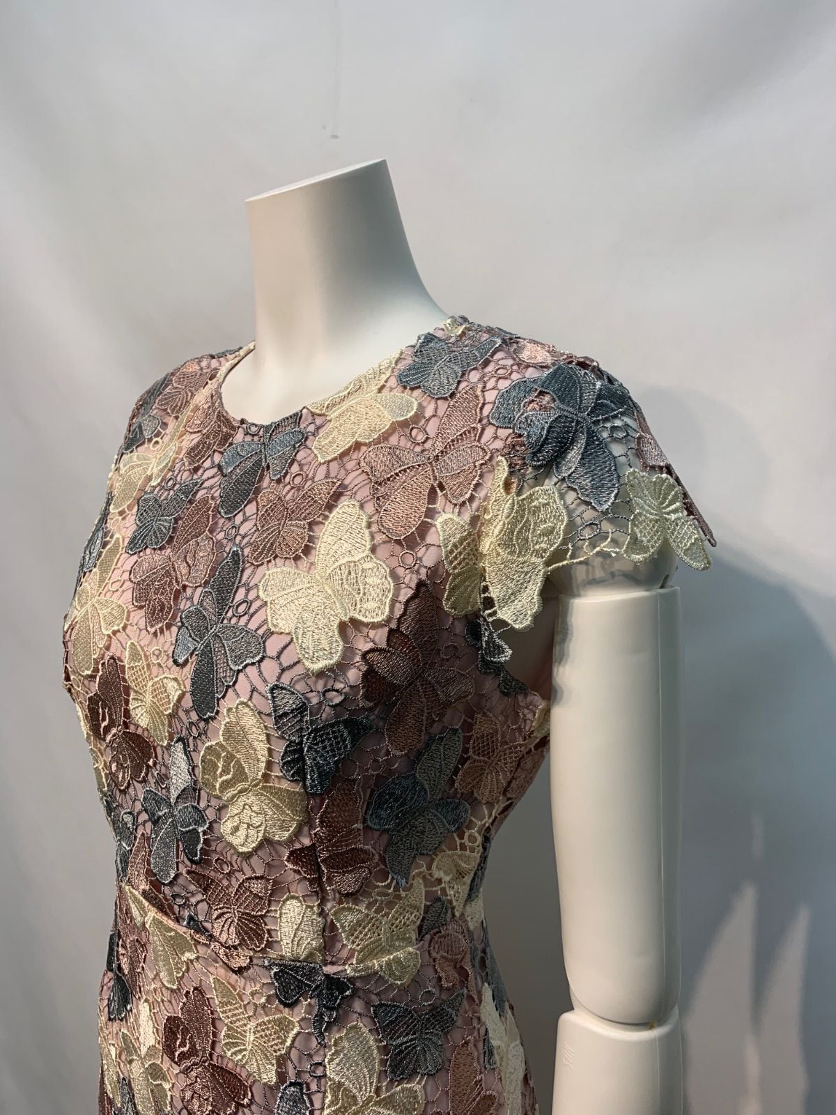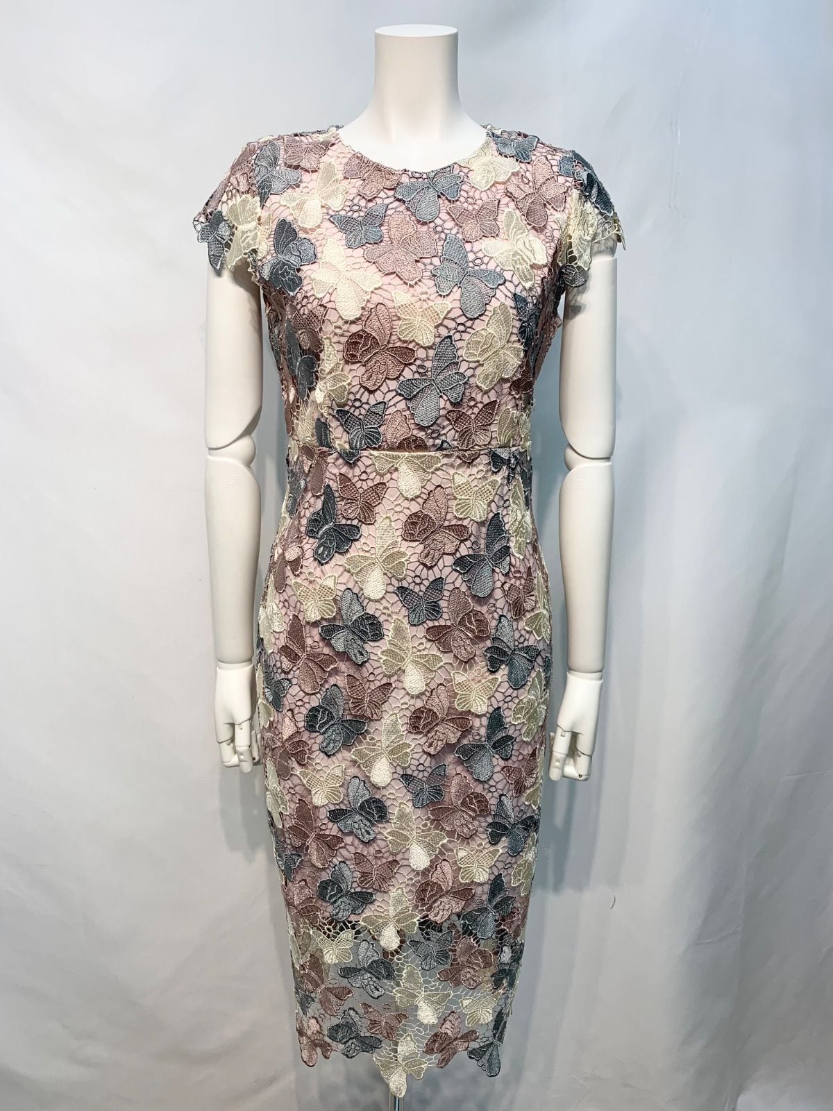2316 han queen キャバクラ ドレス 総レース 蝶々 バタフライ 刺繍 ミディ タイト キャバドレス M