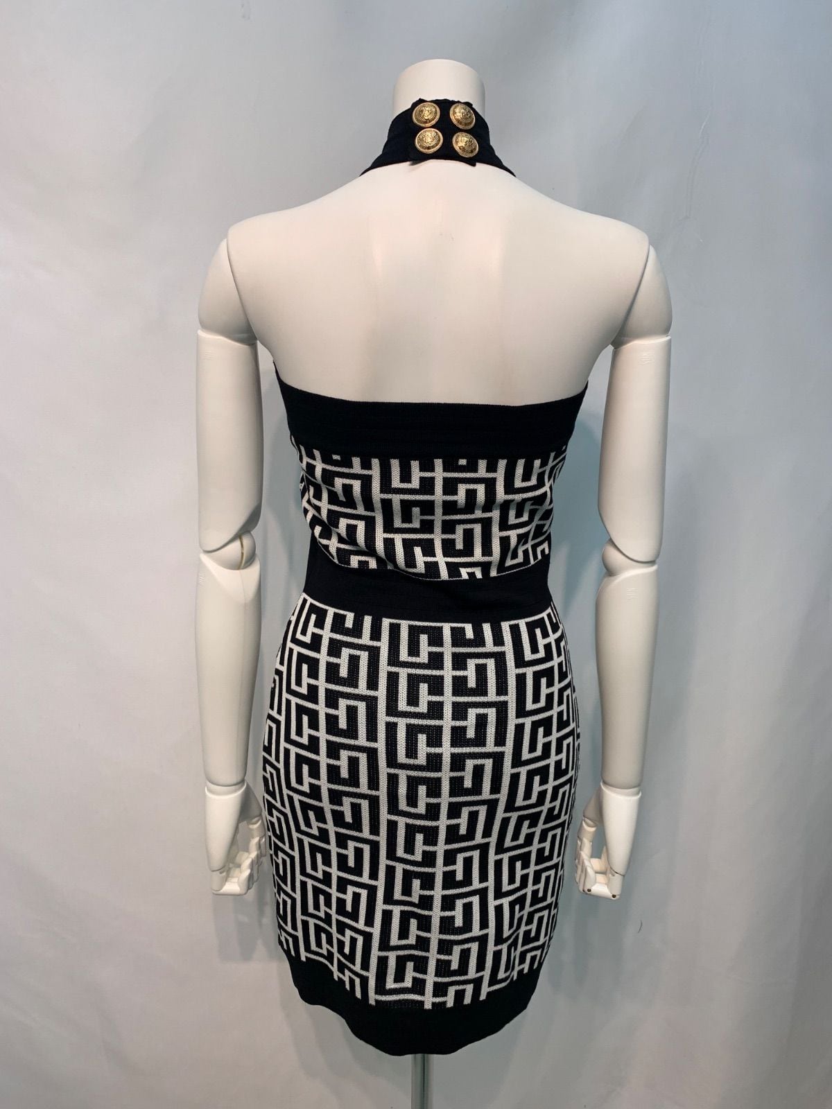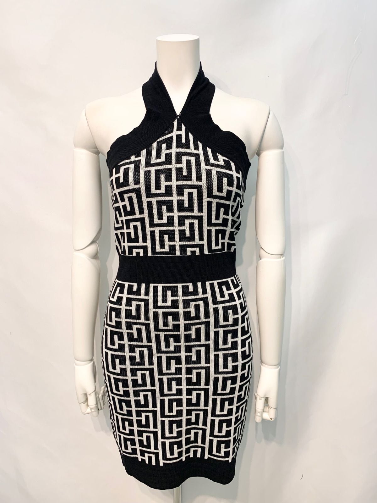 2295 DAZZY デイジー キャバクラ ドレス ニット ホルターネック 総柄 バックオープン タイト ミニ 伸縮性 キャバドレス