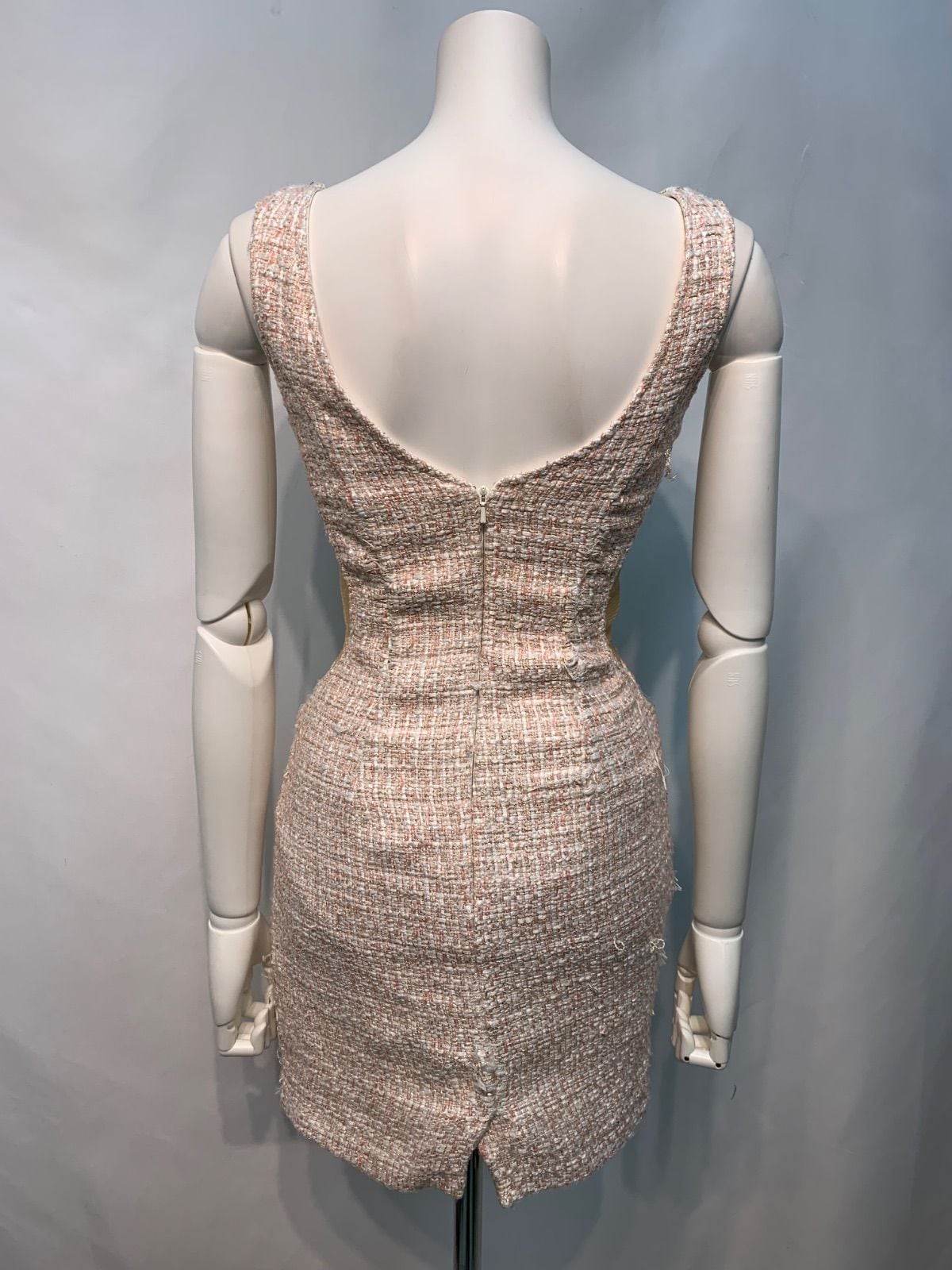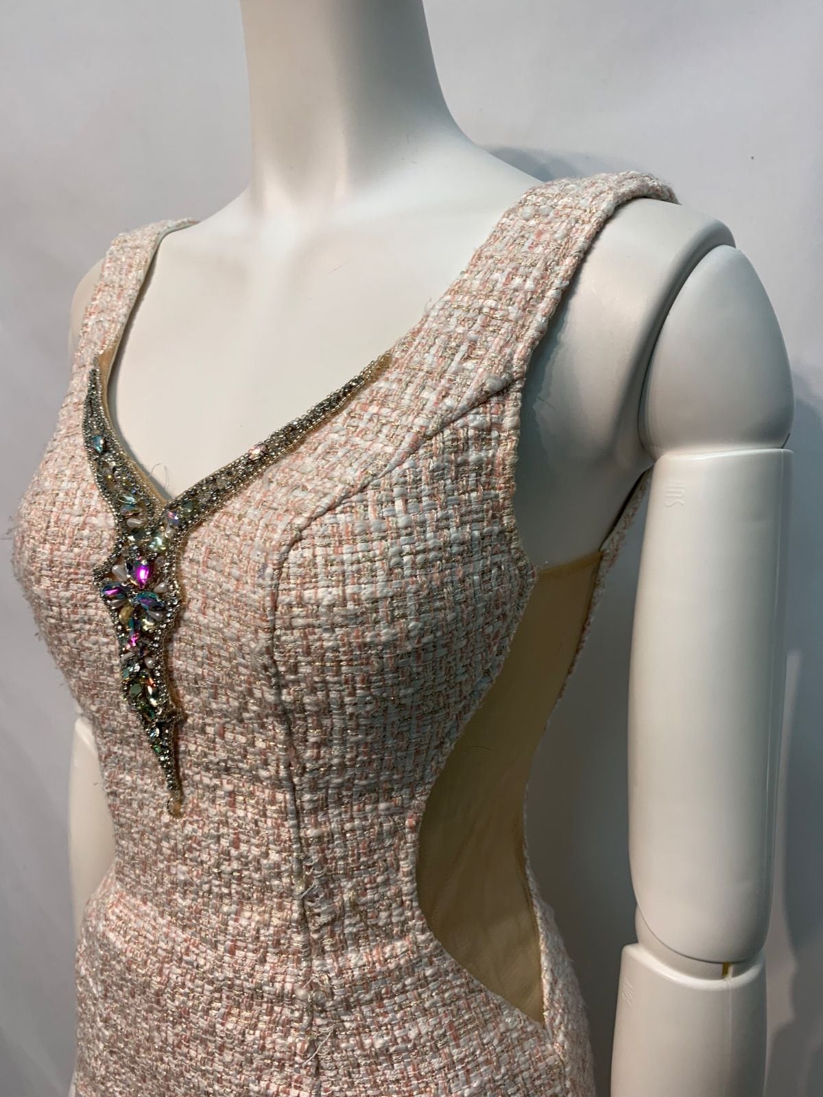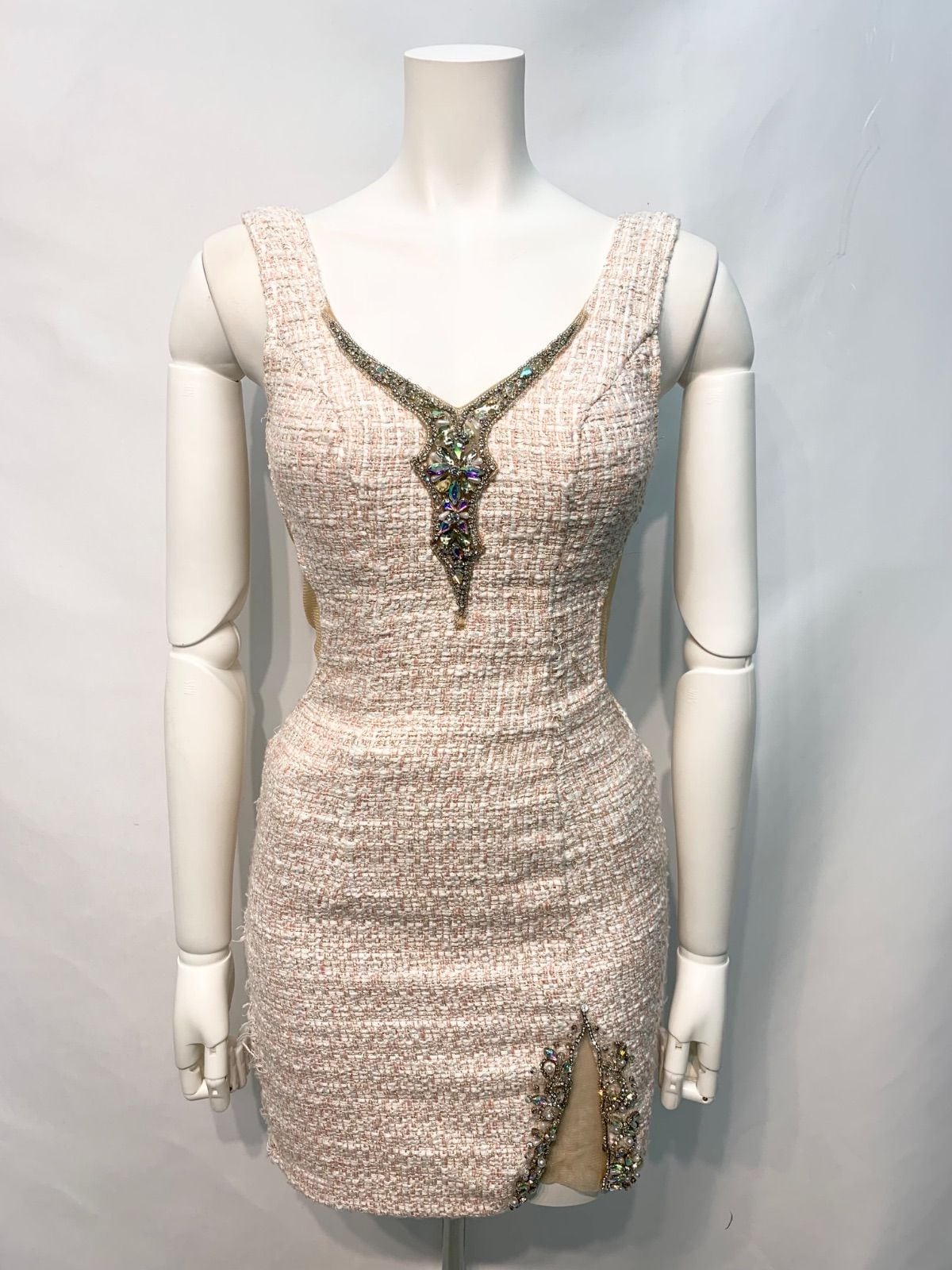 2290 AR Angel R エンジェルアール キャバクラ ドレス ツイード ラメ ノースリーブ サイドシースルー ストーン キャバドレス S