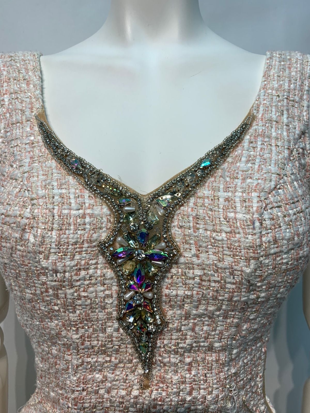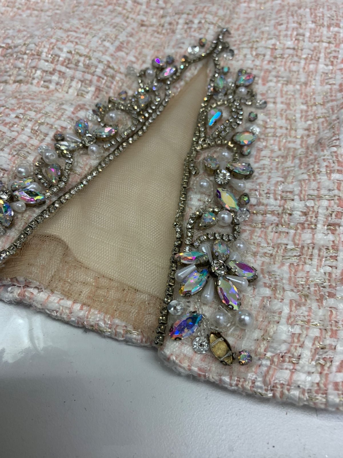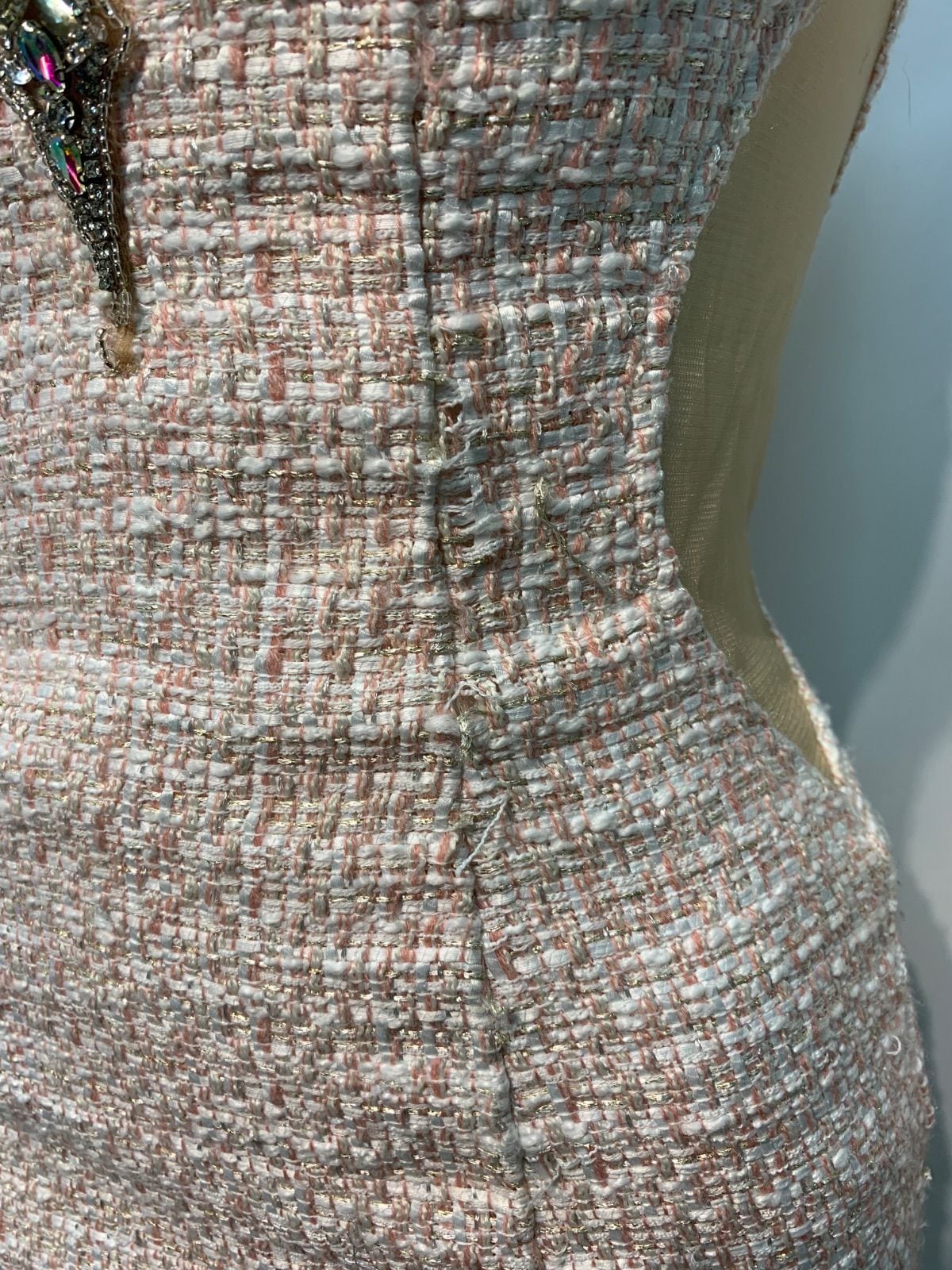 2290 AR Angel R エンジェルアール キャバクラ ドレス ツイード ラメ ノースリーブ サイドシースルー ストーン キャバドレス S