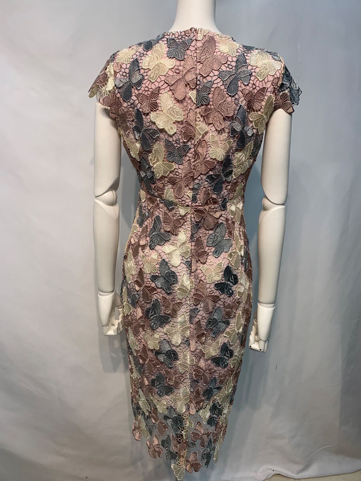2316 han queen キャバクラ ドレス 総レース 蝶々 バタフライ 刺繍 ミディ タイト キャバドレス M