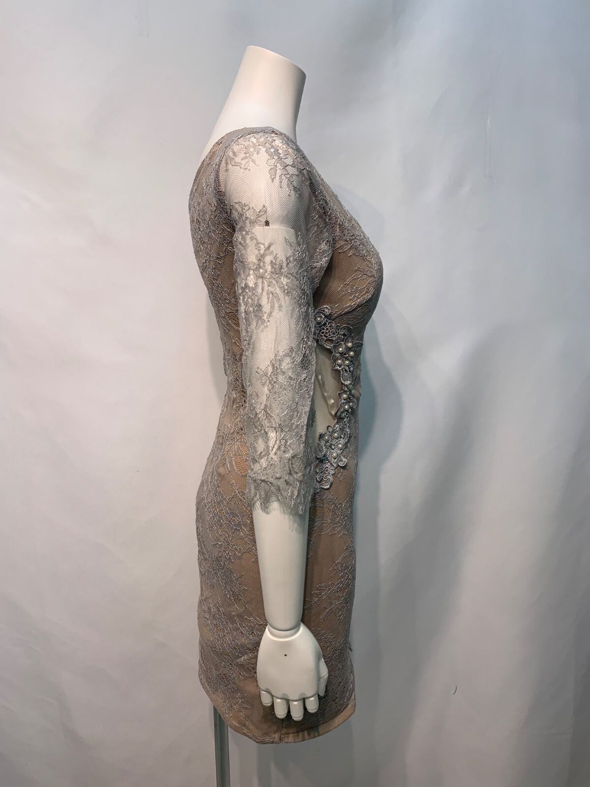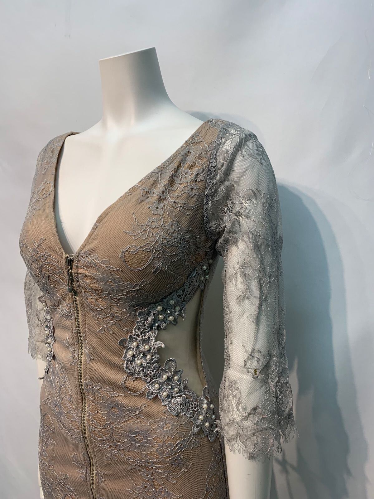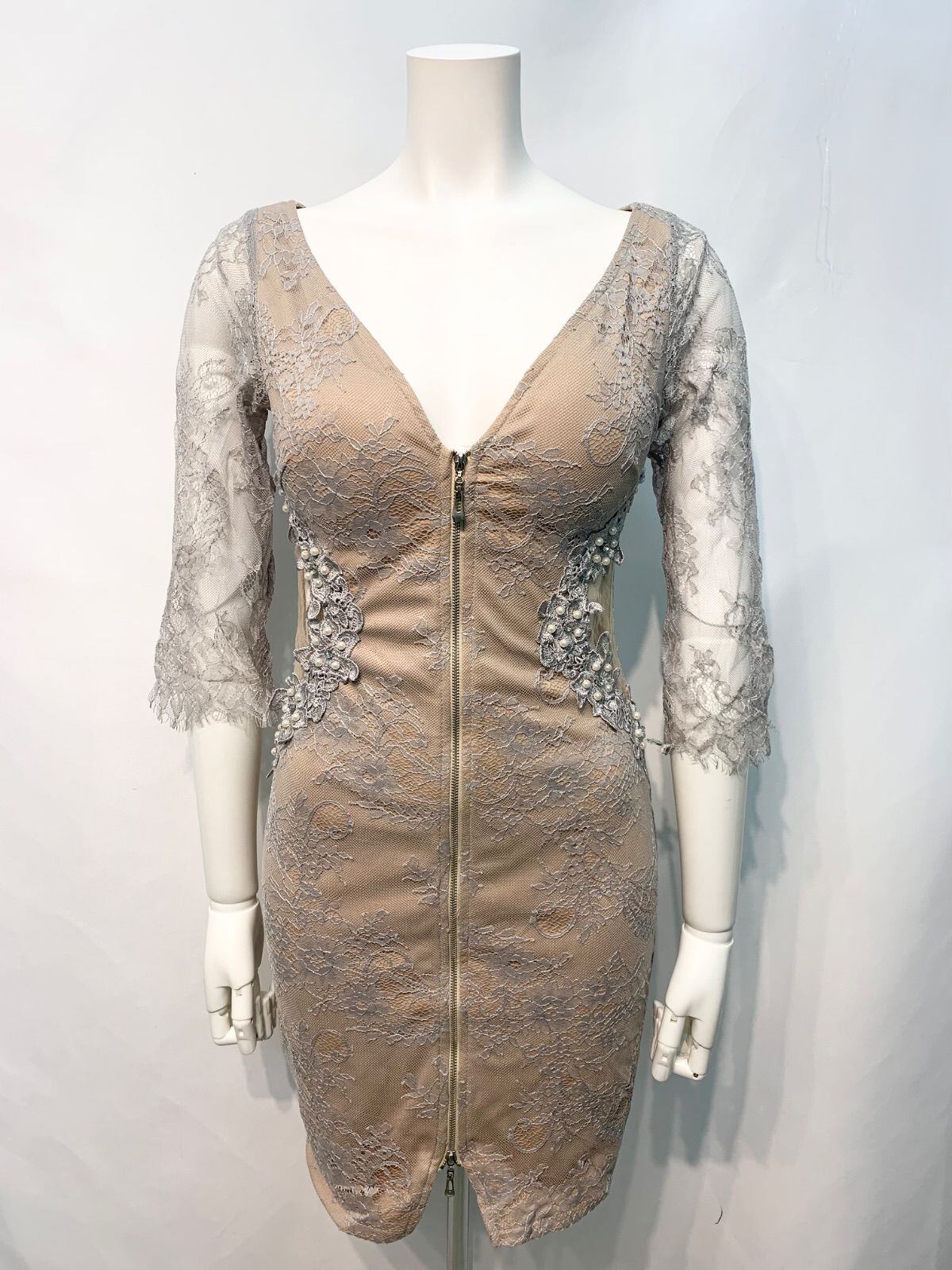 2303 DAZZY デイジー キャバクラ ドレス パール フラワー刺繍 総レース タイト ミニ フロントジップ キャバドレス M