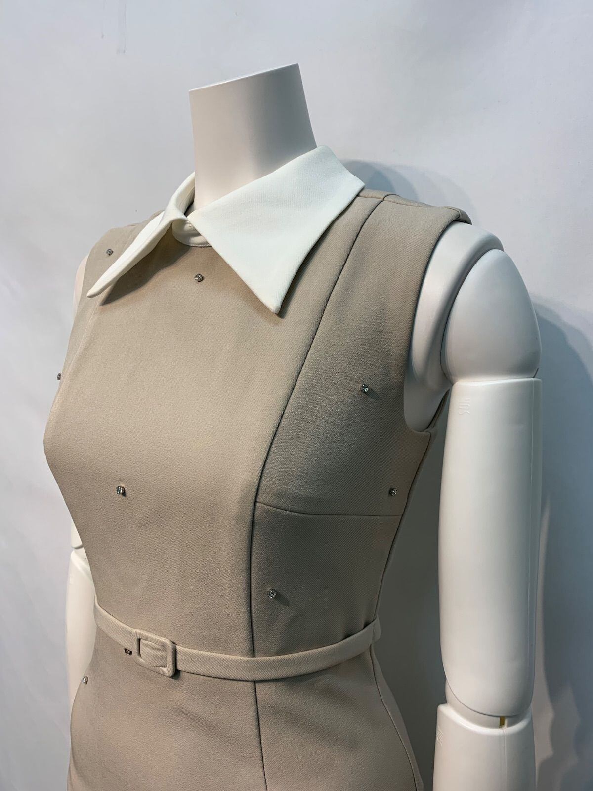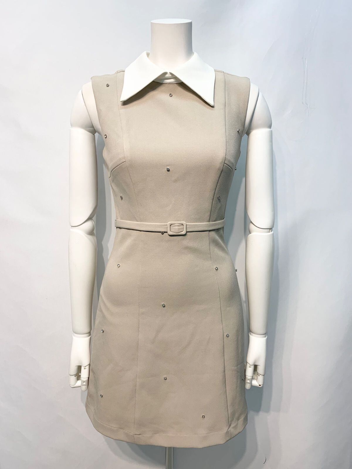 2298 DEA by ROBE de FLEURS ディアバイローブドフルール キャバクラ ドレス ノースリーブ ストーン 襟付き タイト ミニ 伸縮性 キャバドレス S