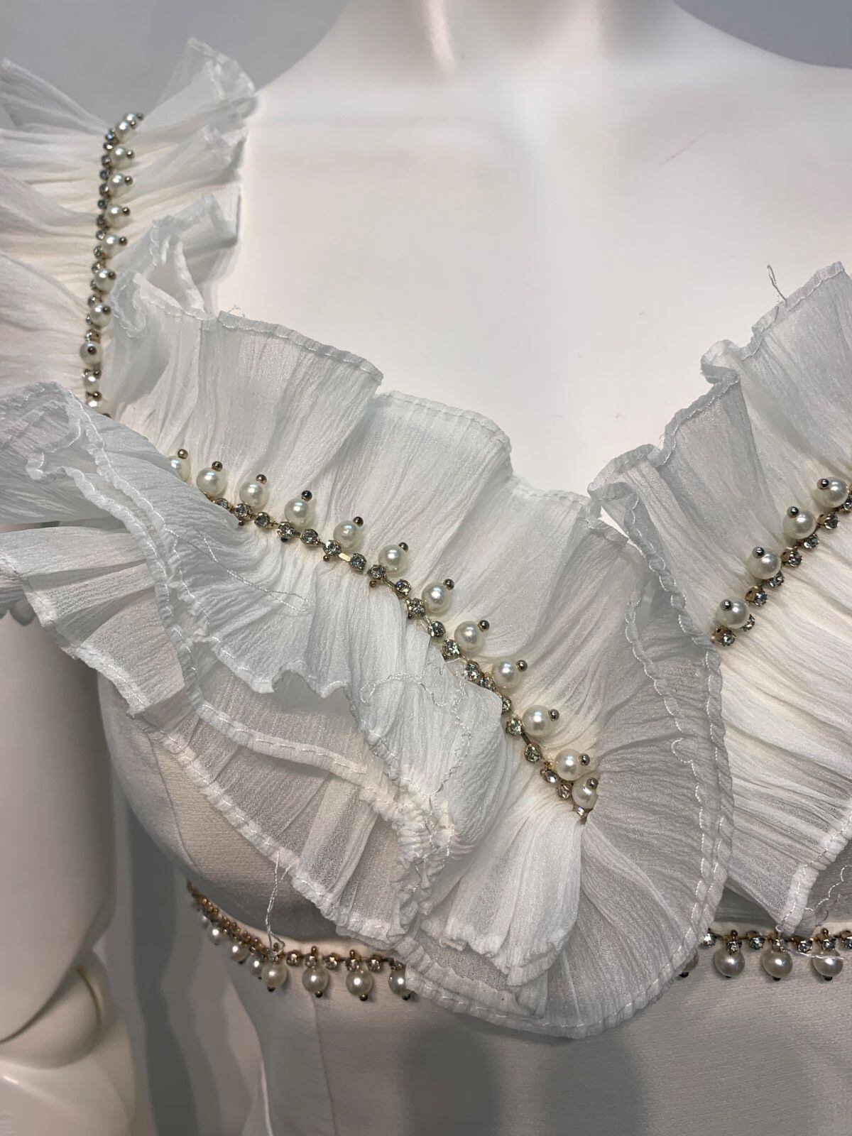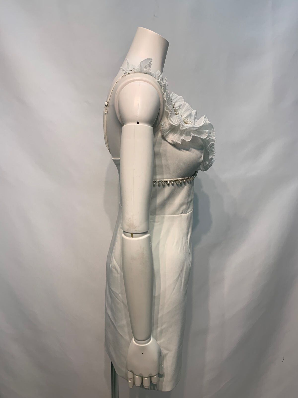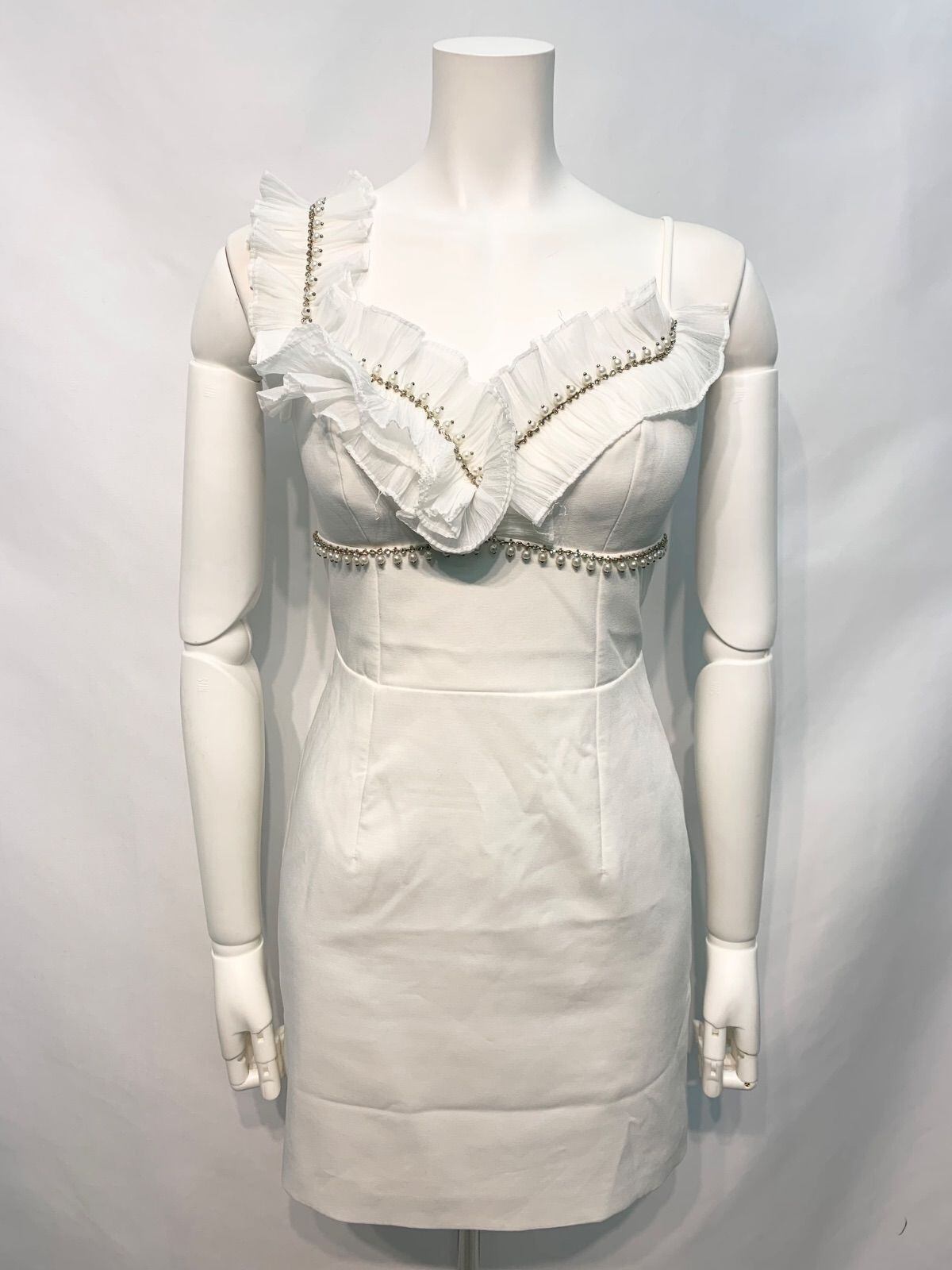 2559 キャバクラ ドレス レース フリル ストーン パール タイト ミニ 伸縮性 キャバドレス S