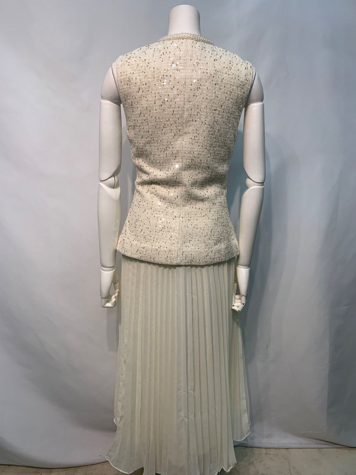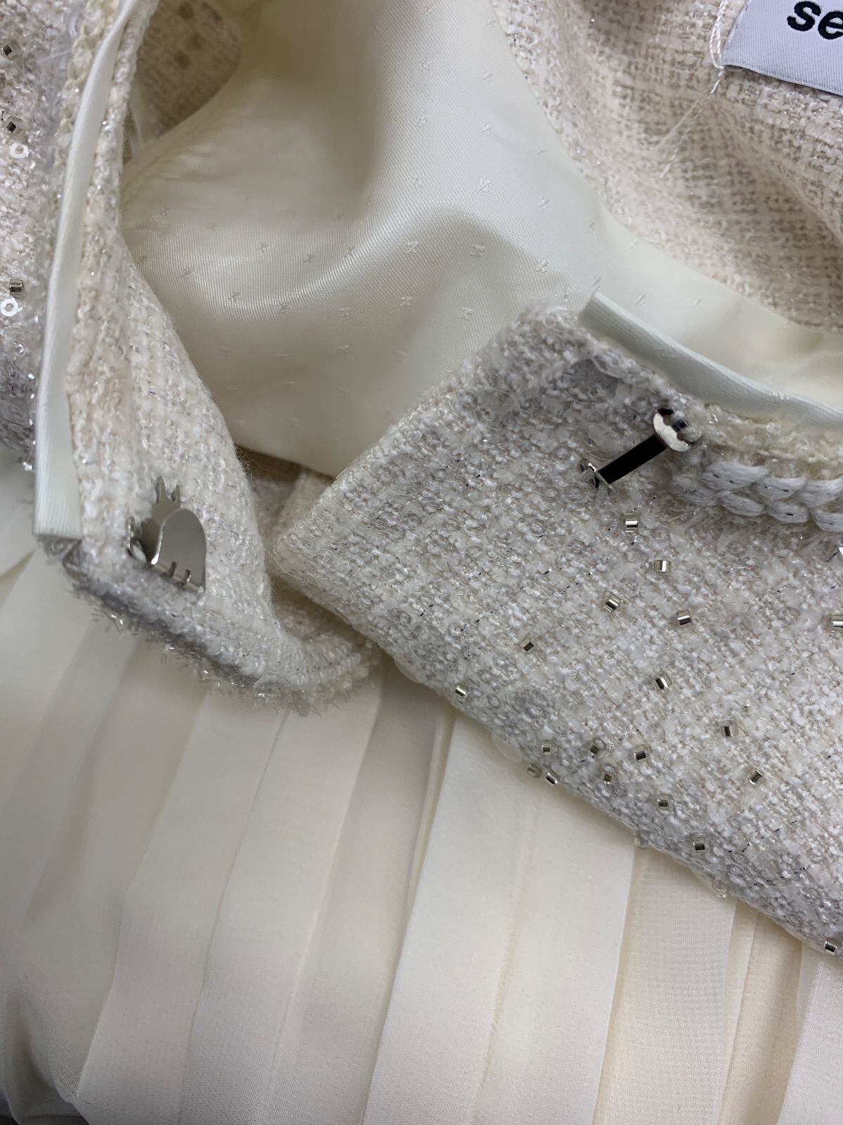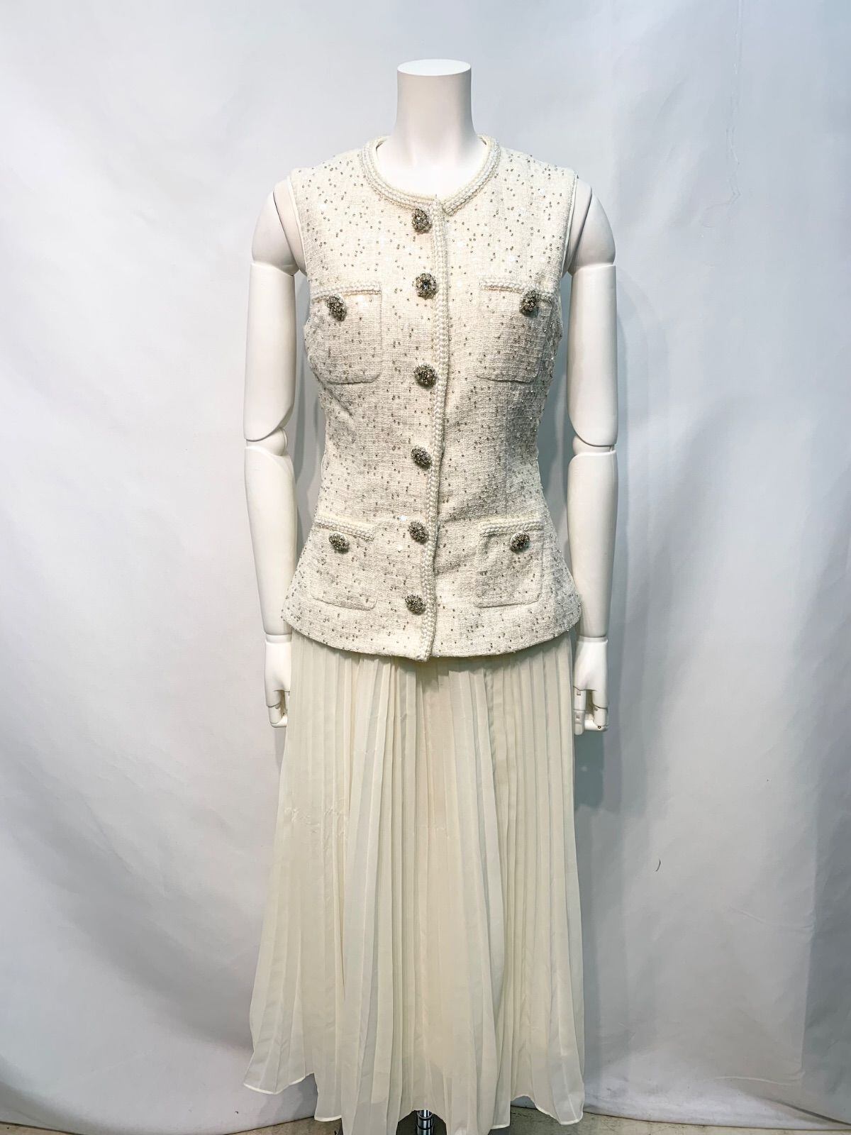 2545 SELFPORTRAIT セルフポートレイト キャバクラ ドレス ツイード ビジュー ノースリーブ オールインワン ストーン キラキラ プリーツスカート キャバドレス UK4