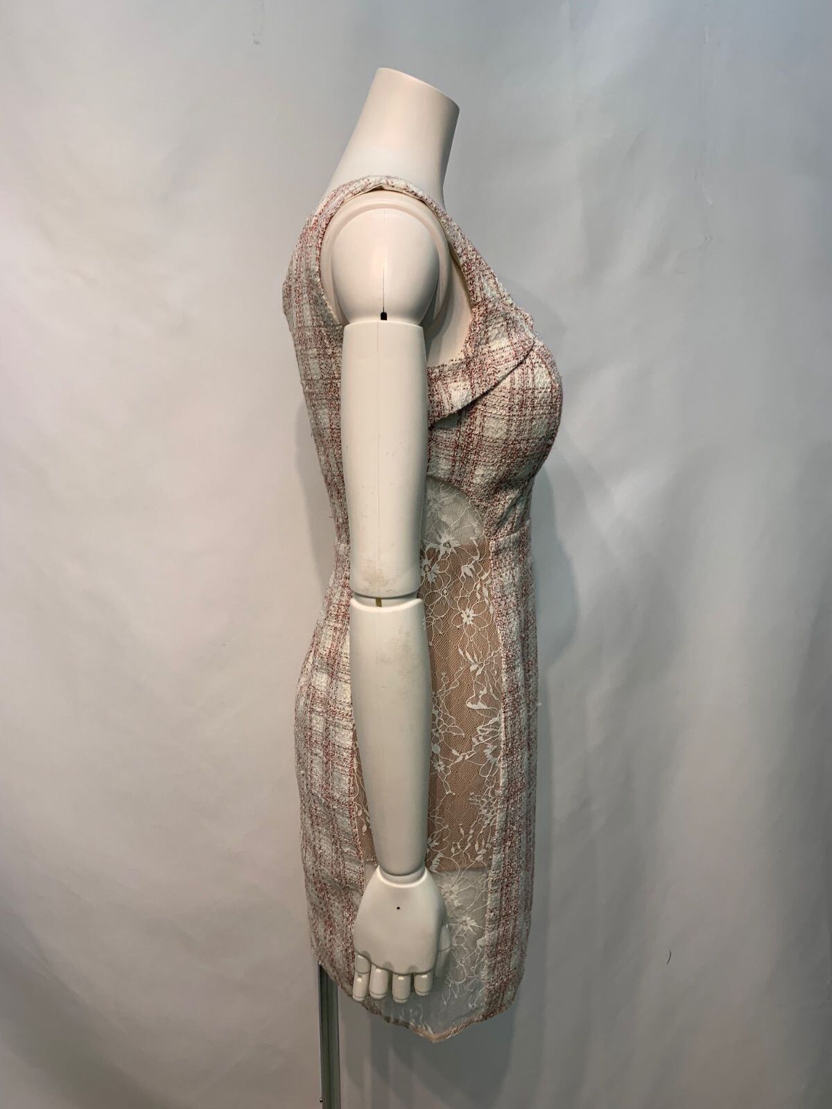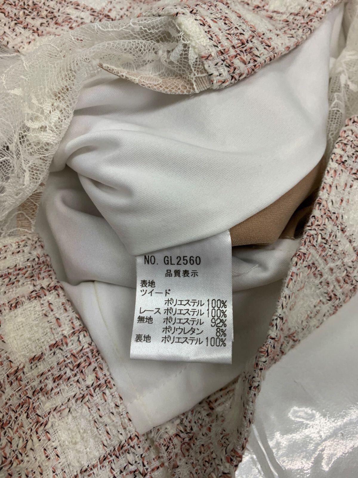 2531 ROBE de FLEURS Glossy ローブドフルール グロッシー キャバクラ ドレス ツイード×レース フロントジップ タイト ノースリーブ キャバドレス M
