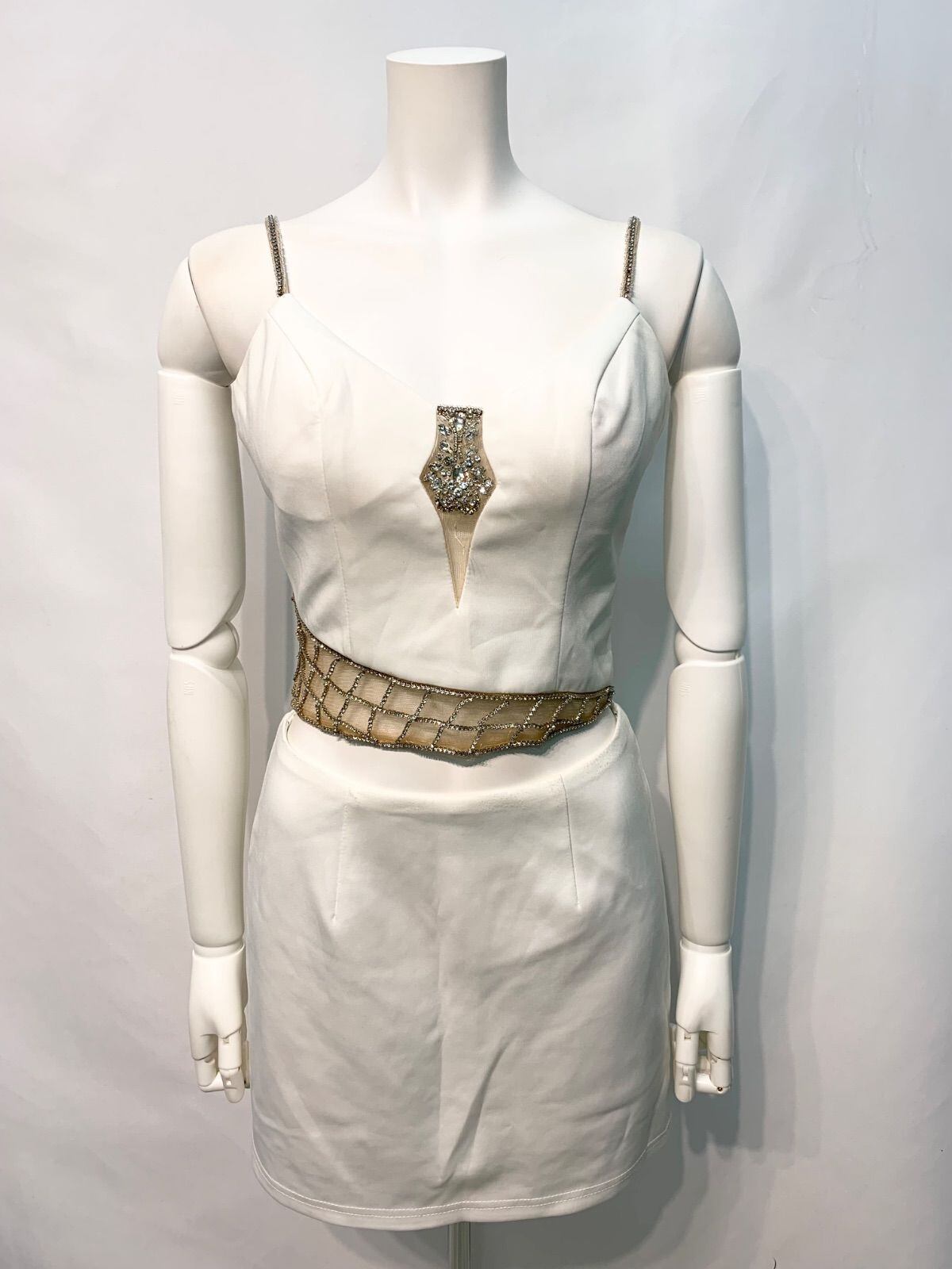 2529 AR Angel R エンジェルアール キャバクラ ドレス セットアップ タイト ミニ ストーン キラキラ ビジュー 伸縮性 キャバドレス M