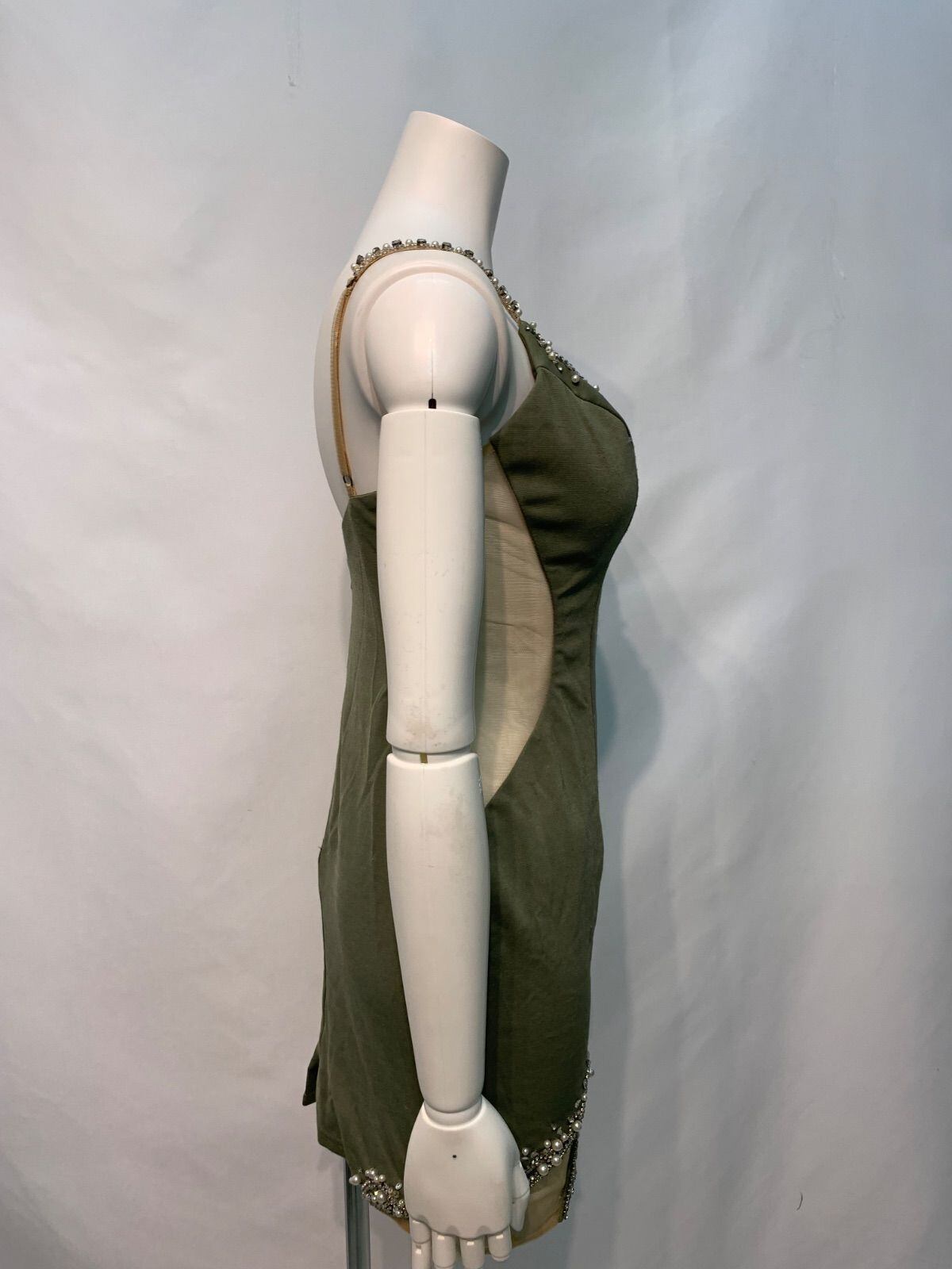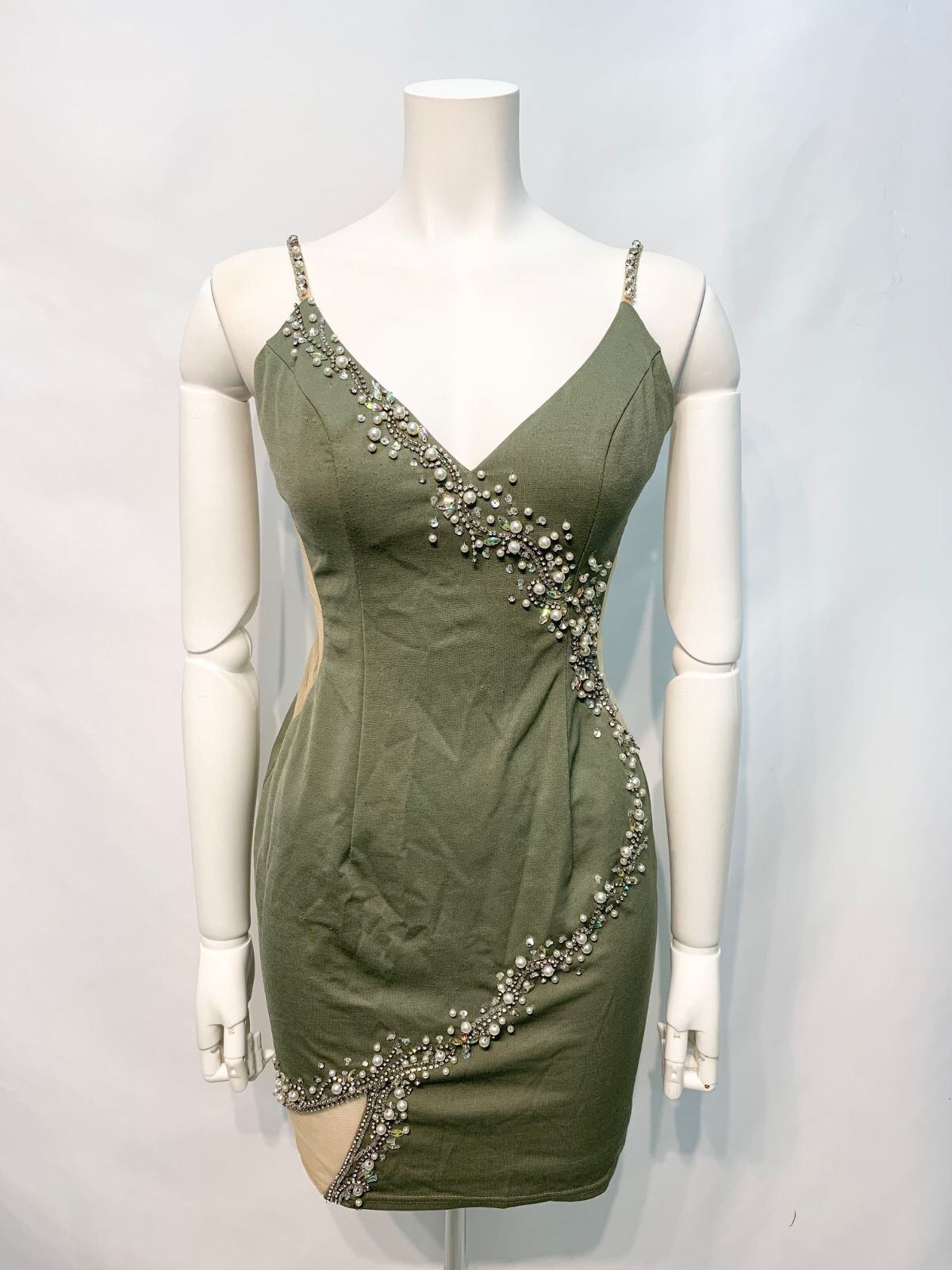 2528 AR Angel R エンジェルアール キャバクラ ドレス 伸縮性 ストーン タイト ミニ シースルー パール ビジュー キャバドレス M