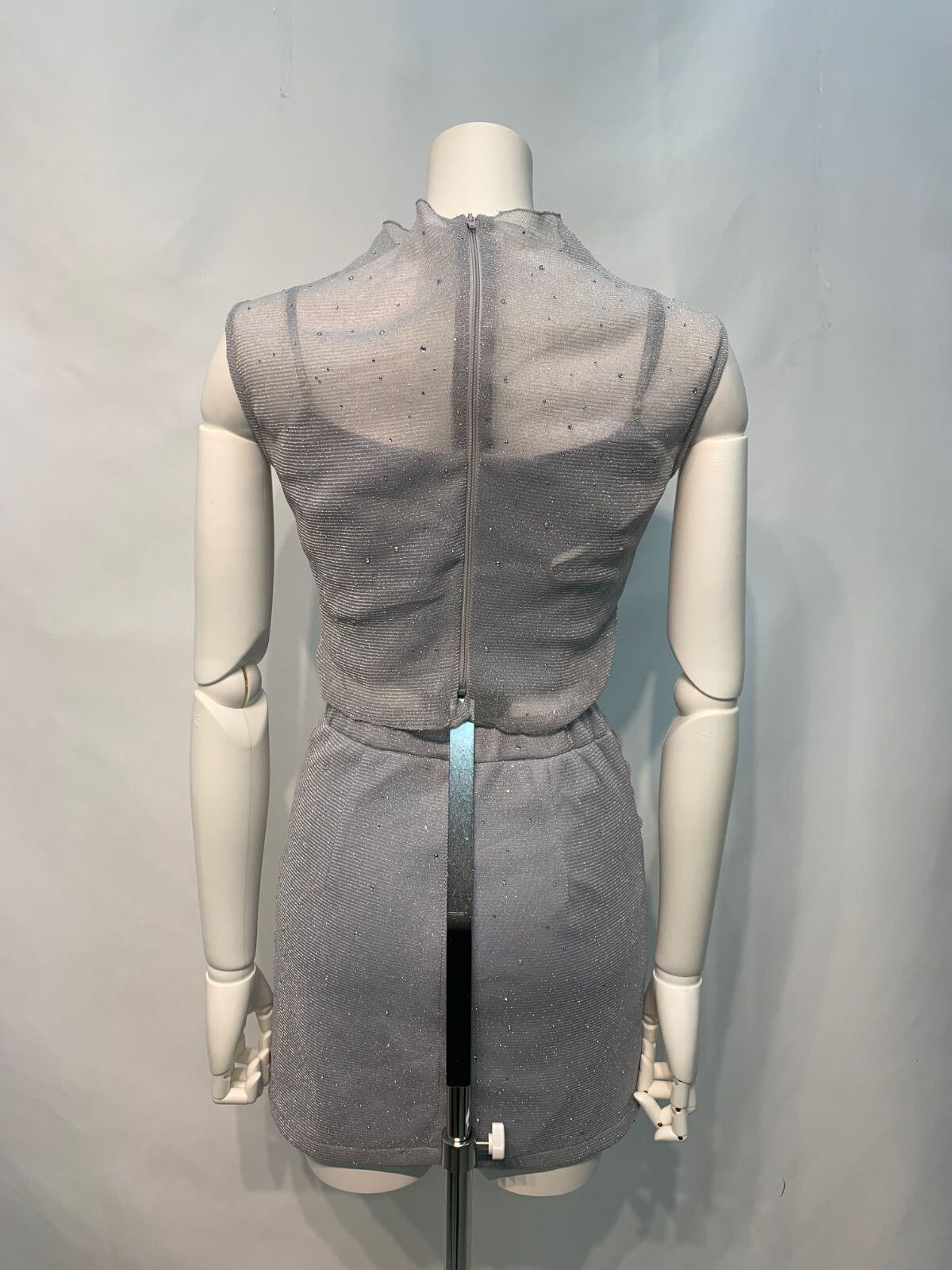 2525 JEWELS ジュエルズ キャバクラ ドレス シアーラメビジューセットアップ キラキラ ストーン タイト シースルー ミニ 伸縮性 ハイネック ノースリーブ キャバドレス M