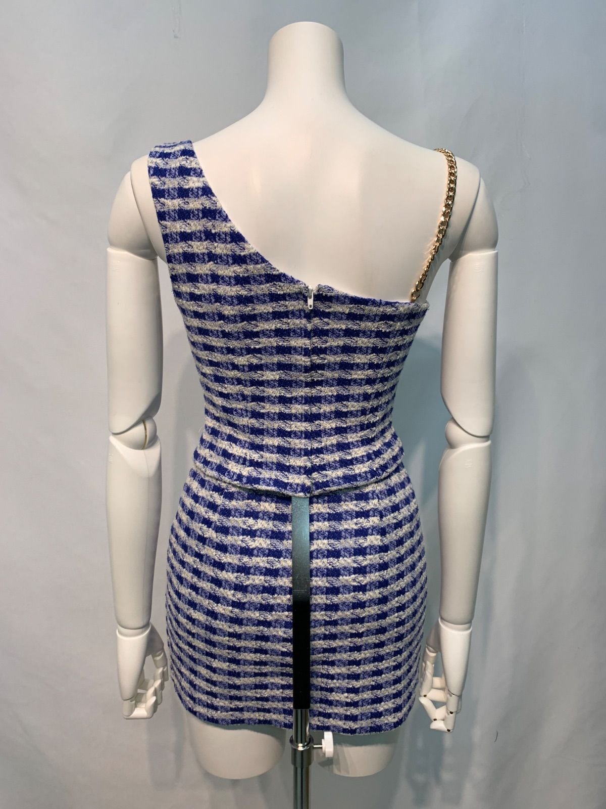 2519 AR Angel R エンジェルアール キャバクラ ドレス セットアップ ツイード キラキラ タイト ミニ チェック チェーンストラップ キャバドレス S