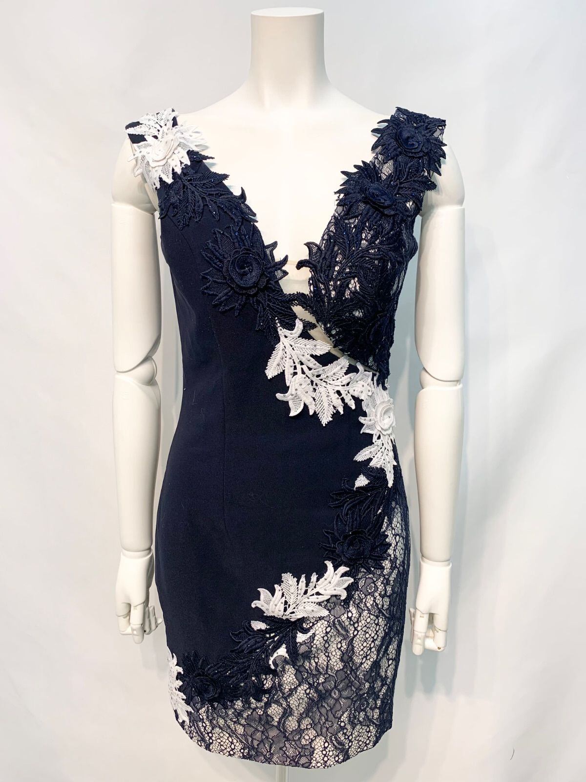 2518 IRMA イルマ キャバクラ ドレス レース フラワー刺繍 ストーン キラキラ 伸縮性 タイト ミニ ノースリーブ キャバドレス M