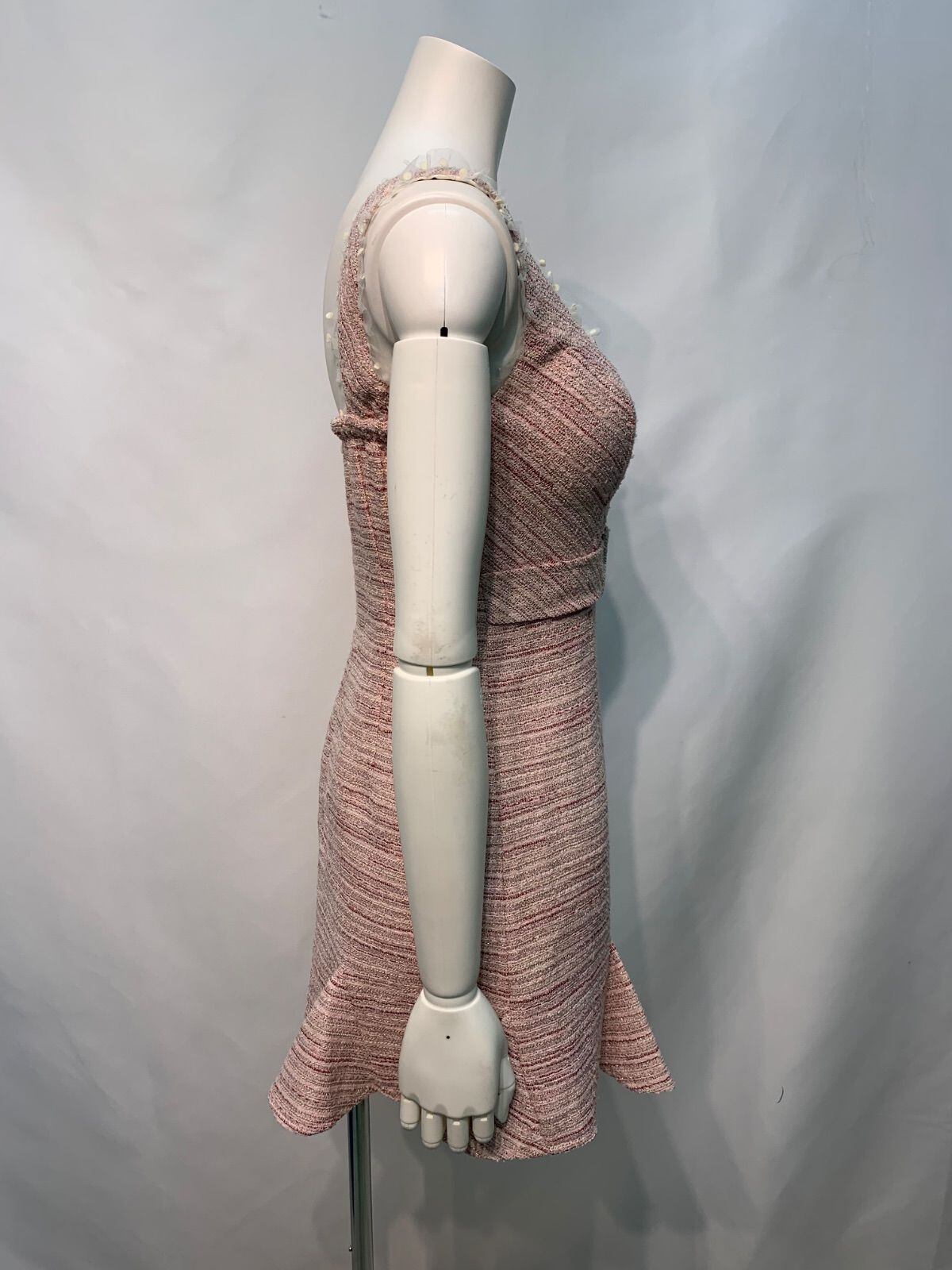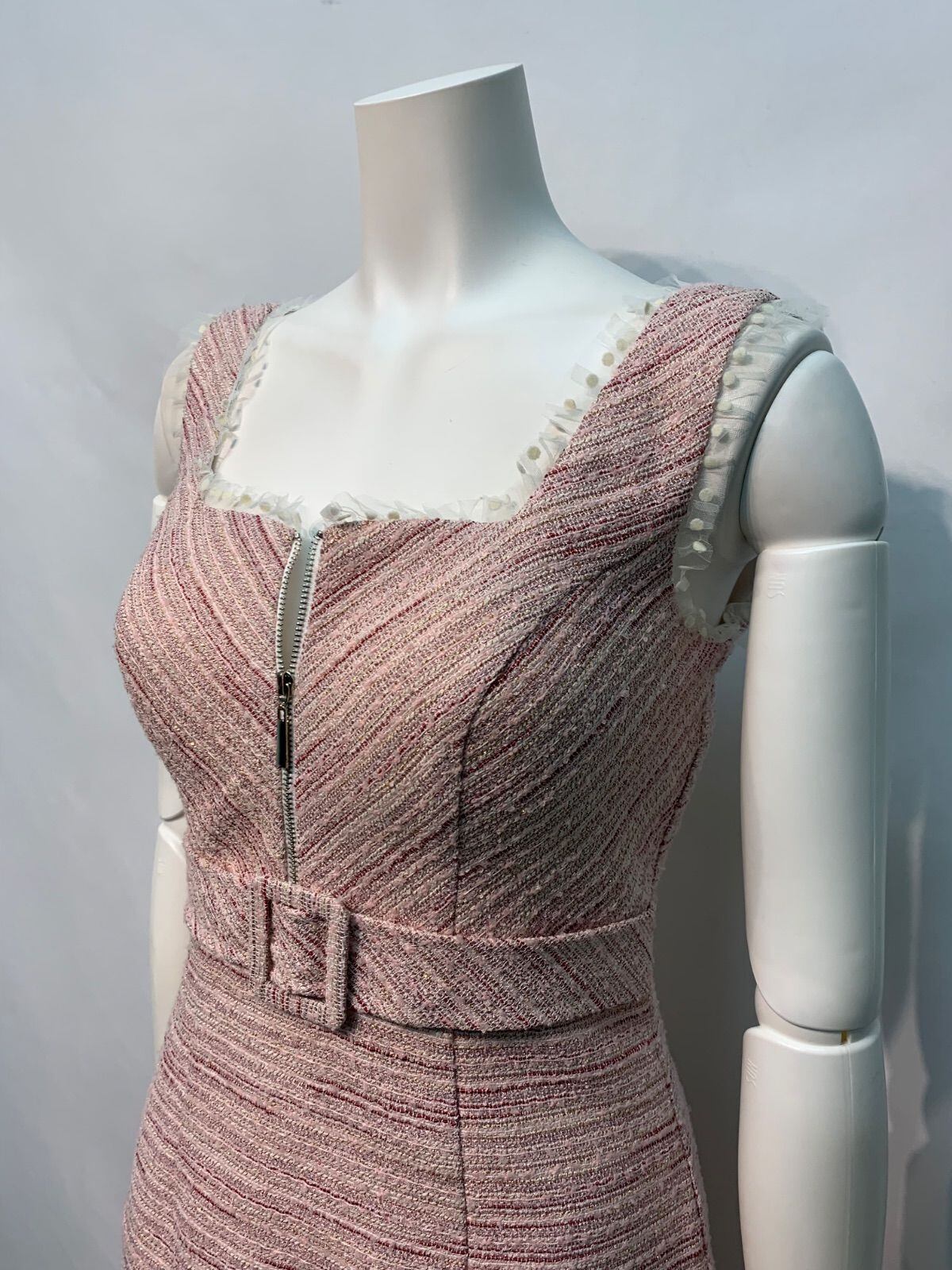 2488 ROBE de FLEURS ローブドフルール キャバクラ ドレス サマーツイード×ドットチュール ラメ レース ウエストベルトデザイン ノースリーブ タイト ミニ キャバドレス M