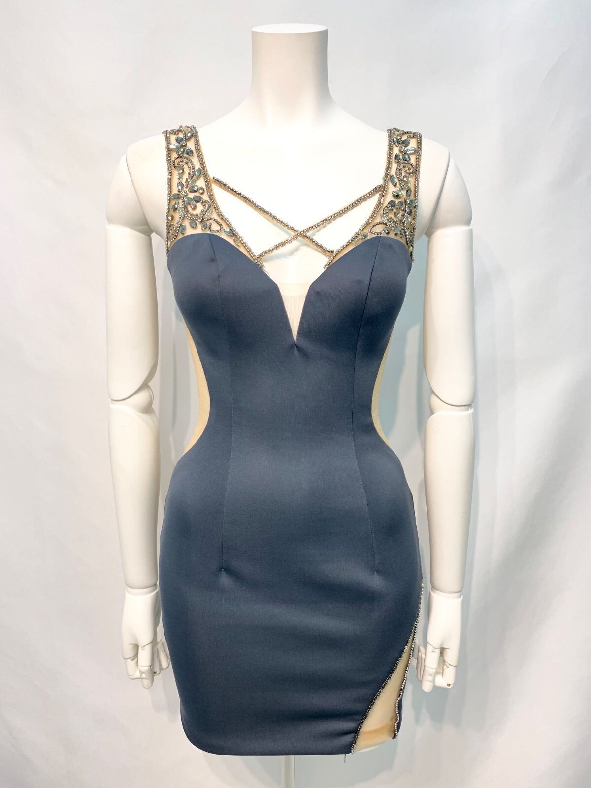 2481 AR Angel R エンジェルアール キャバクラ ドレス 伸縮性 シースルー ストーン ビジュー キラキラ クロスデザイン タイト ミニ キャバドレス S