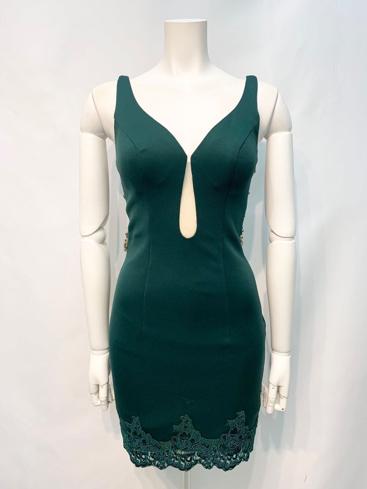 2480 AR Angel R エンジェルアール キャバクラ ドレス 伸縮性 ビジュー ストーン タイト ミニ レース フラワー バックオープン キャバドレス S