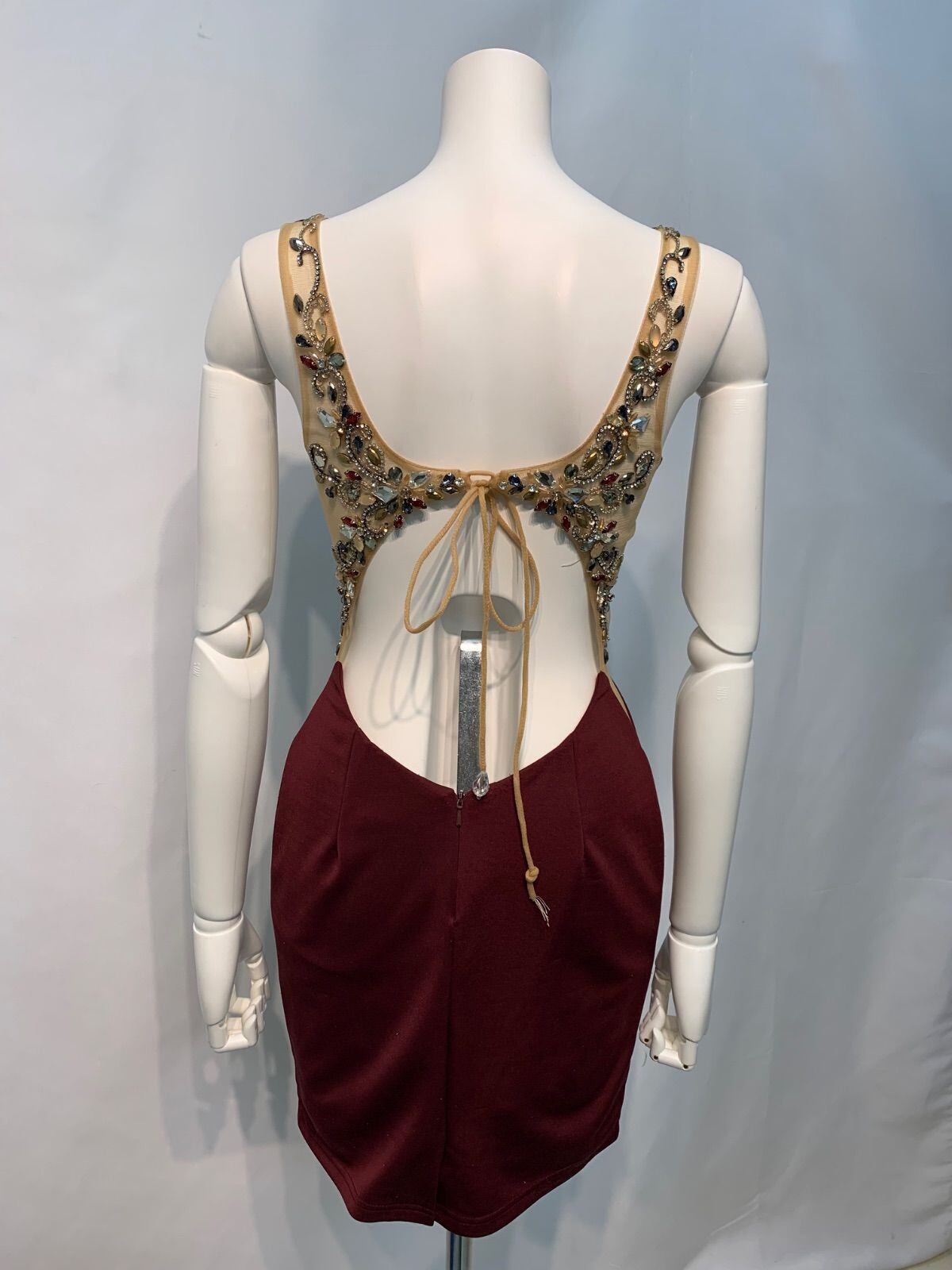 2478 AR Angel R エンジェルアール キャバクラ ドレス 伸縮性 シースルー ストーン ビジュー バックオープン タイト ミニ キャバドレス M