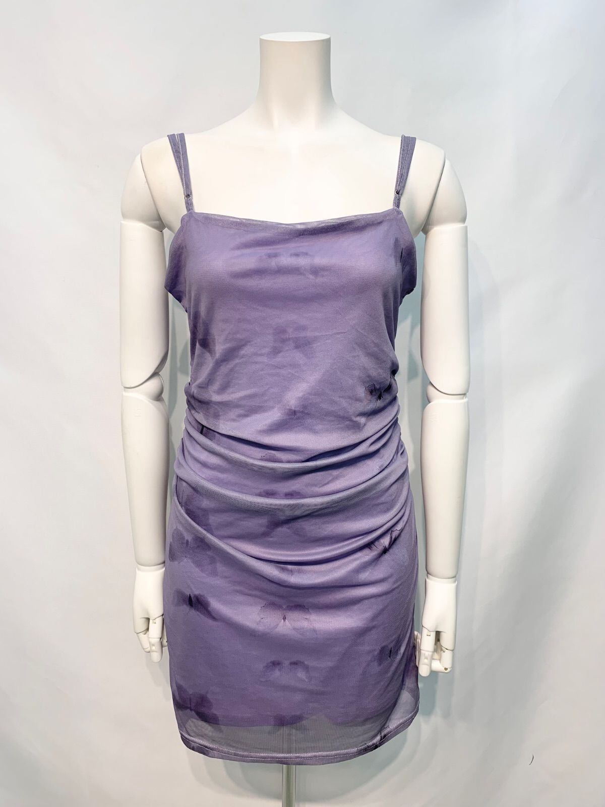 2458 キャバクラ ドレス バタフライプリント 蝶々 シアー 伸縮性 キャミ ギャザー タイト ミニ キャバドレス M