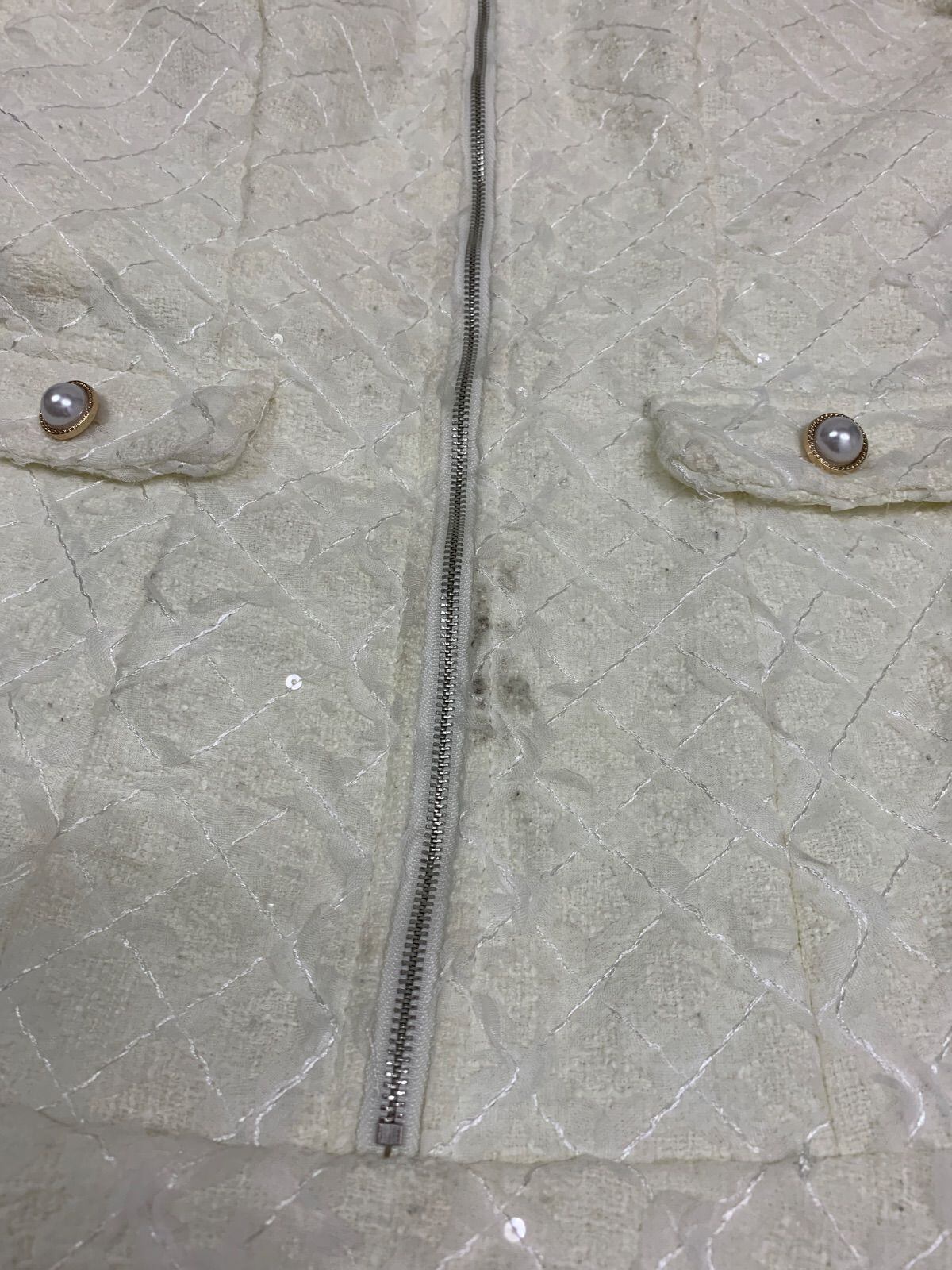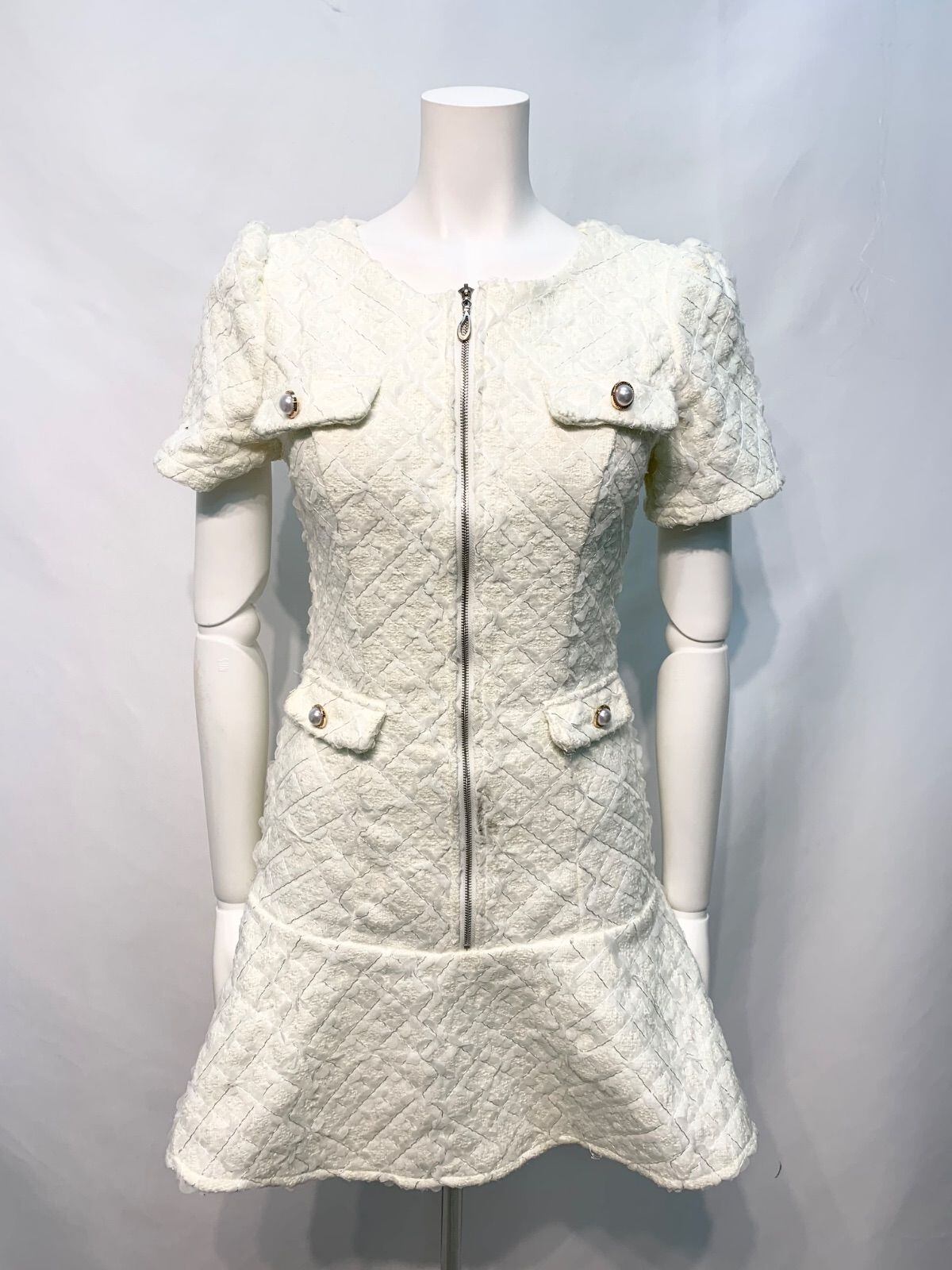 2413 JEWELS ジュエルズ キャバクラ ドレス ツイード フロントジップ タイト ミニ パールボタン キャバドレス M
