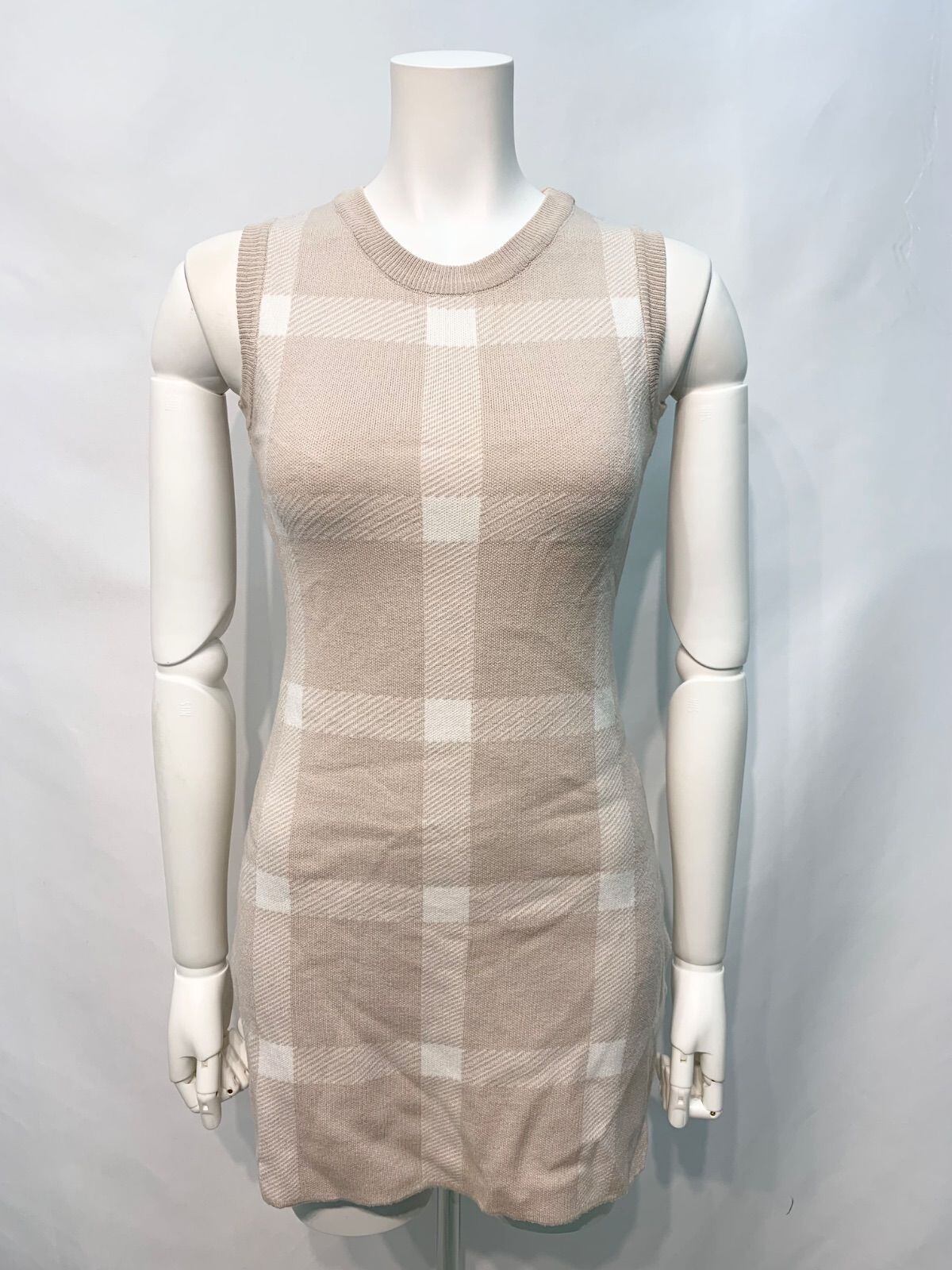 2390 Cheri mi シェリミー キャバクラ ドレス チェック柄 ニットワンピース 伸縮性 タイト ミニ ノースリーブ キャバドレス S