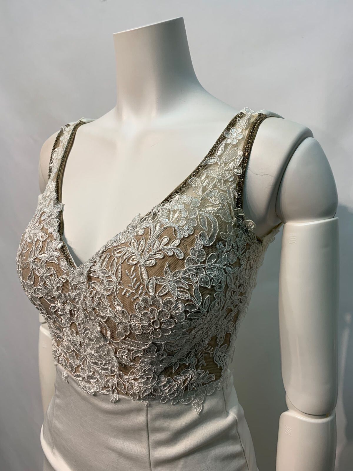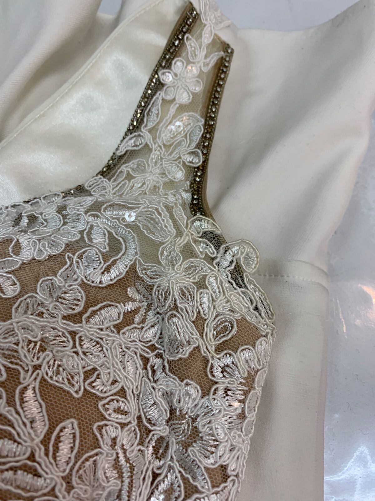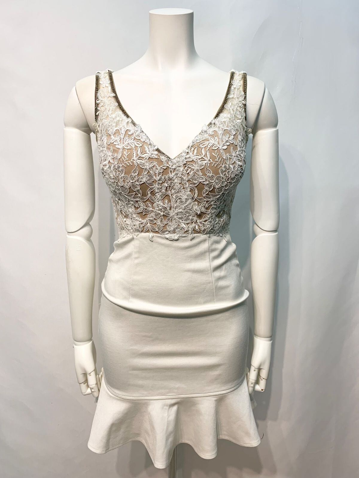2373 JEWELS ジュエルズ キャバクラ ドレス レース 伸縮性 刺繍 ノースリーブ ストーン タイト ミニ キャバドレス XS