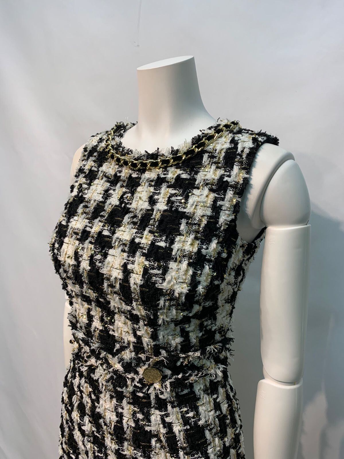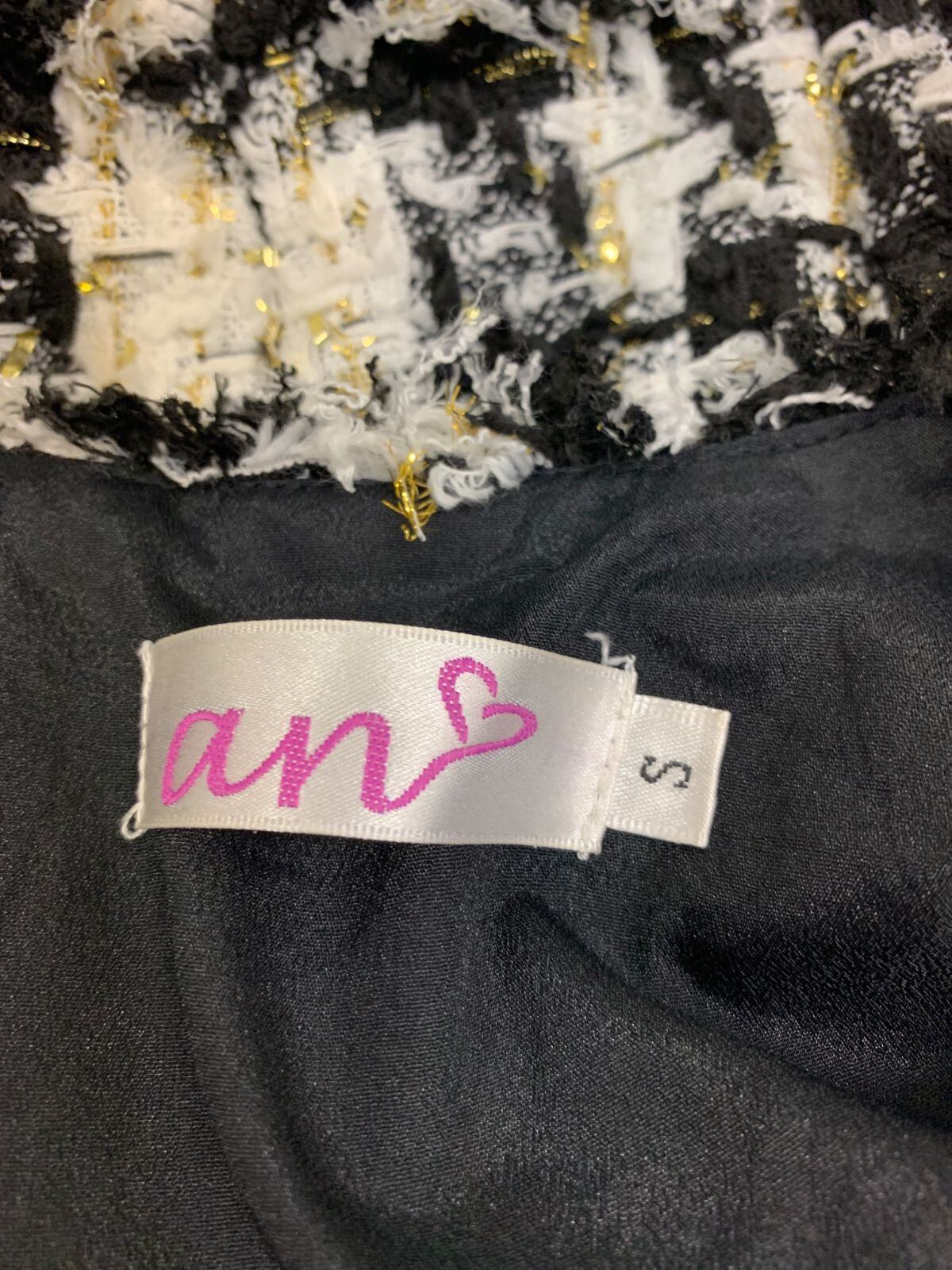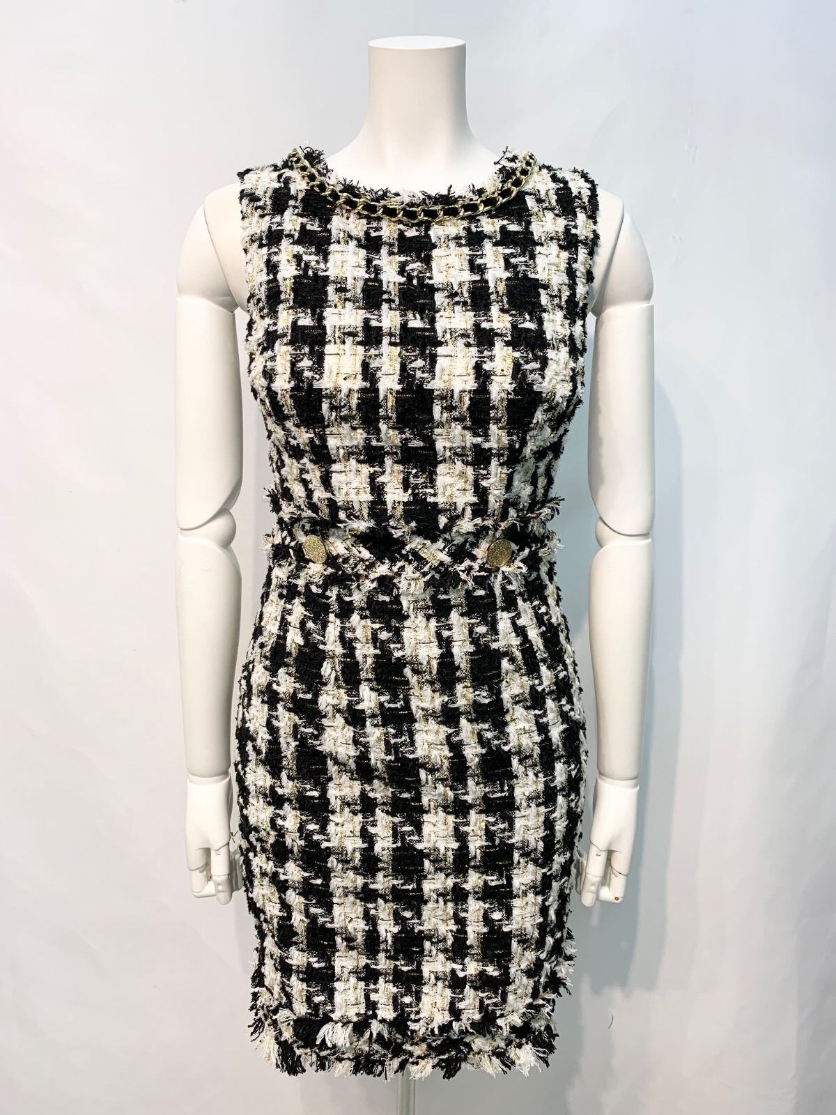 2359 an アン キャバクラ ドレス ツイード ラメ ノースリーブ フリンジ タイト チェーンネック キャバドレス S