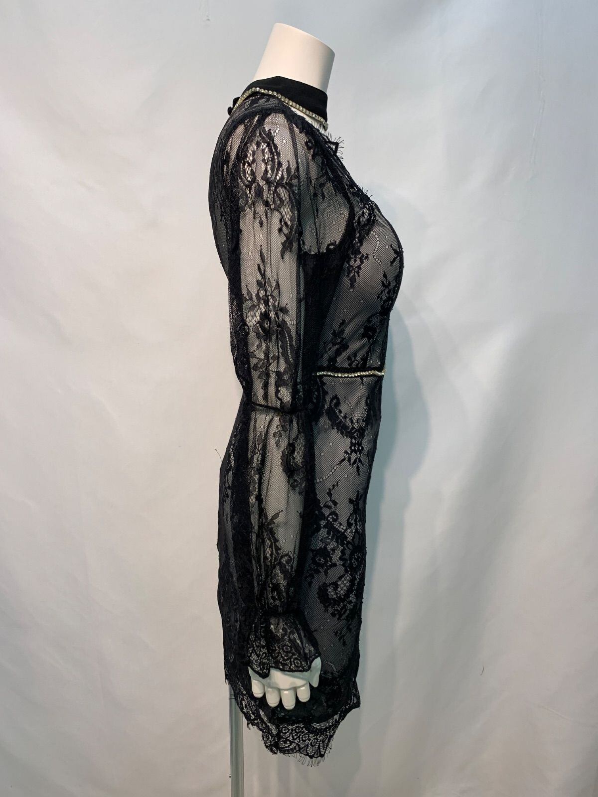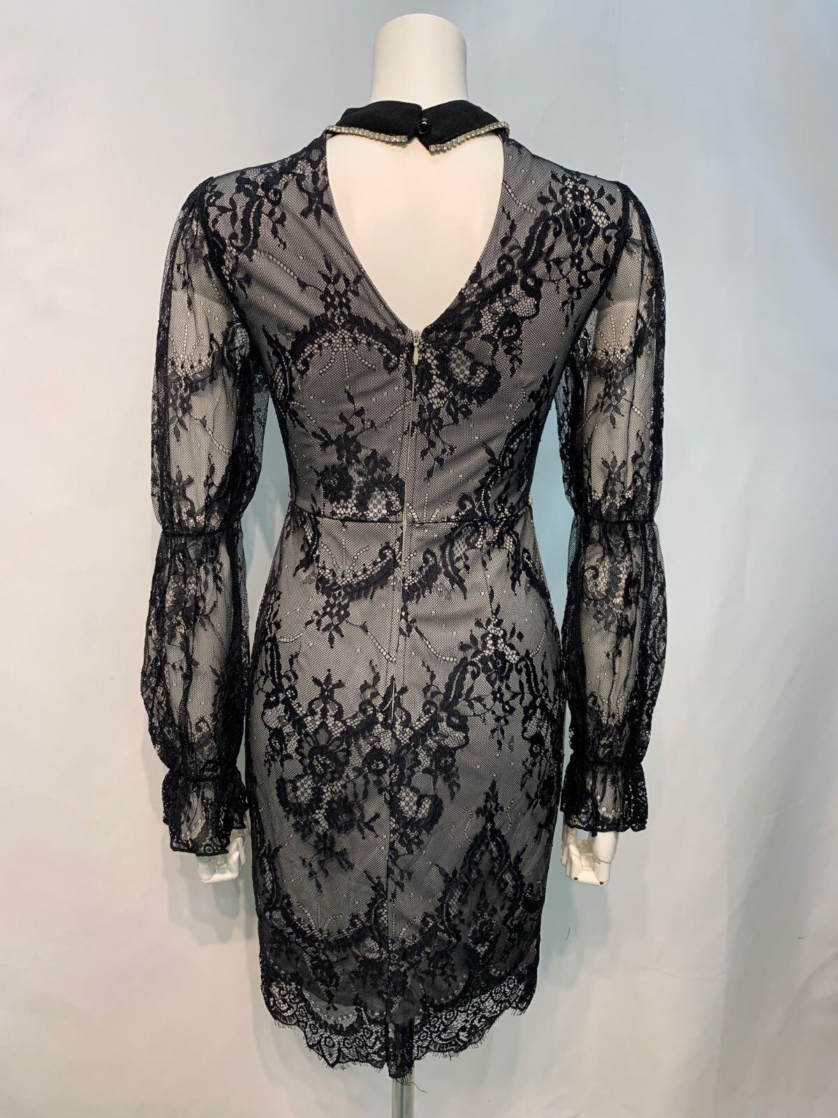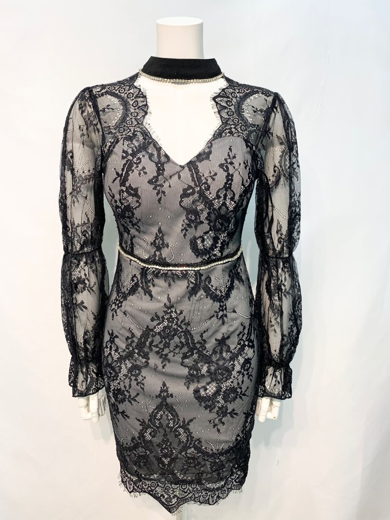 2355 DAZZY デイジー キャバクラ ドレス 総レース ストーン ホルターネック フロントカット タイト ミニ キャバドレス S