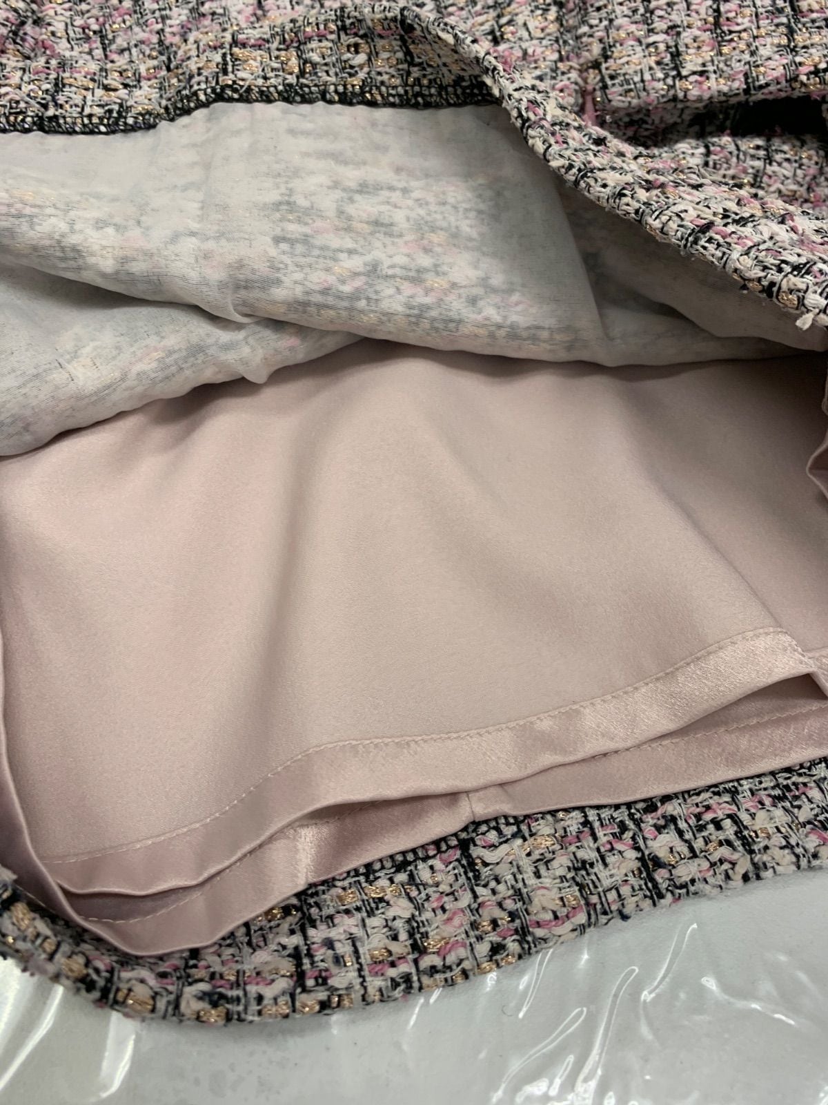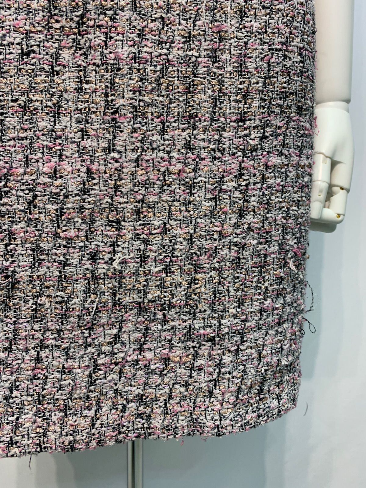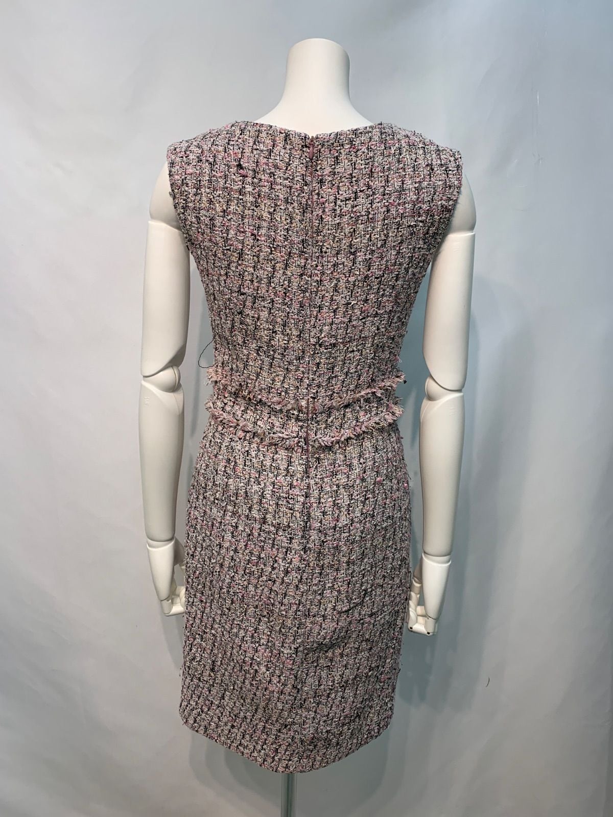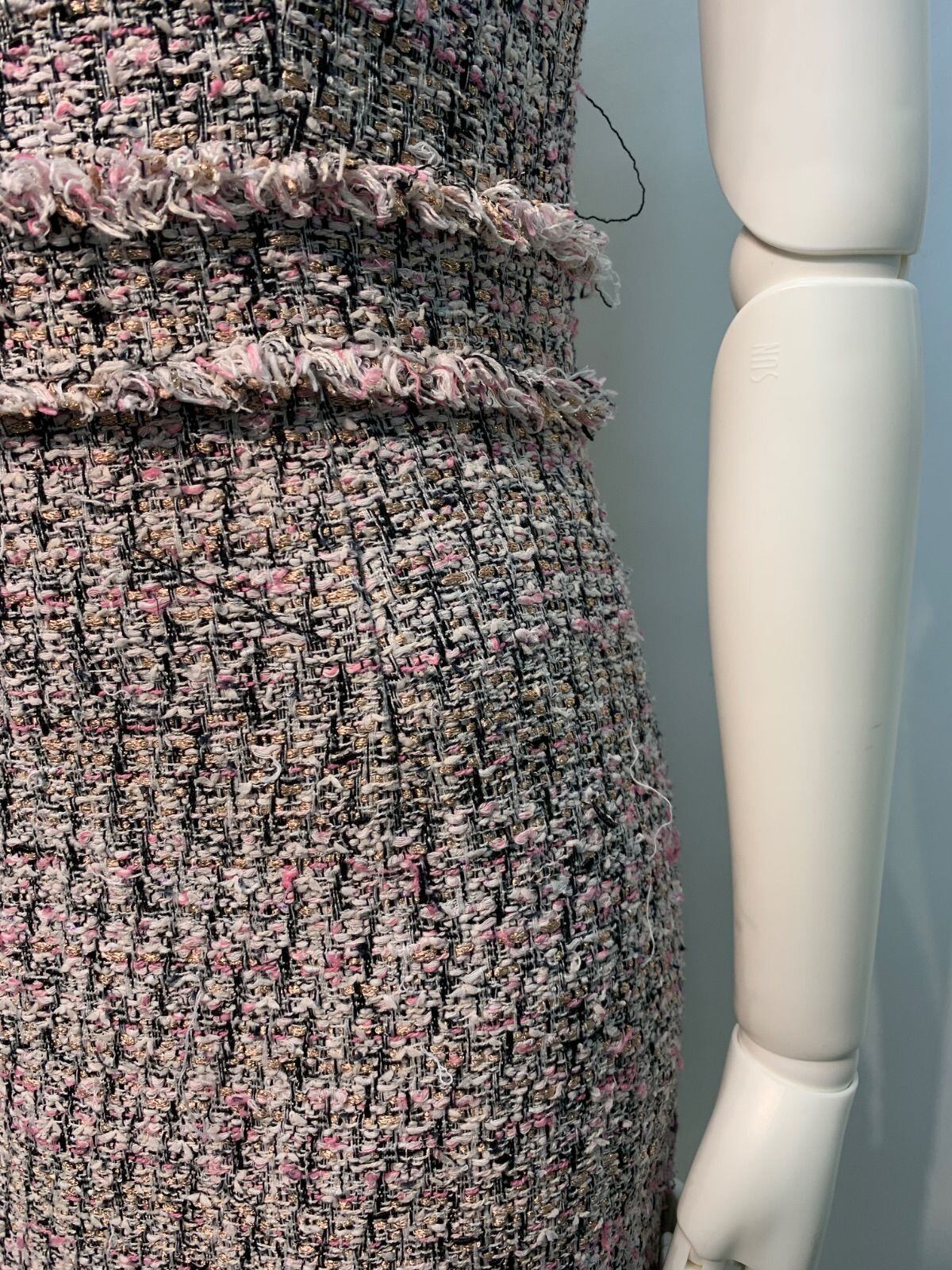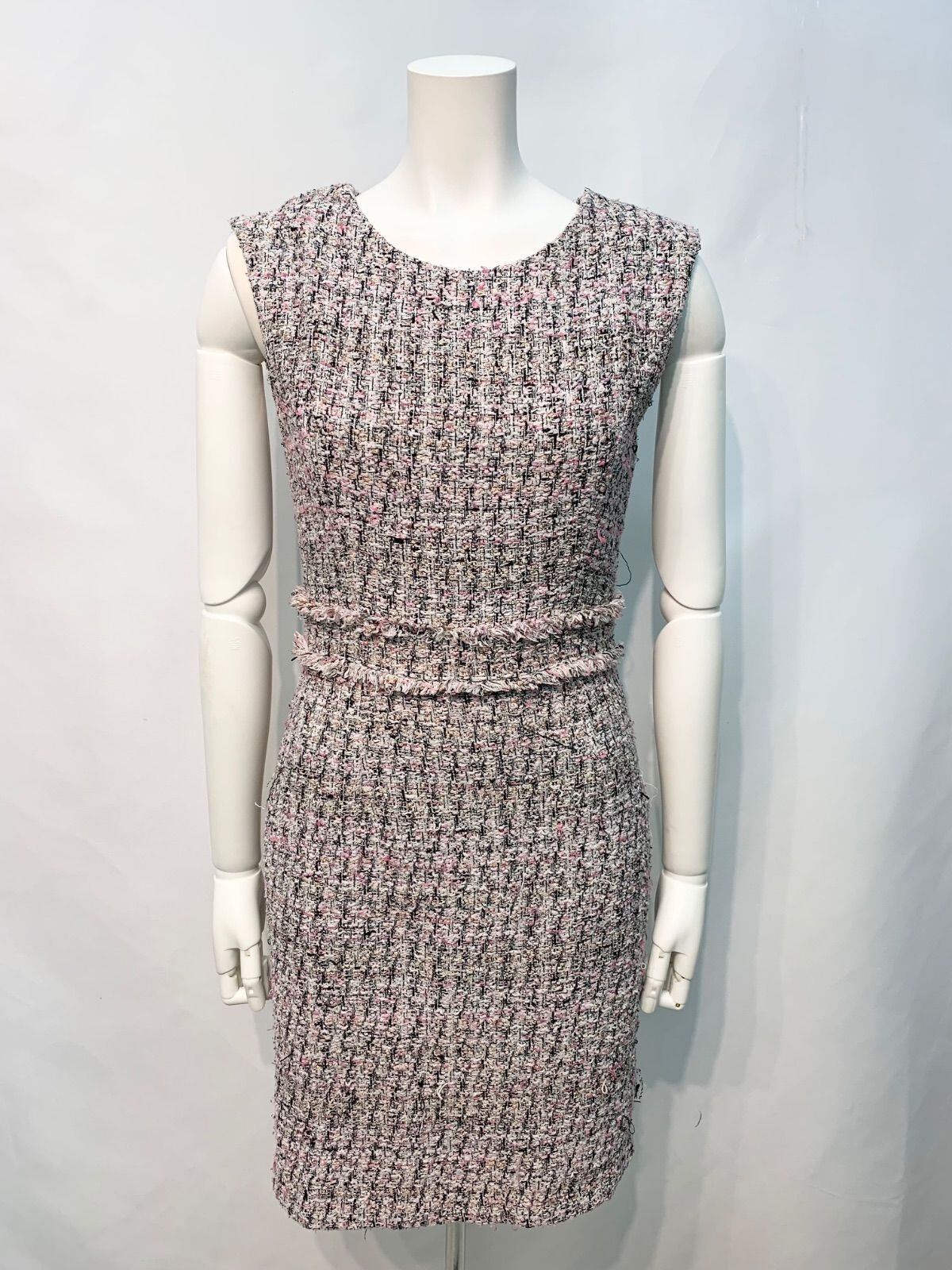 2333 EMIRIA WIZ エミリアウィズ キャバクラ ドレス ツイード ラメ フリンジ ノースリーブ タイト ミディ キャバドレス M