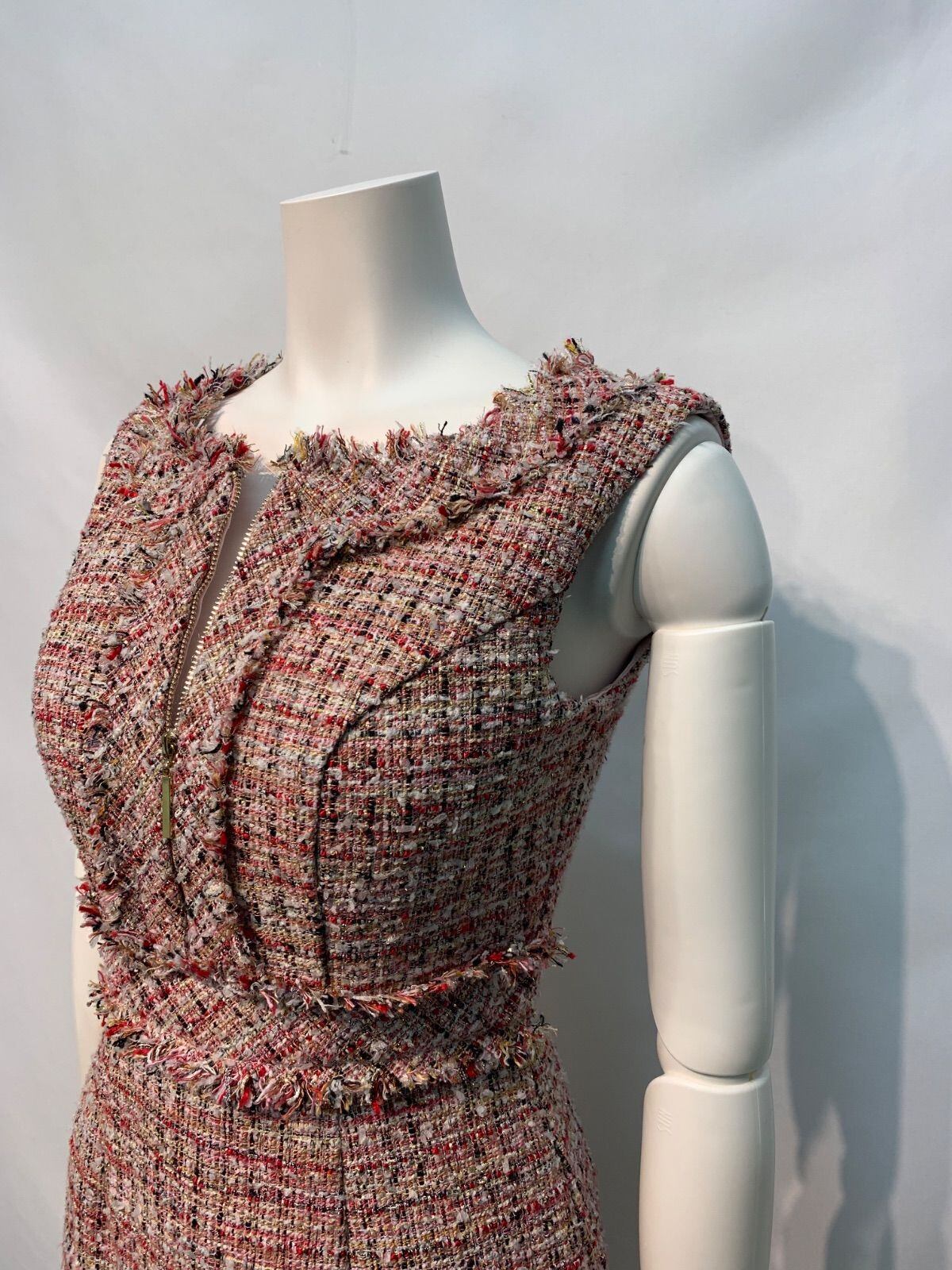 2317 DEA by ROBE de FLEURS ディアバイローブドフルール キャバクラ ドレス ツイードラメ ノースリーブ フロントジップ ミディ タイト キラキラ キャバドレス S