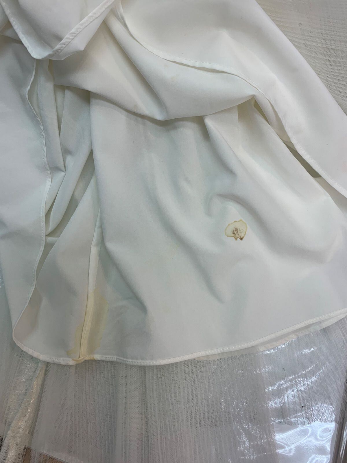 裾内側汚れ、脇下シミ、ストラップねじれ