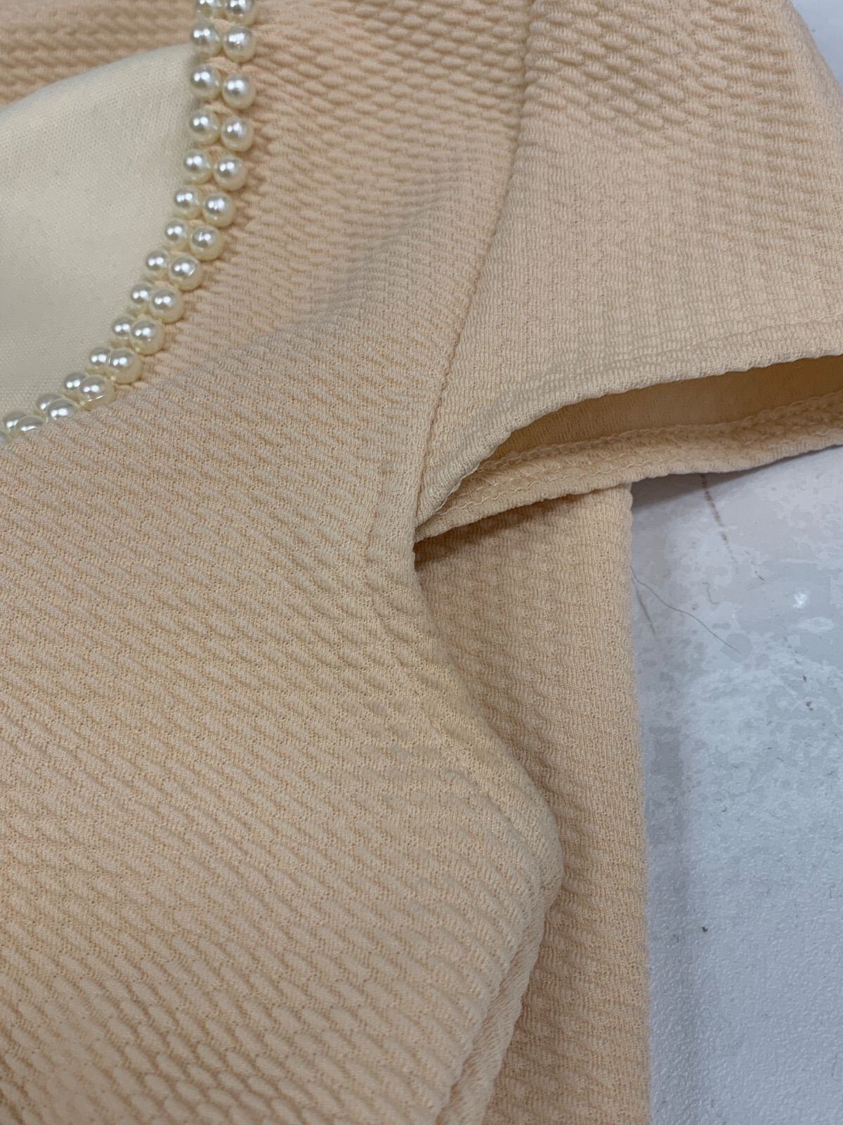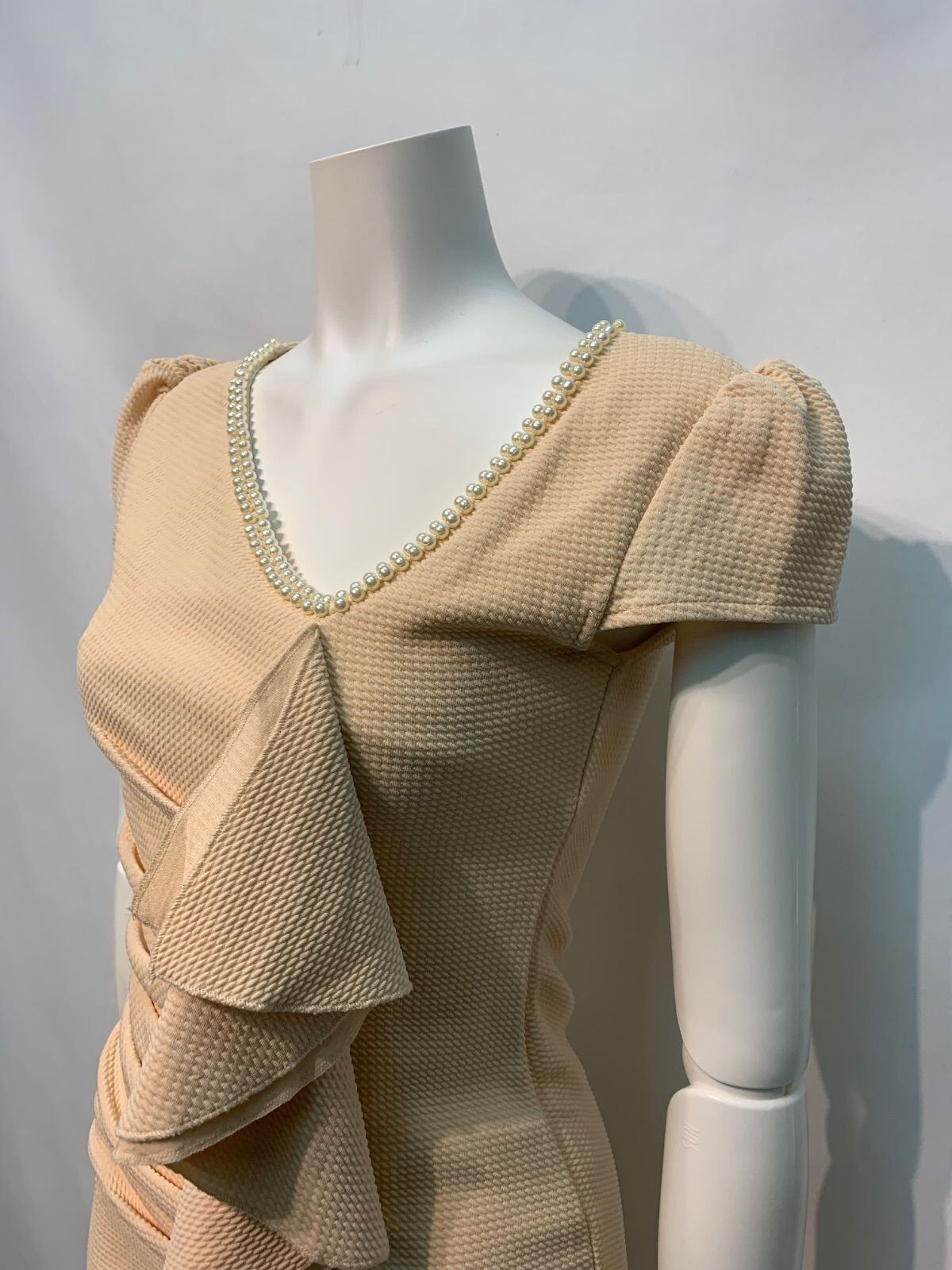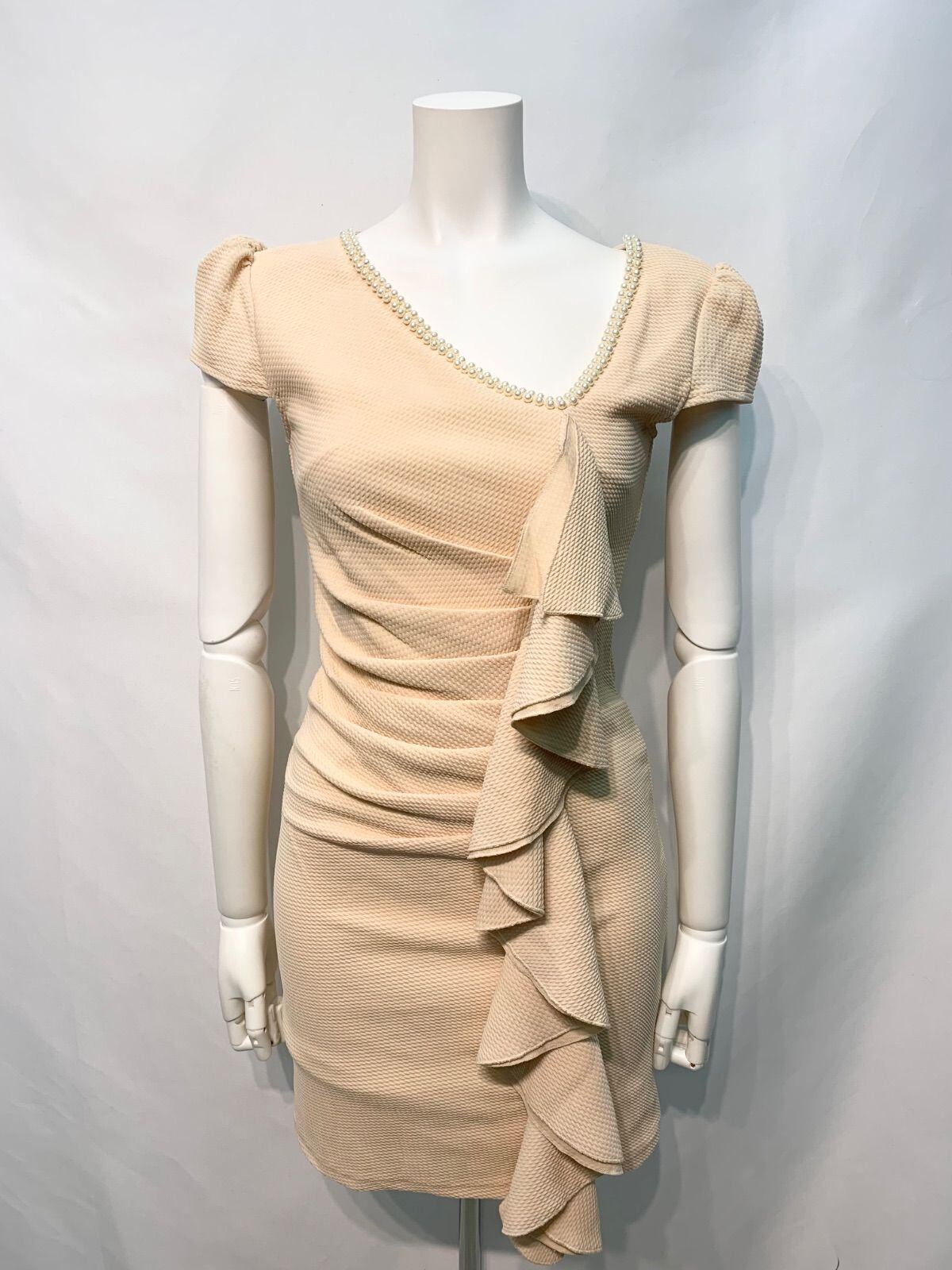 2308 DAZZY デイジー キャバクラ ドレス ワッフル フリル パールネック タイト ミニ 伸縮性 キャバドレス M