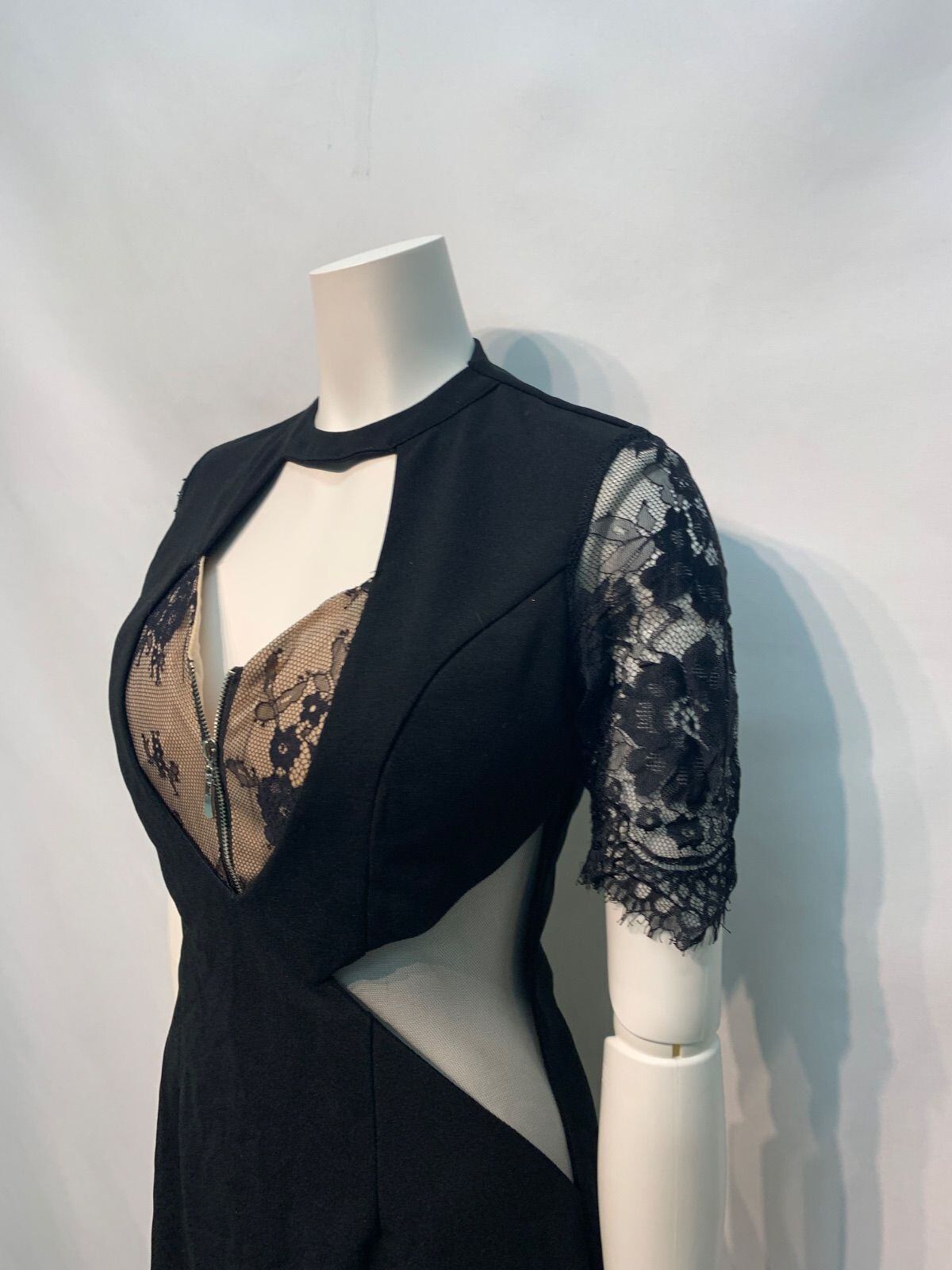 2302 DAZZY デイジー キャバクラ ドレス シースルー レース タイト ミニ 伸縮性 フロントジップ キャバドレス S