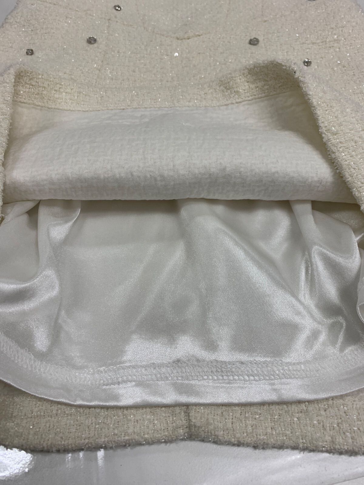 2557 ROBE de FLEURS anier ROBE ローブドフルール アニエルローブ キャバクラ ドレス ツイード ラメ ストーンストラップ タイト ミニ リボン キャバドレス S
