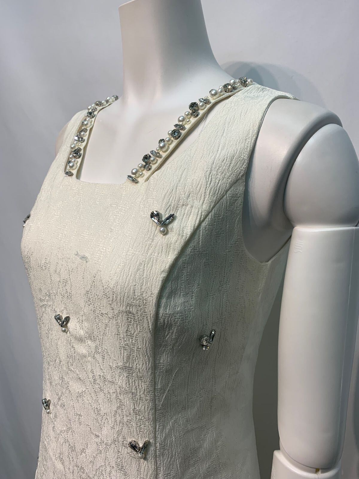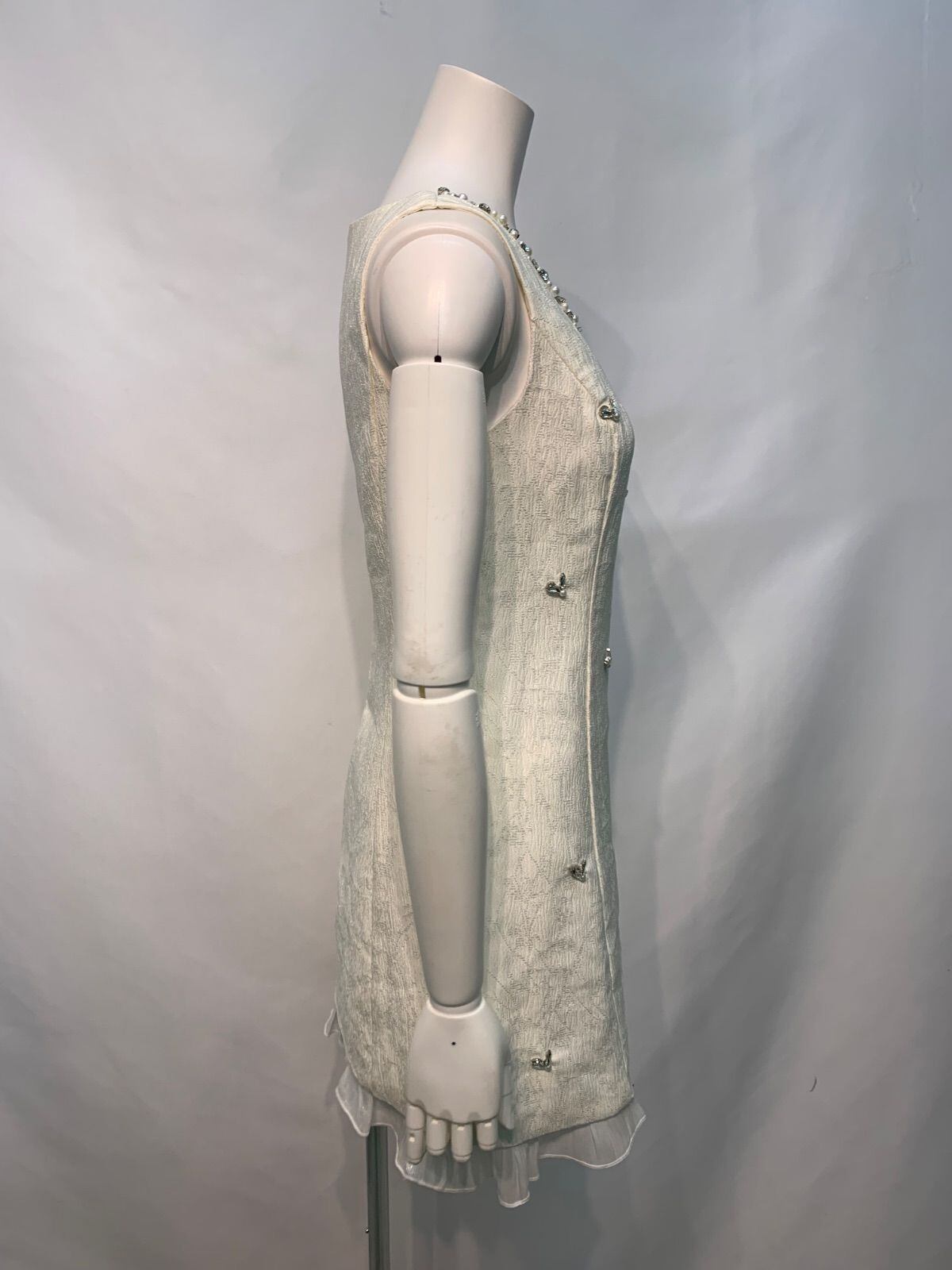2555 キャバクラ ドレス ジャガード レース ノースリーブ タイト ミニ ストーン パール キャバドレス S