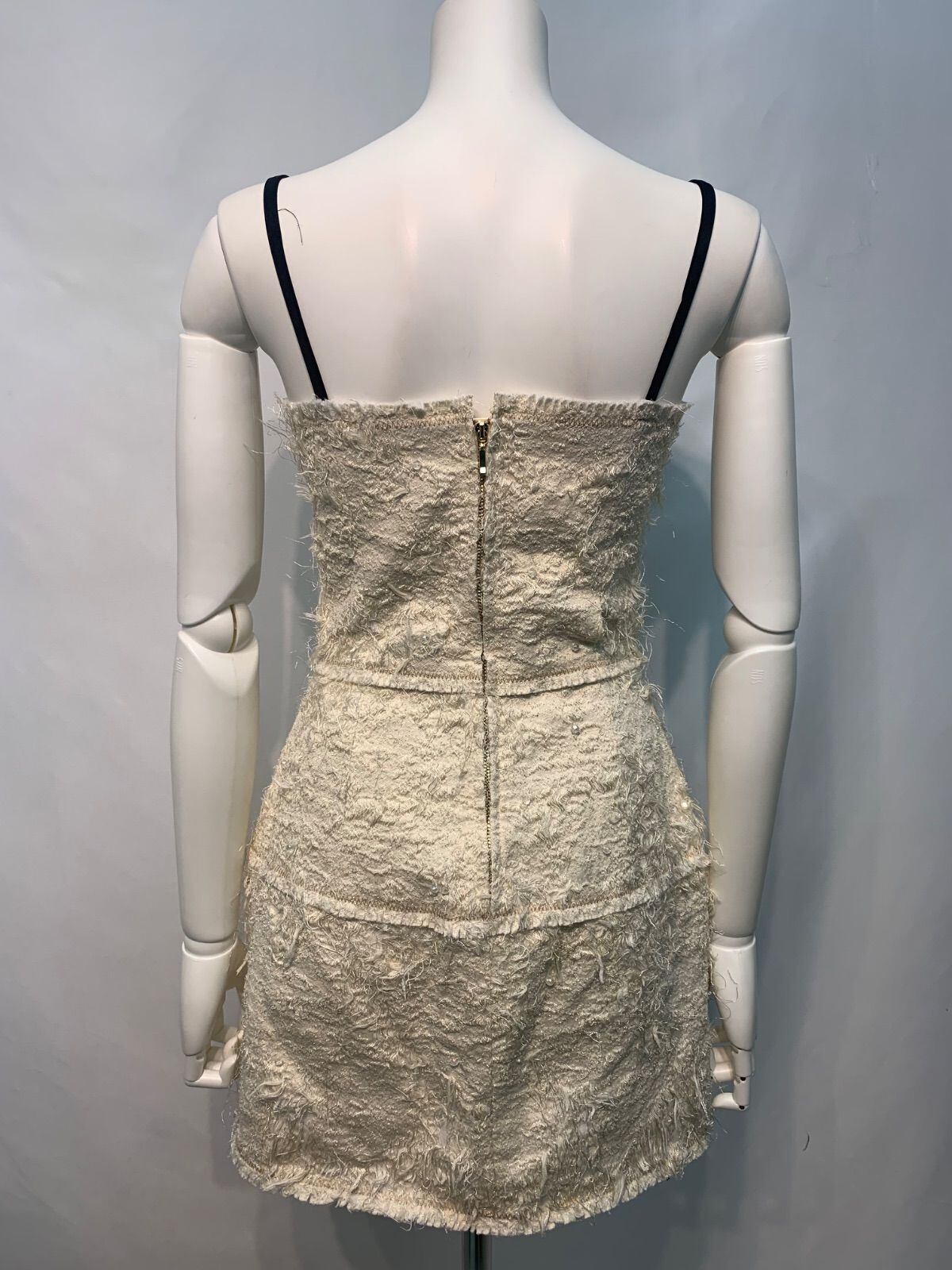 2554 MODELIVREE キャバクラ ドレス ツイード フリンジ リボン タイト ミニ ビーズ キャバドレス S