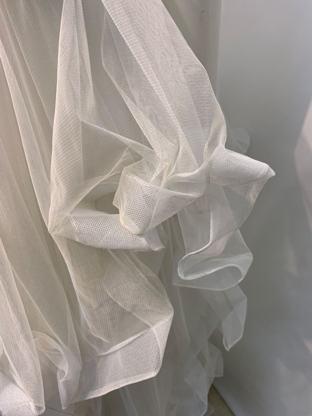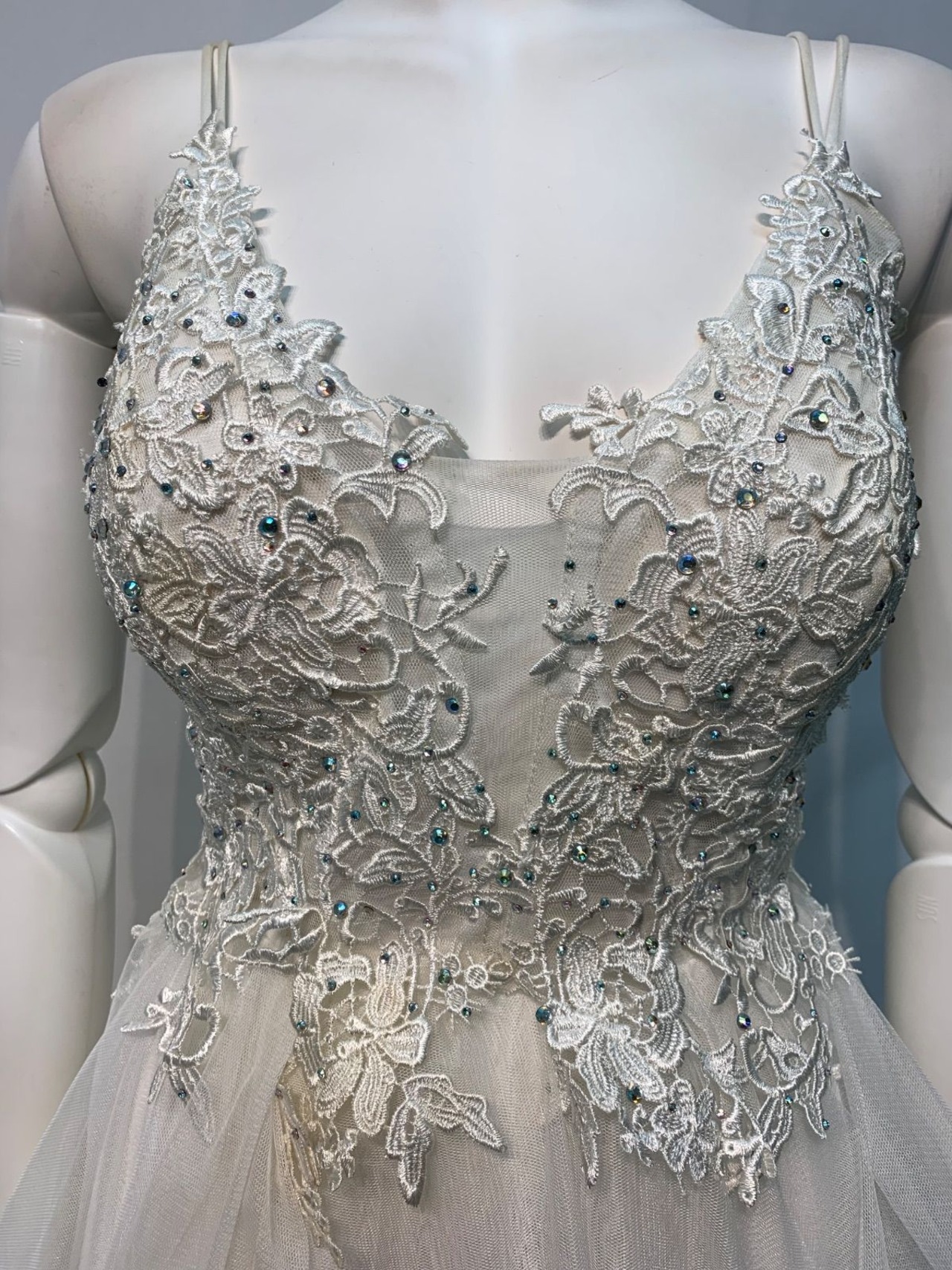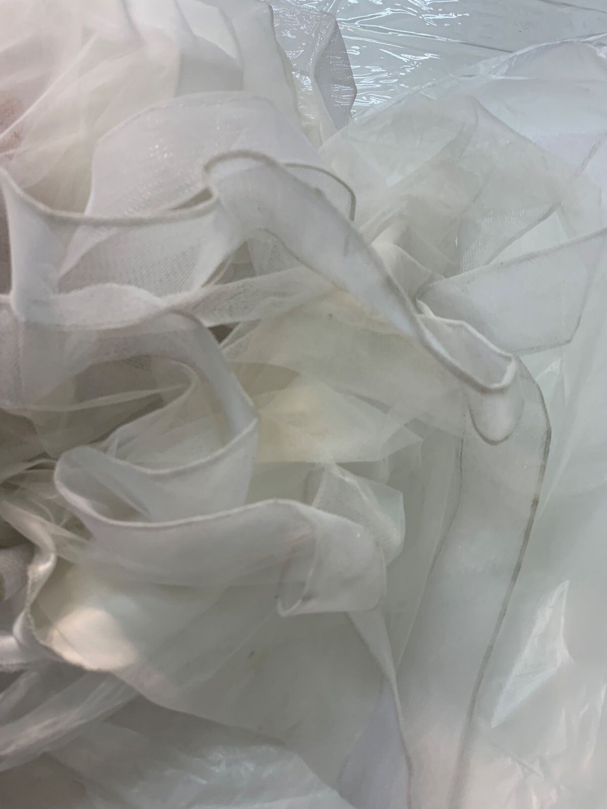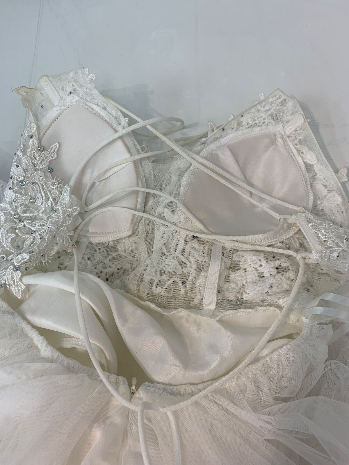 レース数カ所シミ、、紐シミ、裾汚れ、チュール捻れ