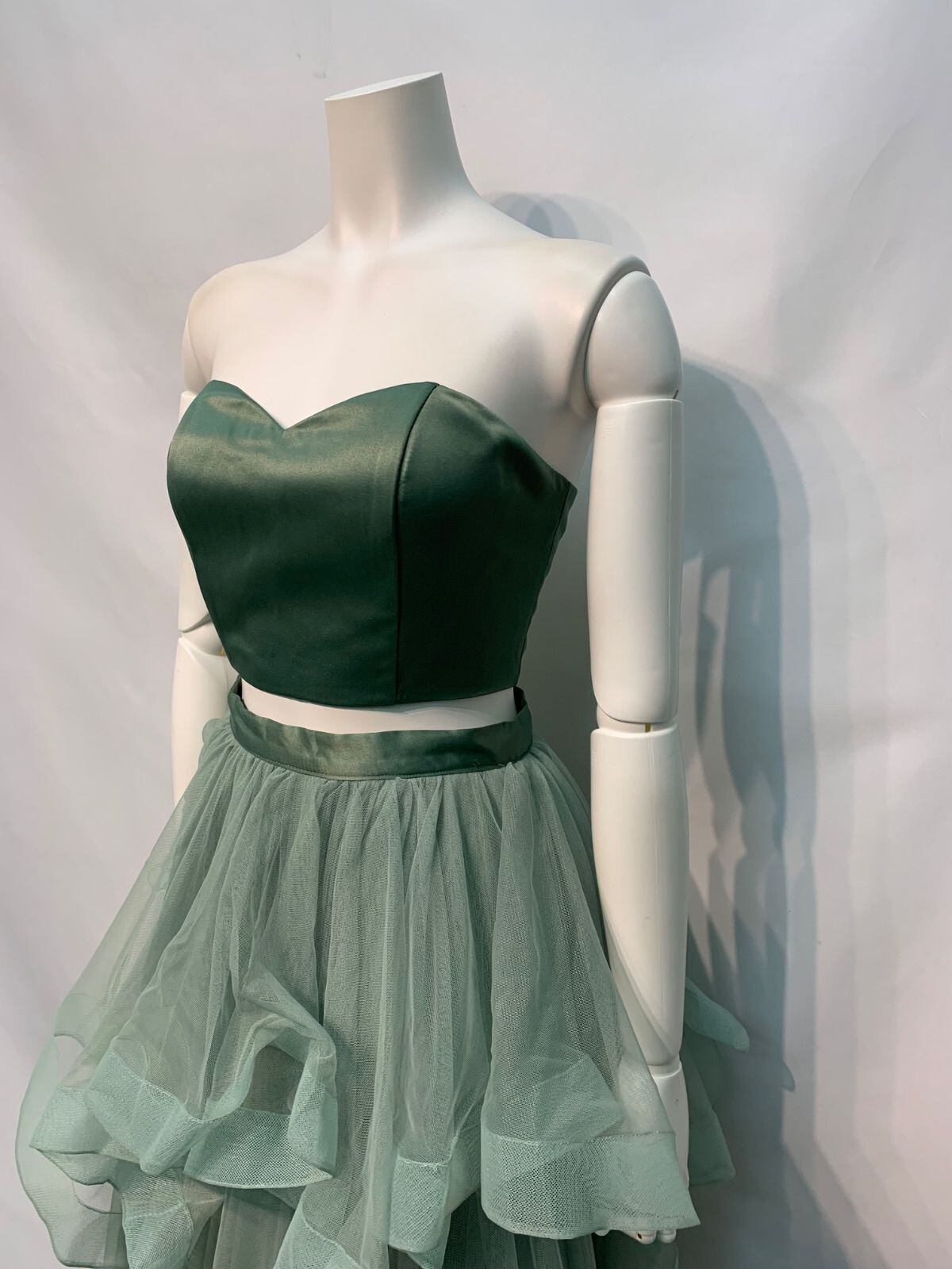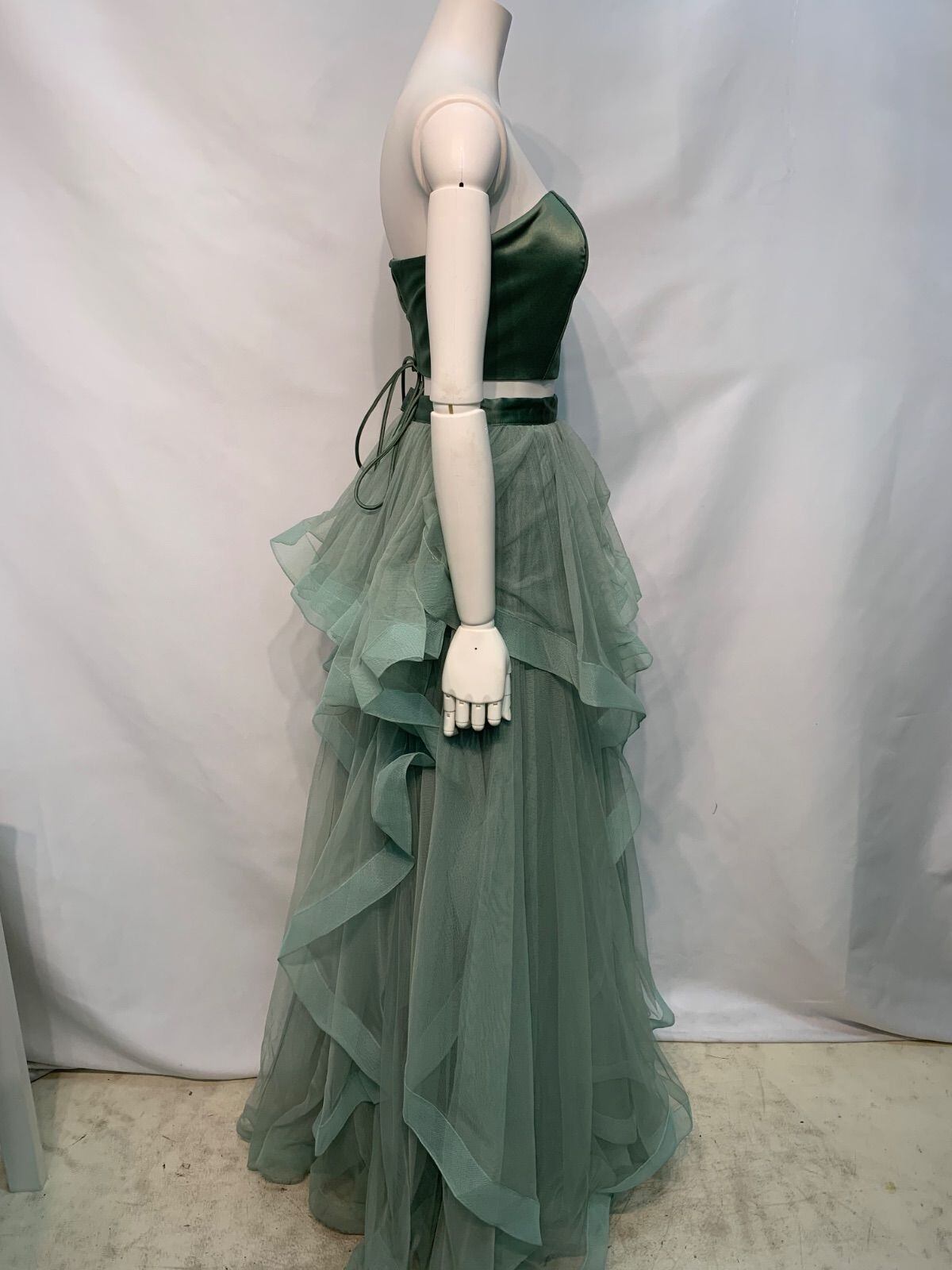 2442 キャバクラ ロングドレス セットアップ フリル サテン ベアトップ シアー バースデー 誕生日 イベント 華やか キャバドレス 38