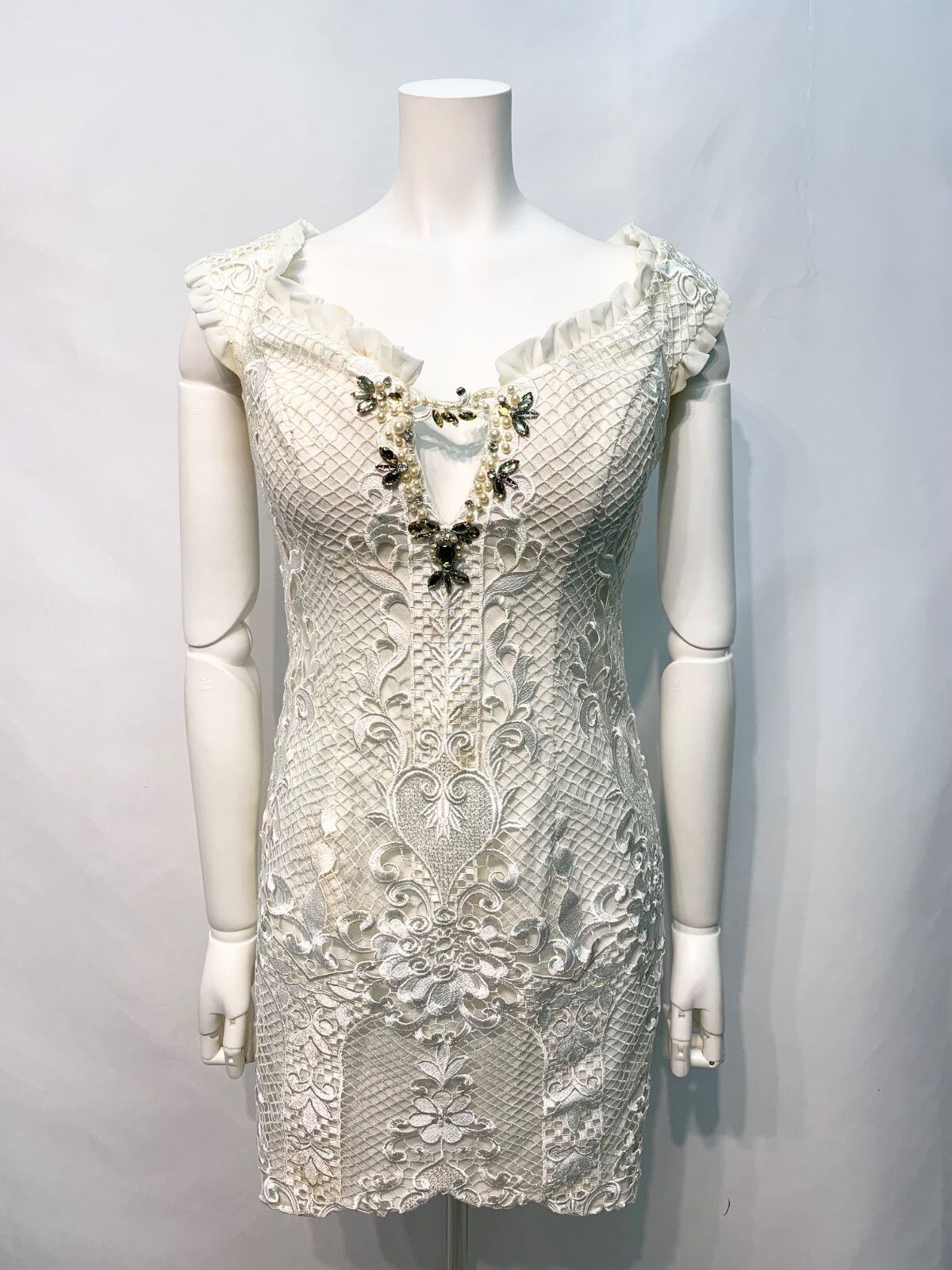 2533 couture an クチュール アン キャバクラ ドレス 総レース ビジュー ストーン パール タイト ミニ フリル キャバドレス M