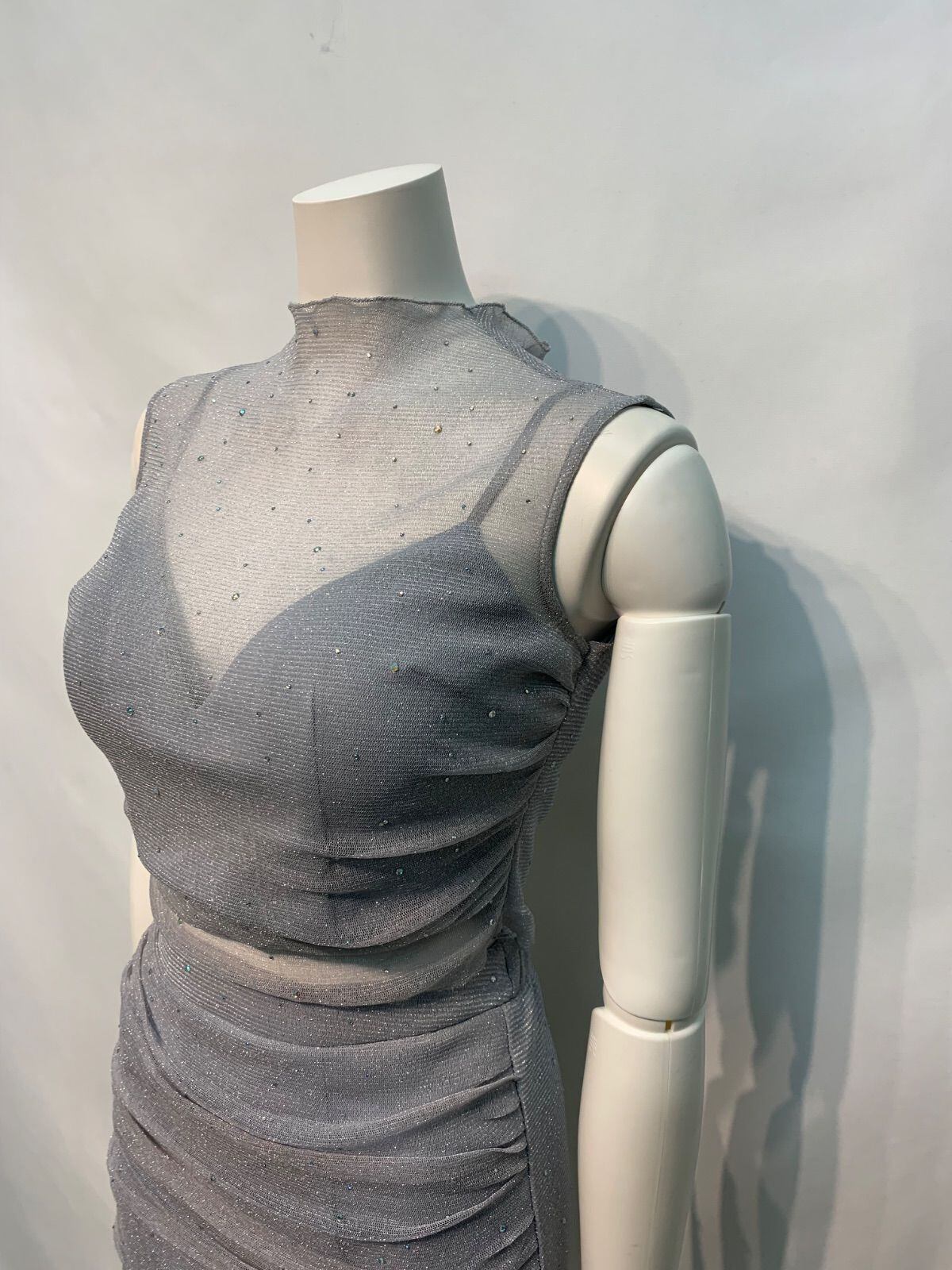 2525 JEWELS ジュエルズ キャバクラ ドレス シアーラメビジューセットアップ キラキラ ストーン タイト シースルー ミニ 伸縮性 ハイネック ノースリーブ キャバドレス M
