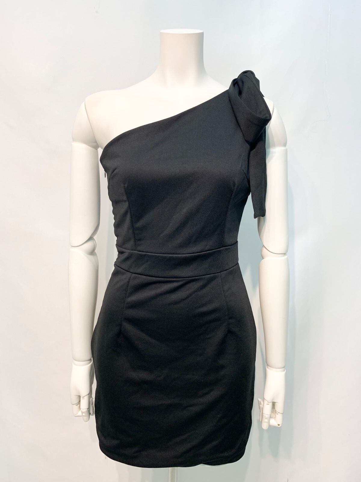2504 キャバクラ ドレス ワンショルダー タイト ミニ 伸縮性 無地 シンプル キャバドレス