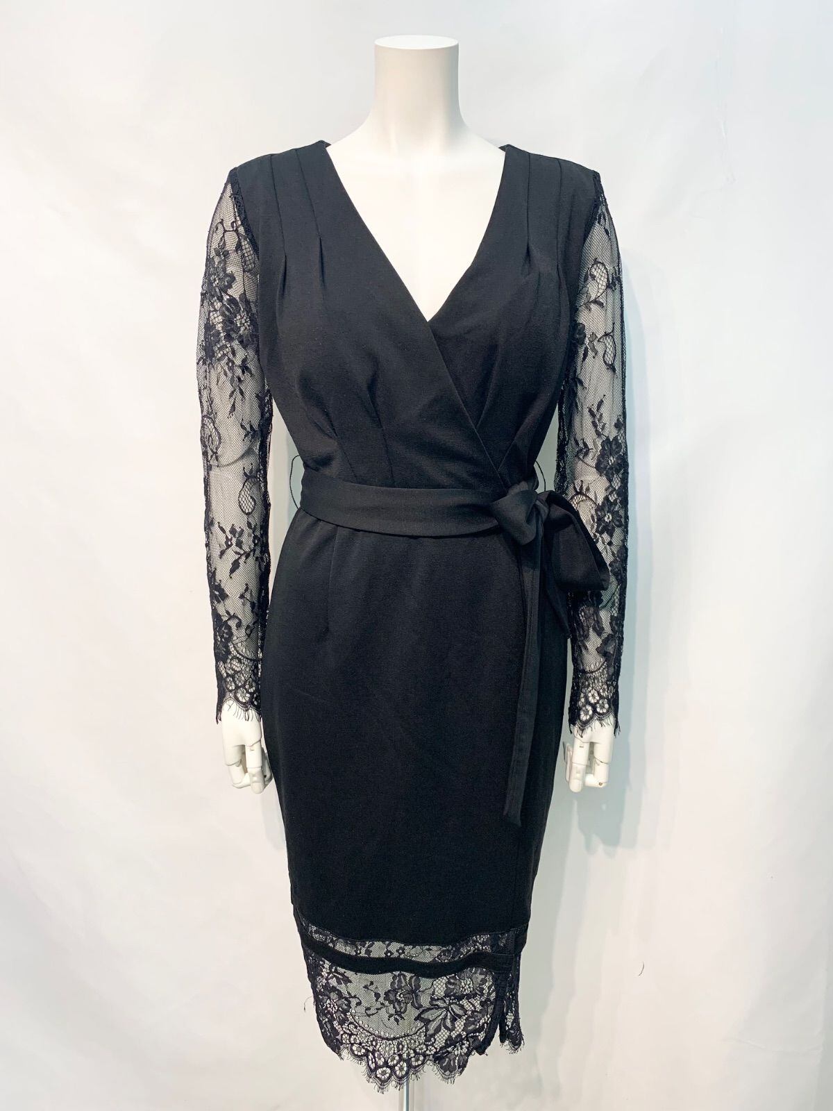 2495 DAZZY デイジー キャバクラ ドレス レース ミディ タイト 伸縮性 リボン キャバドレス XL