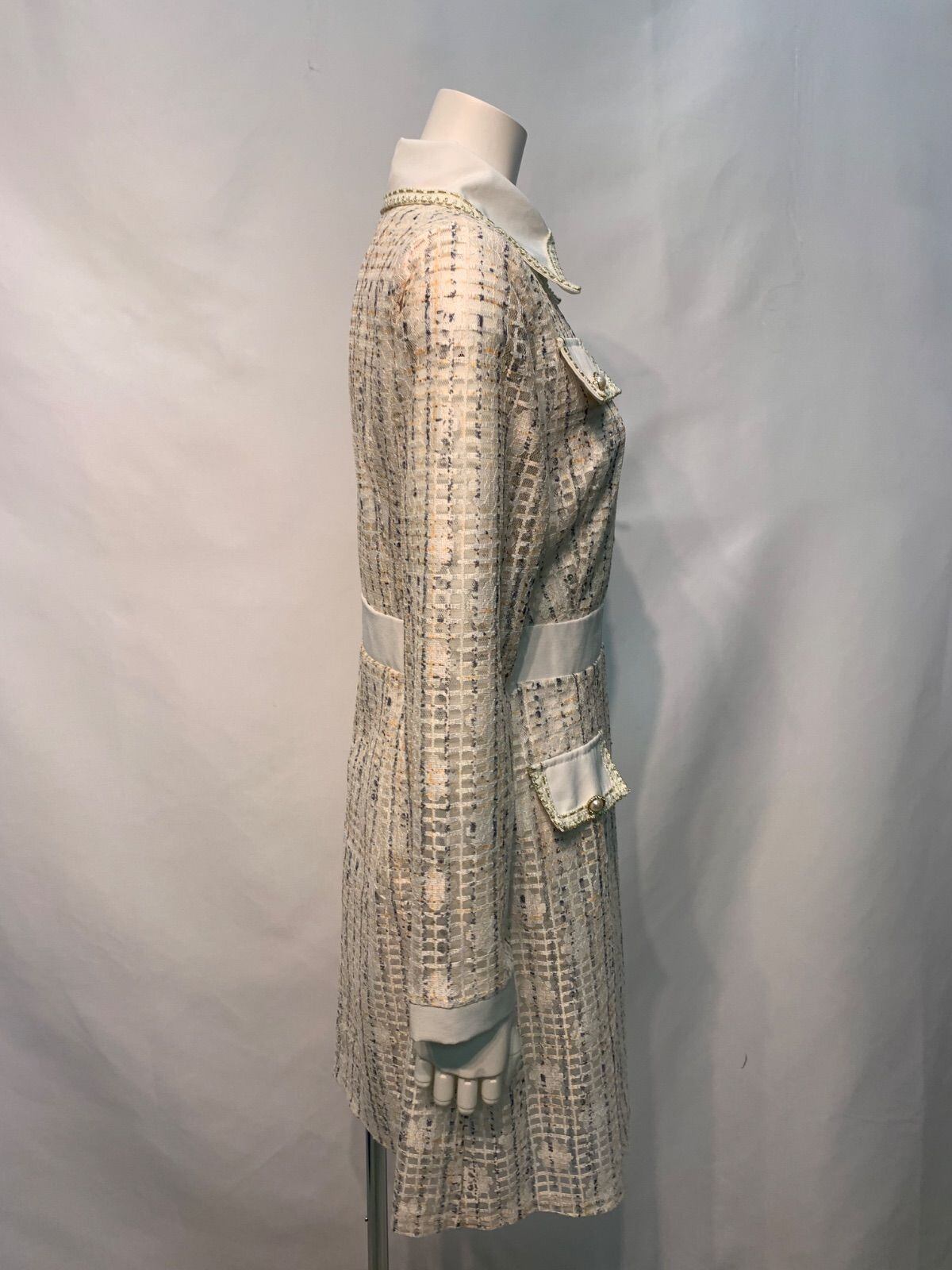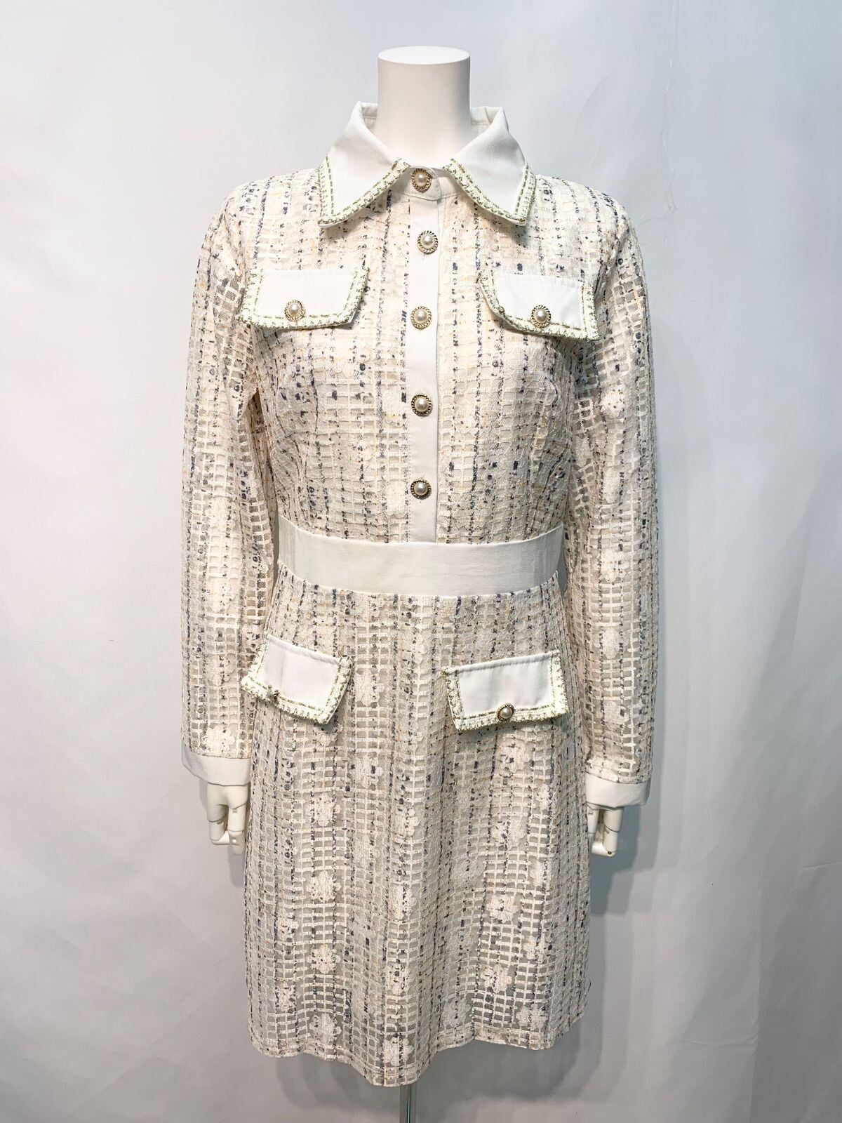 2493 キャバクラ ドレス 総レース チェック パールボタン 襟付き ワンピース 長袖 キャバドレス L